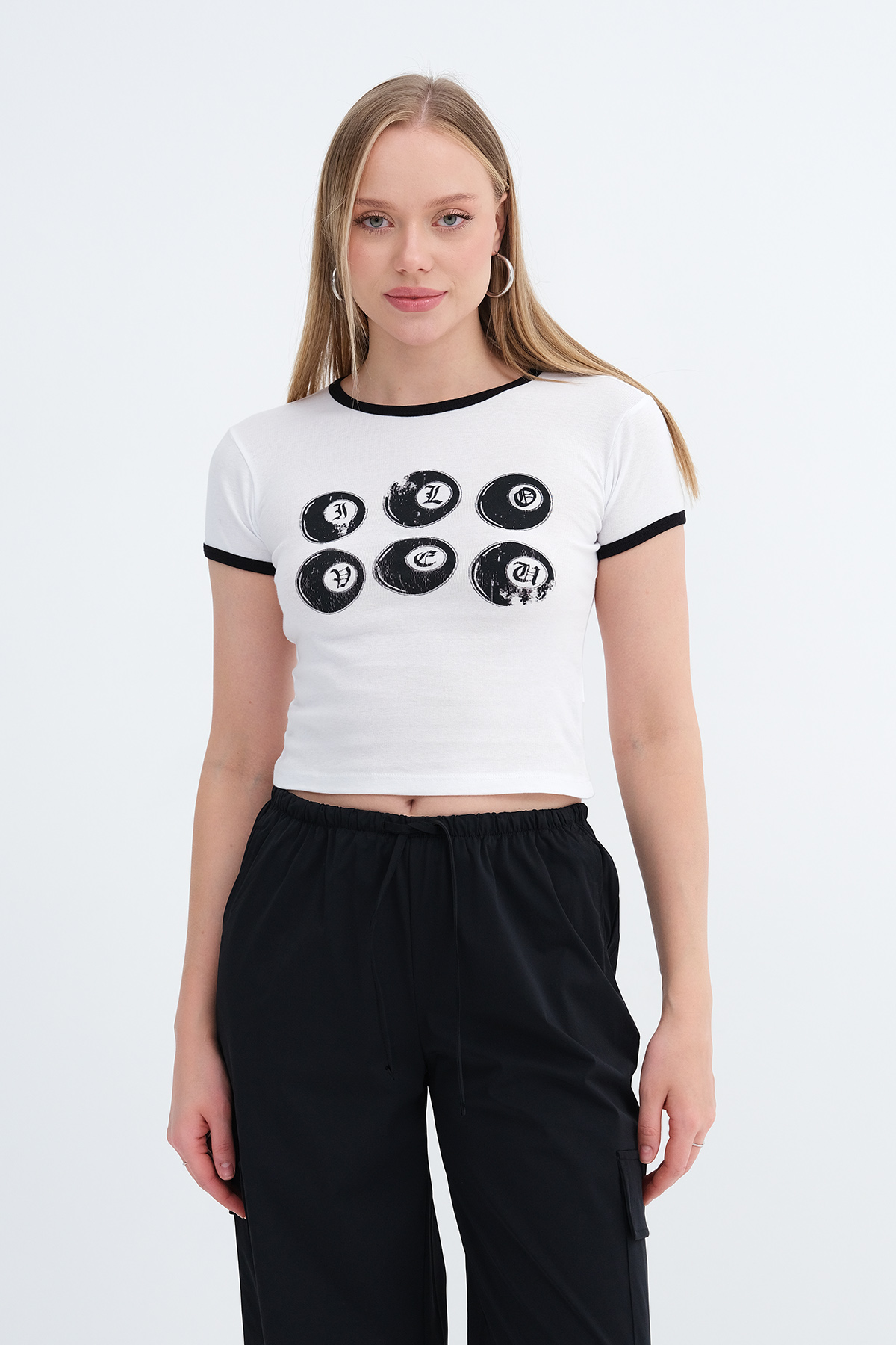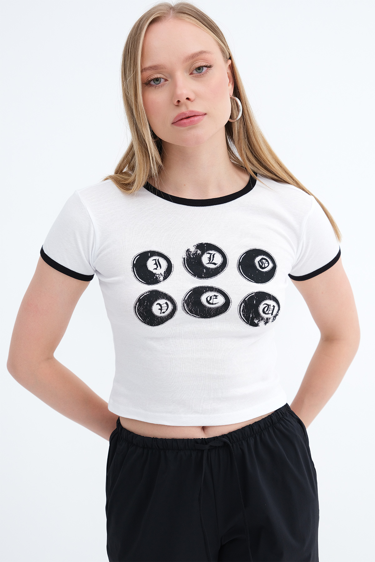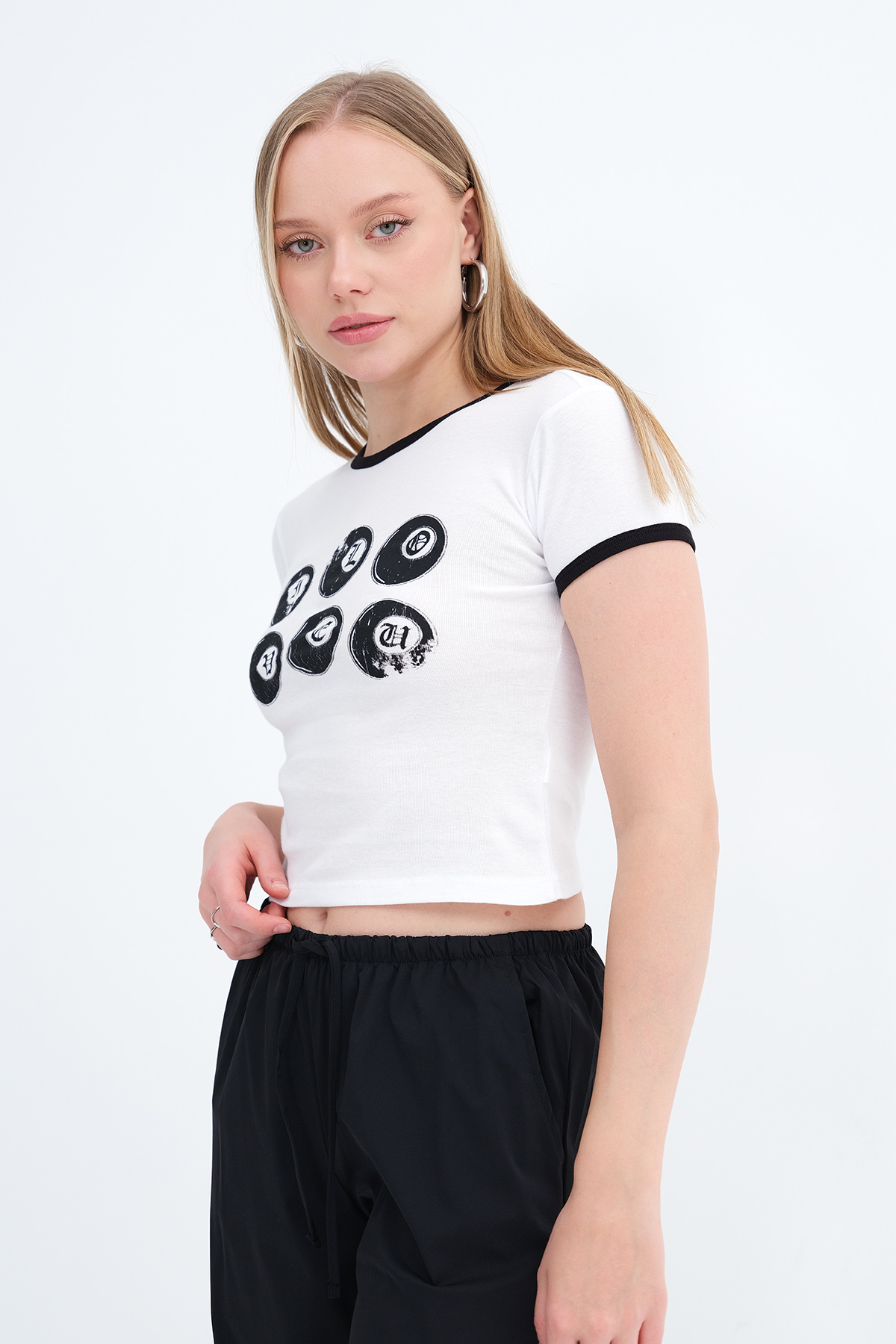 * Baskılı crop t-shirt,