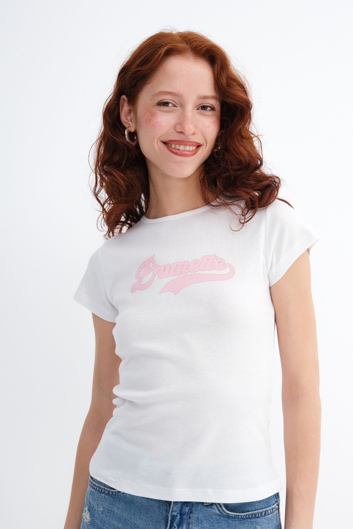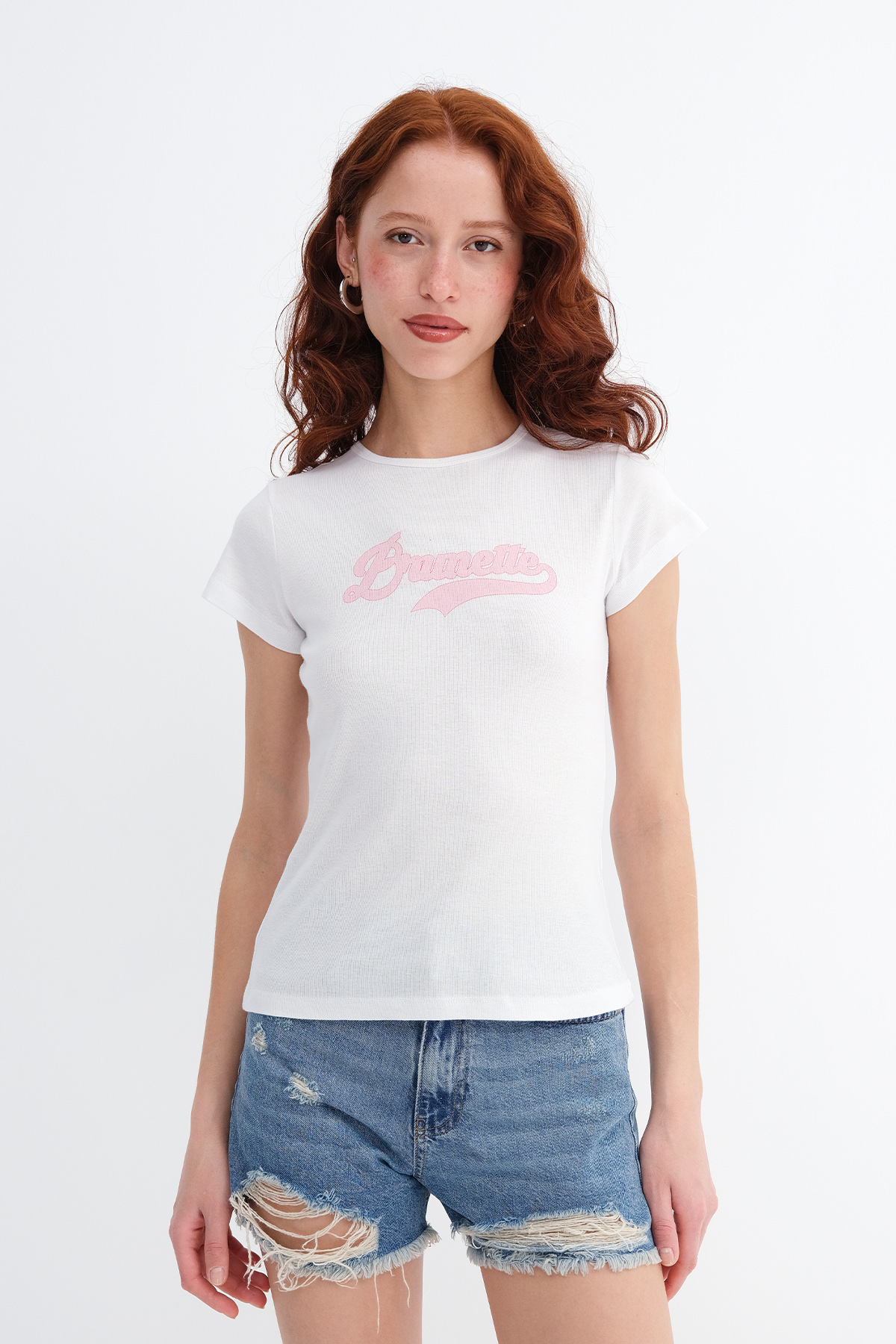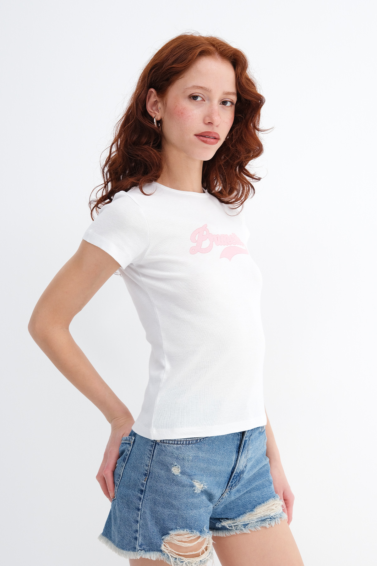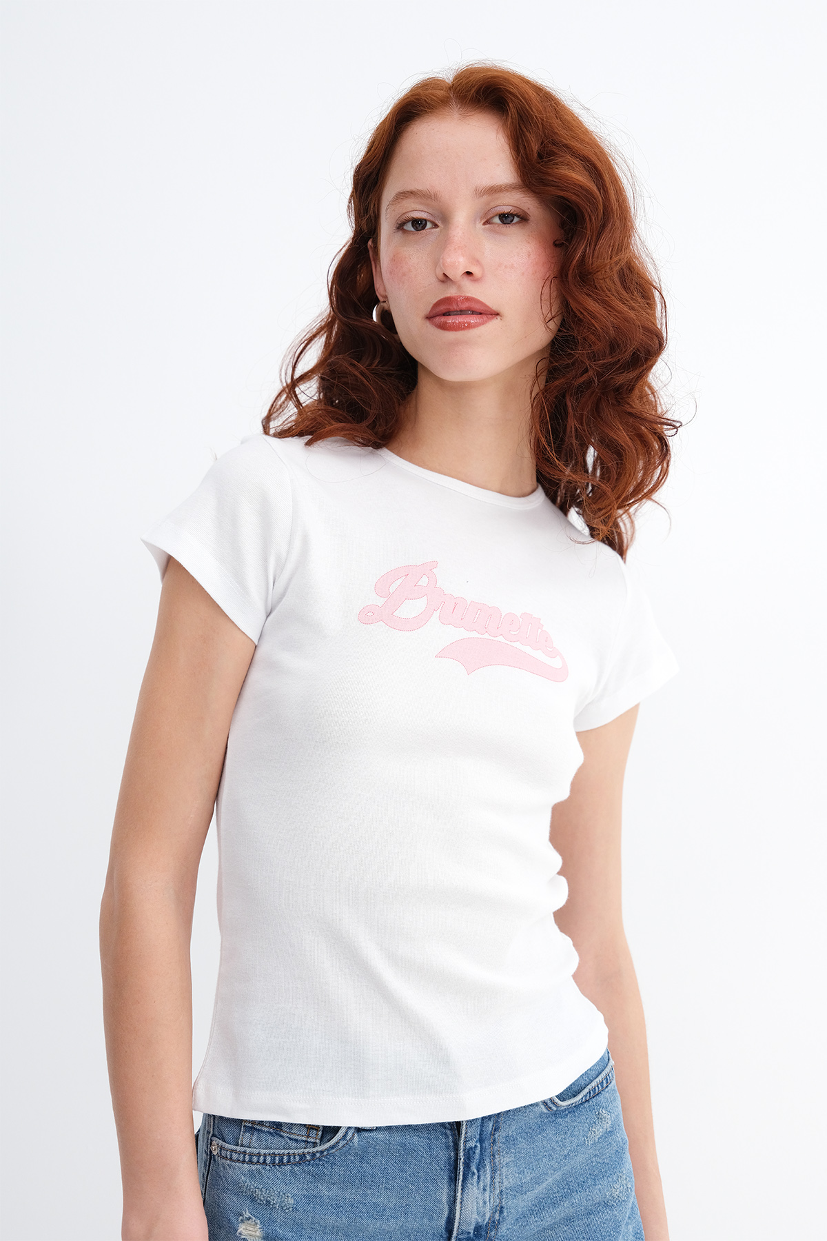 * Baskılı, vücudu saran t-shirt,