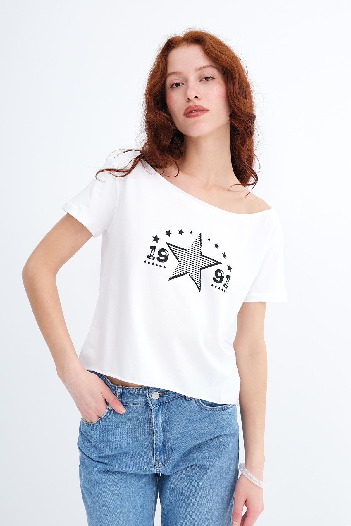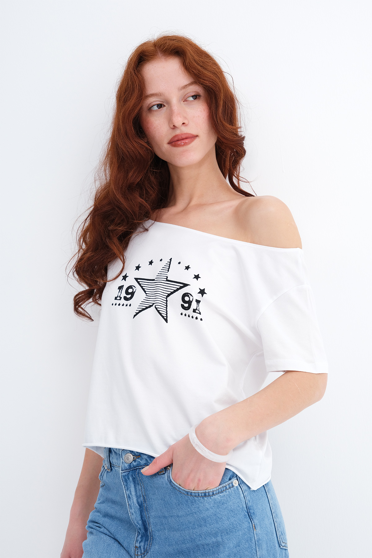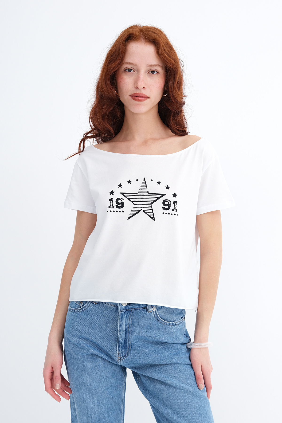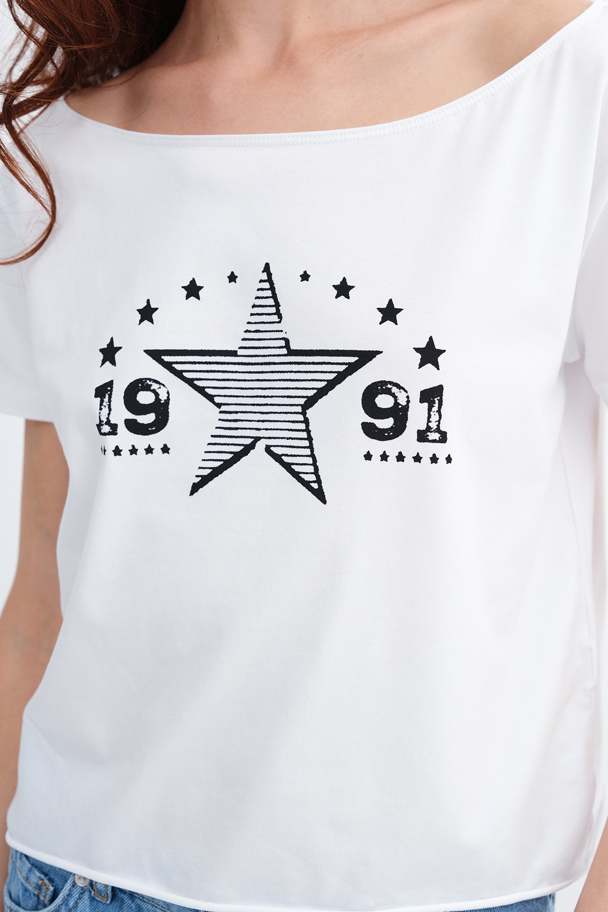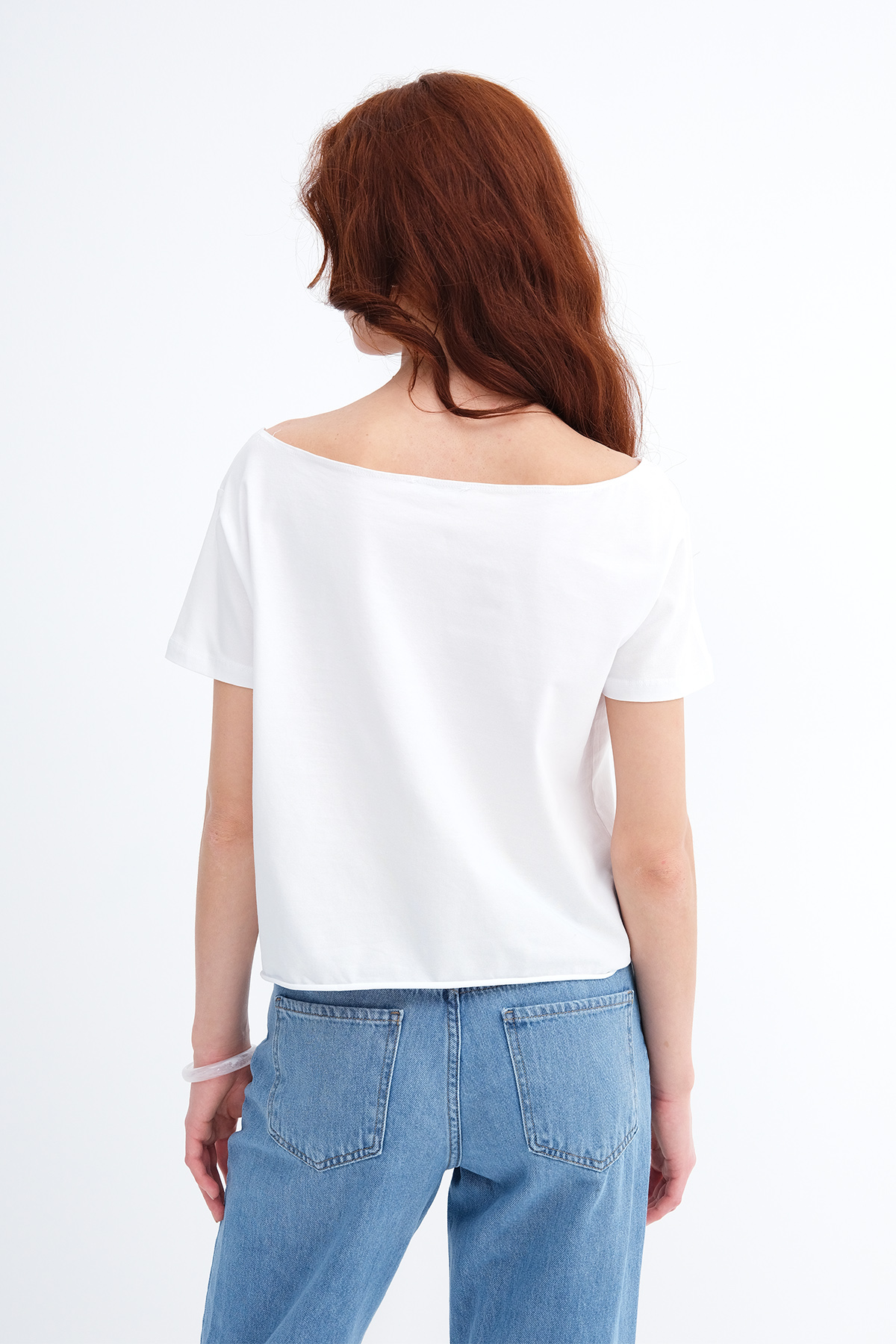* Kayık yaka, kısa kollu, düşük omuz,