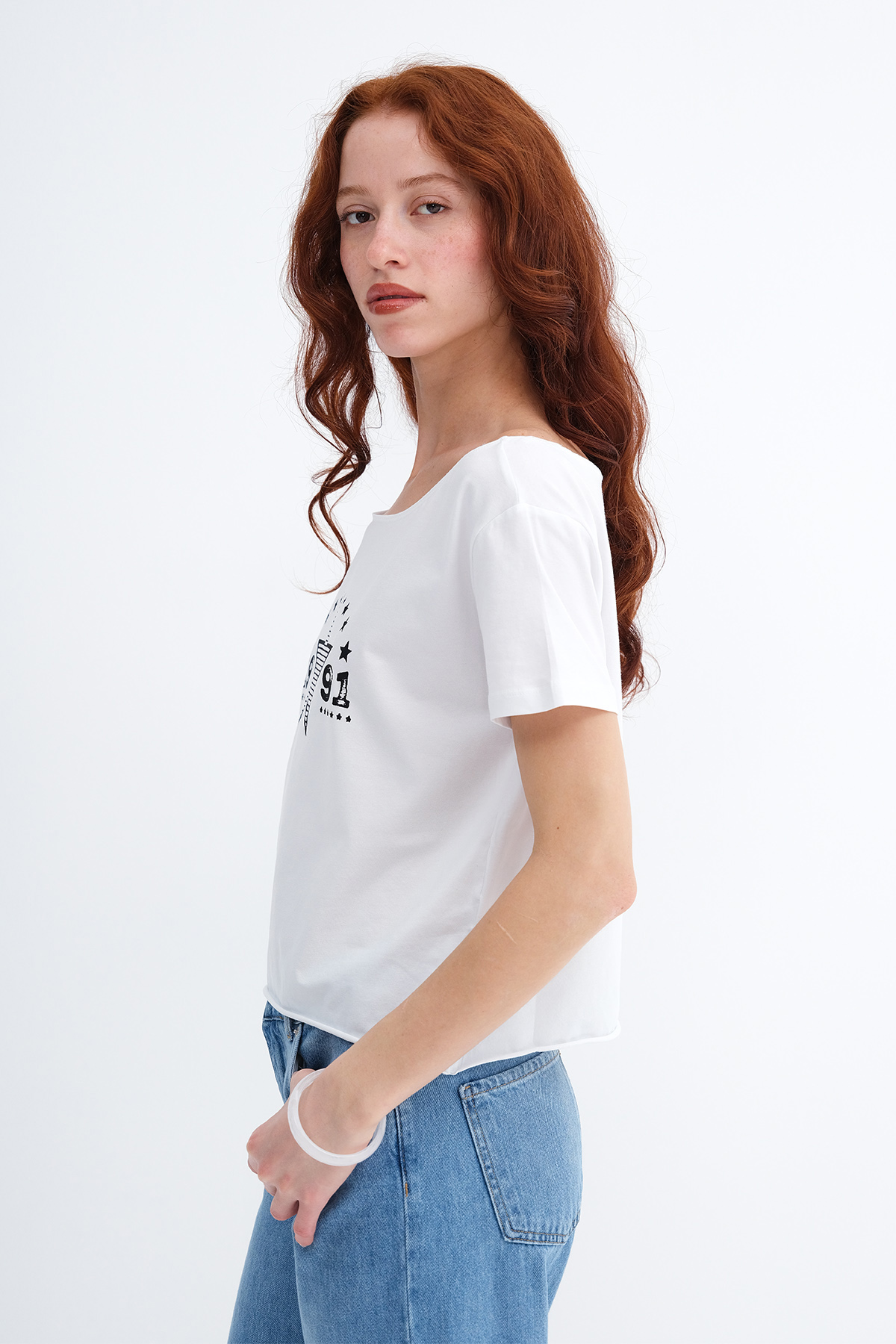 * Baskılı, rahat kalıp t-shirt,
