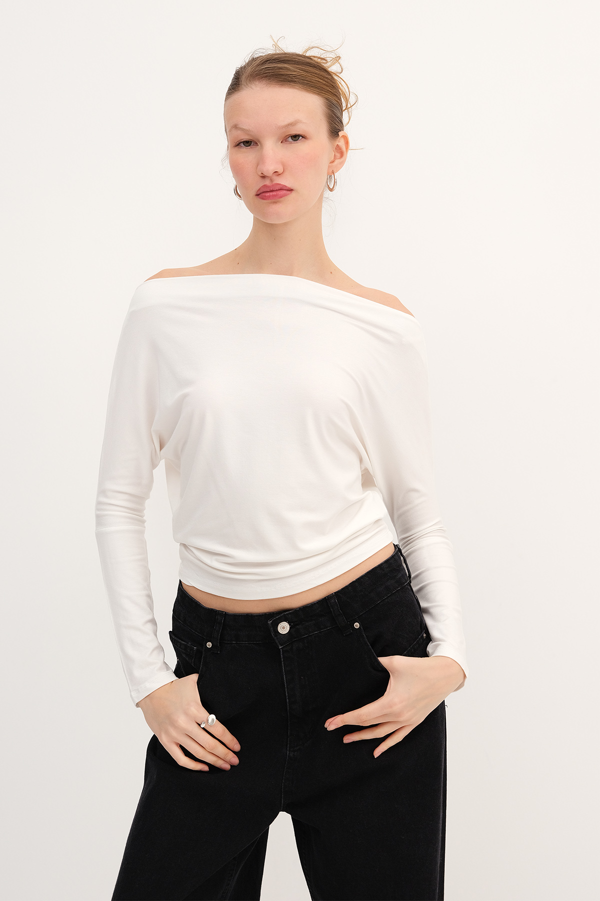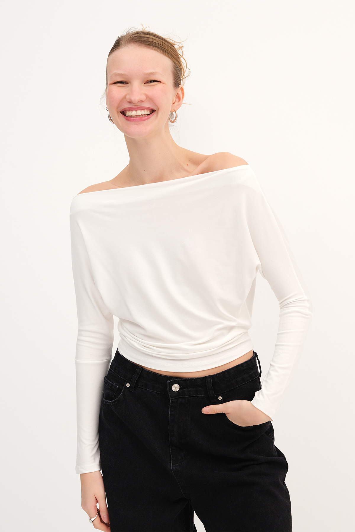 * Kayık yaka, düşük omuz,* Düz renk, rahat kalıp sweatshirt,* Ürün içeriği: %54 Polyester %40 Viskon %6 LYC* Manken üzerindeki ürün 36/S bedendir.* Numune Beden Ölçüleri: Boy: 56 cm Göğüs: 100 cm Kol Boyu: 60 cm ( Kol boyu omuzdan ölçülmüştür)* Ürün çekimlerinde renkler, ışık farklılığından dolayı değişkenlik gösterebilir.