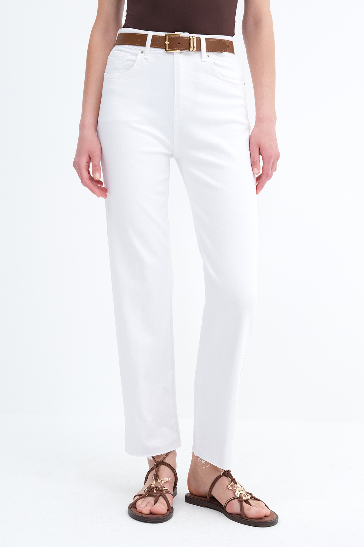 * Düz renk, paçası lazer kesim, straight jean pantolon,
