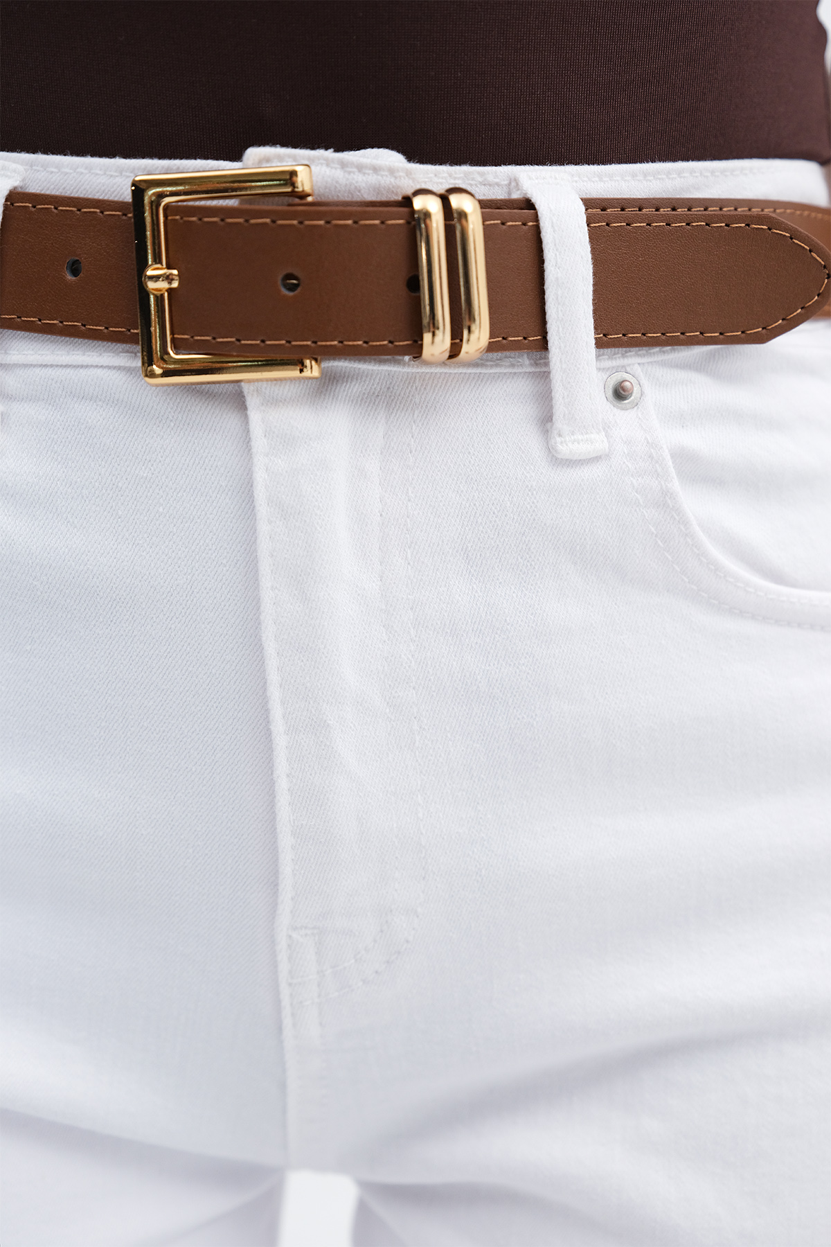 * Normal bel, kemer köprülü, düğmeli, fermuar patlı, 5 cepli,