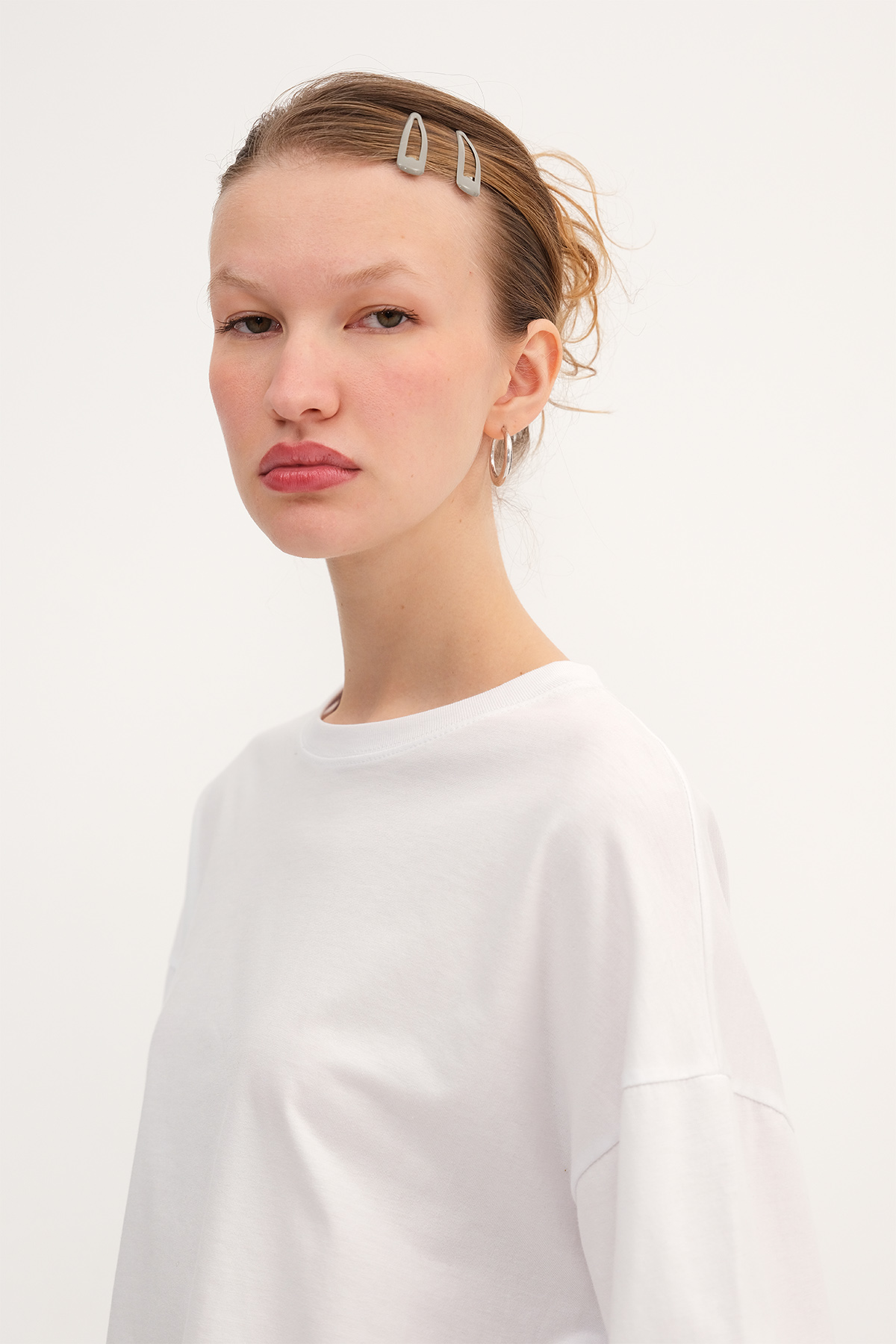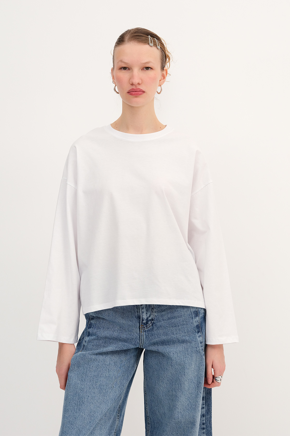 * Bisiklet yaka, uzun kollu,* Düşük omuz, rahat kalıp,* Basic t-shirt,* Ürün içeriği: %100 Pamuk* Manken üzerindeki ürün 36/S bedendir.* Numune beden ölçüleri: Boy: 56 cm Göğüs: 110 cm Kol boyu: 45 cm (1-3 cm değişiklik gösterebilir)* Ürün çekimlerinde renkler, ışık farklılığından dolayı değişkenlik gösterebilir.