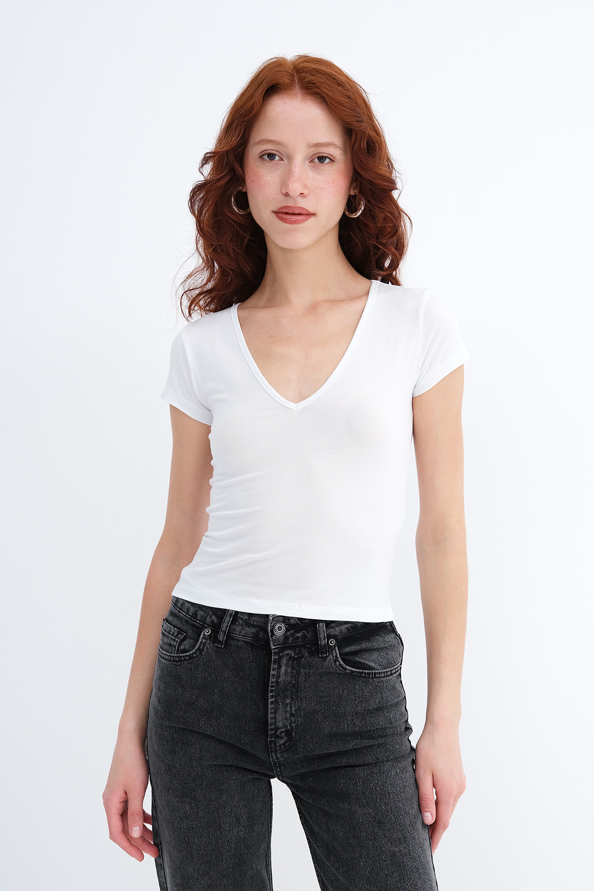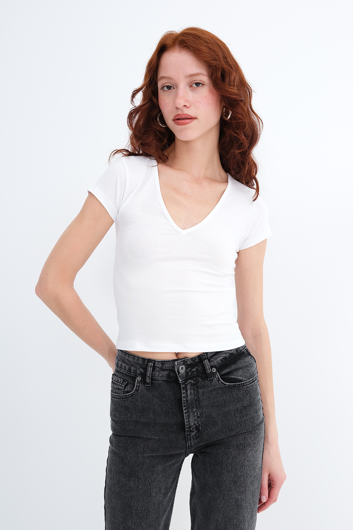 * V yaka, kısa kollu,