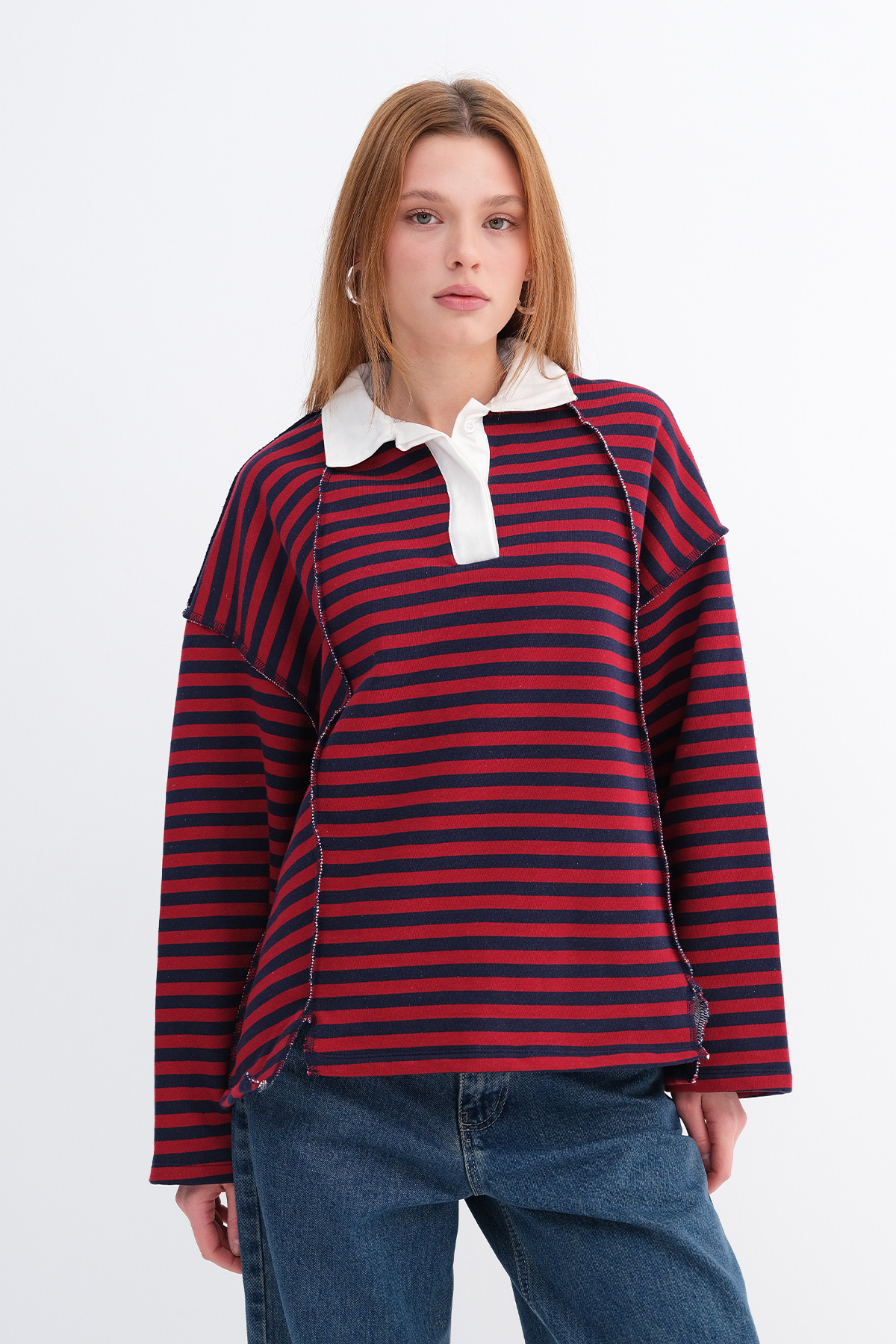 * Polo yaka, çizgili, uzun kollu,