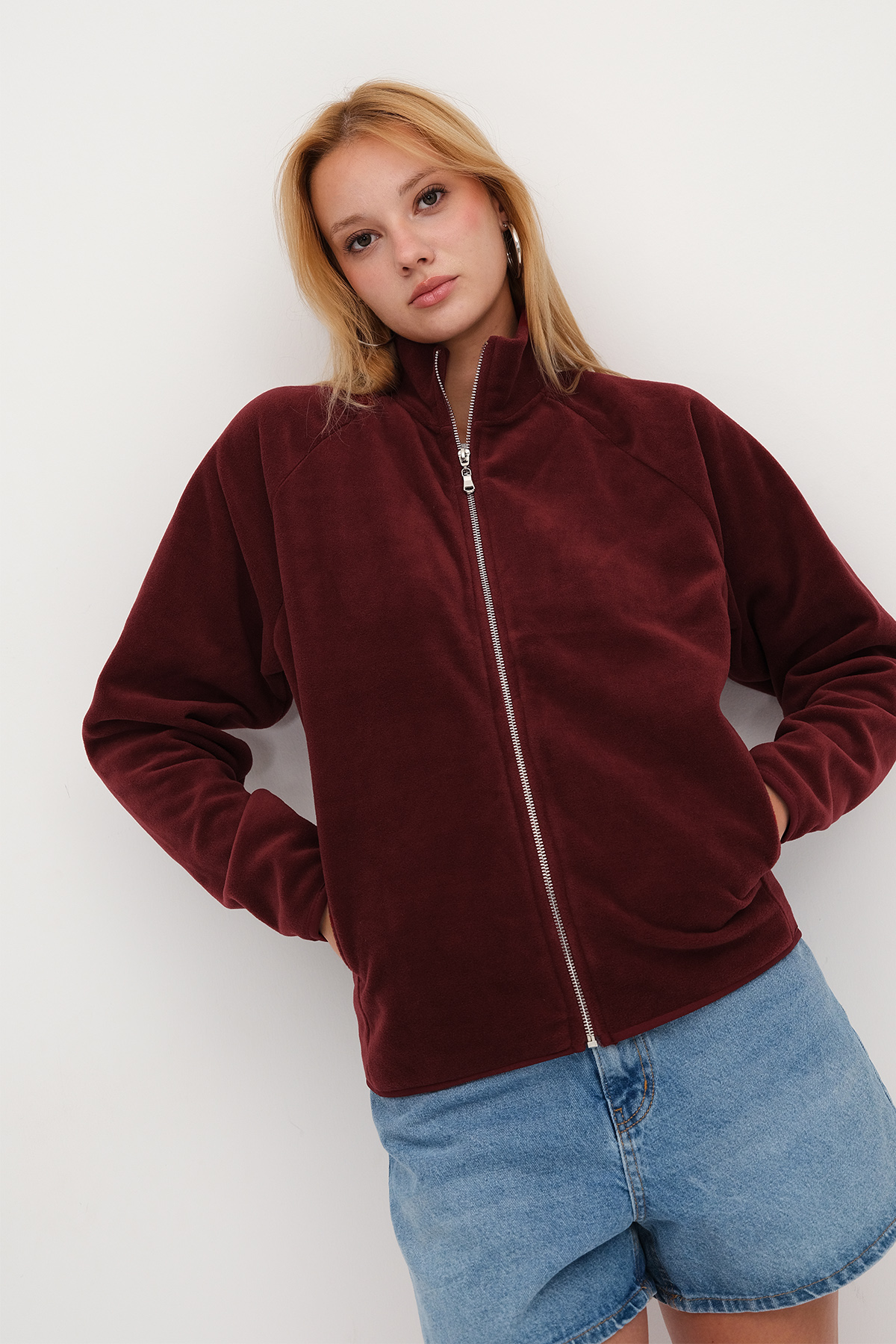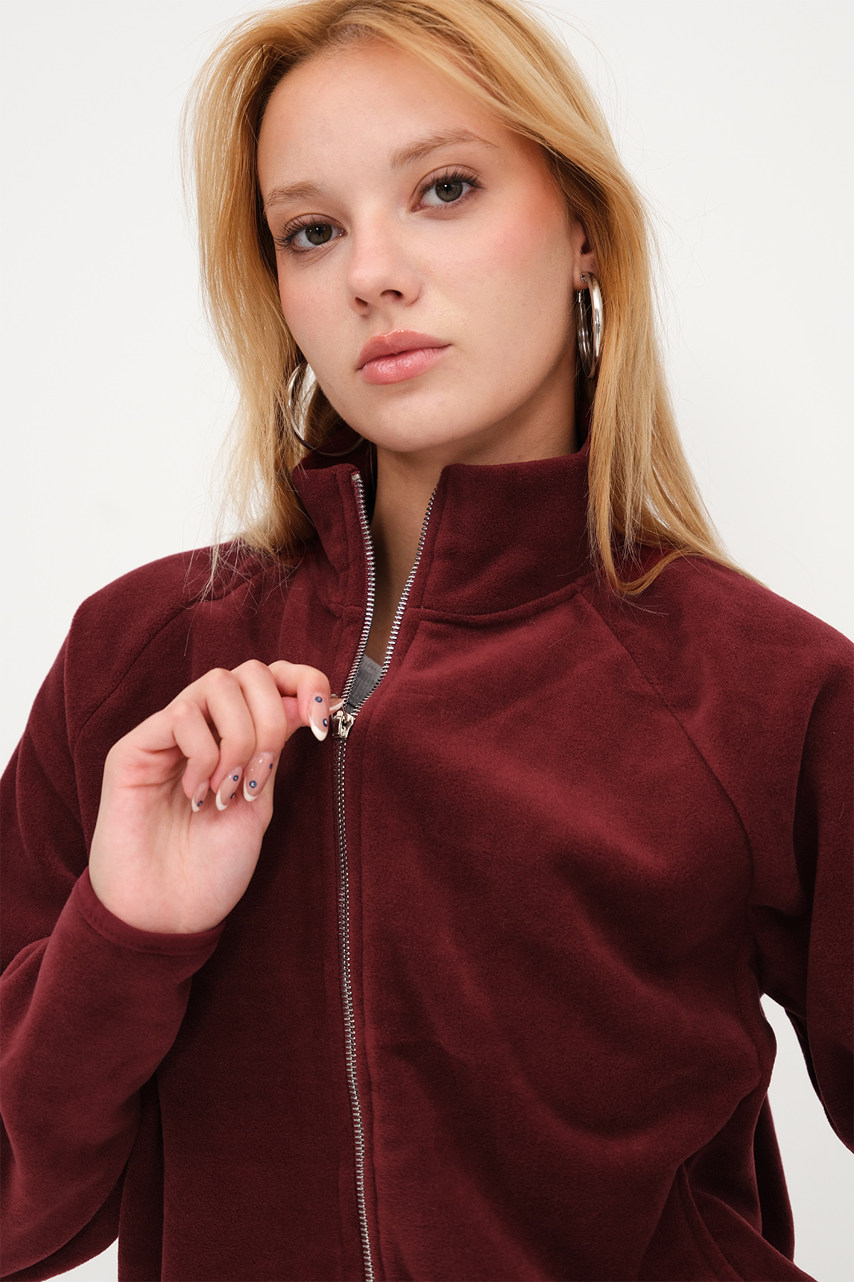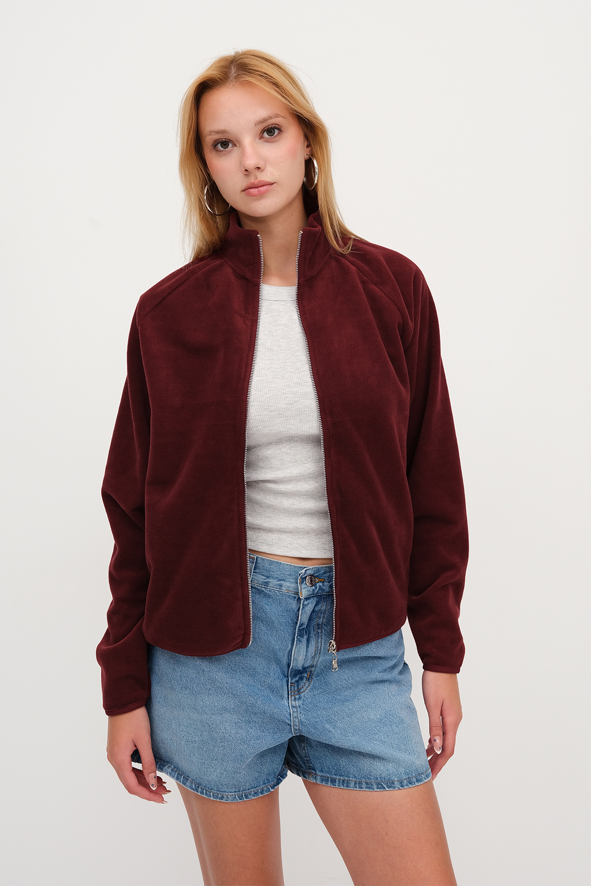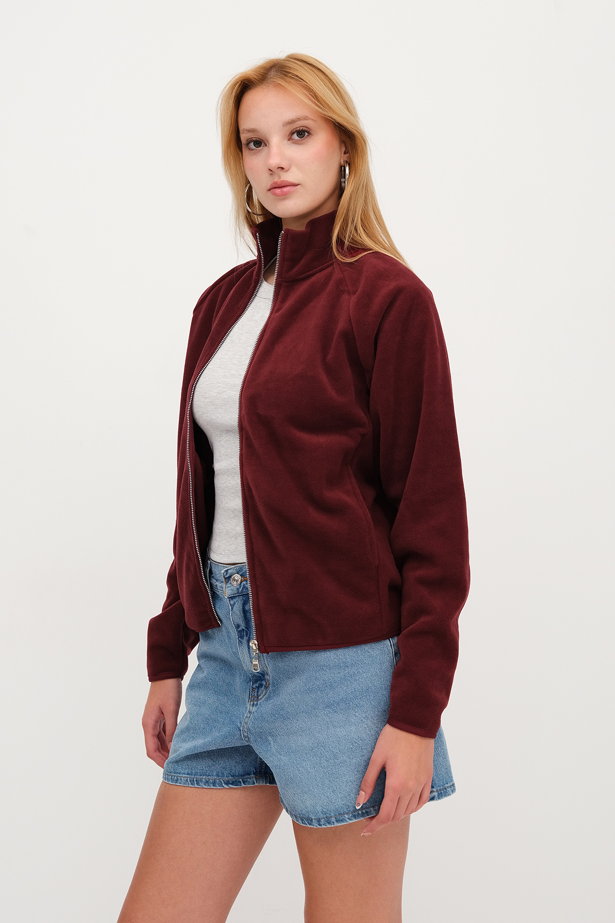 * Dik yaka, uzun kollu, fermuarlı, düz renk,