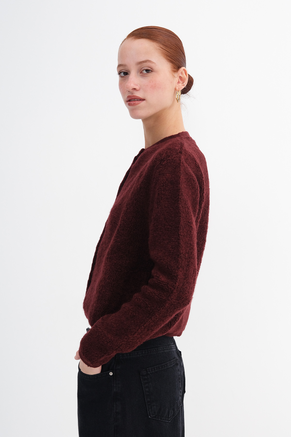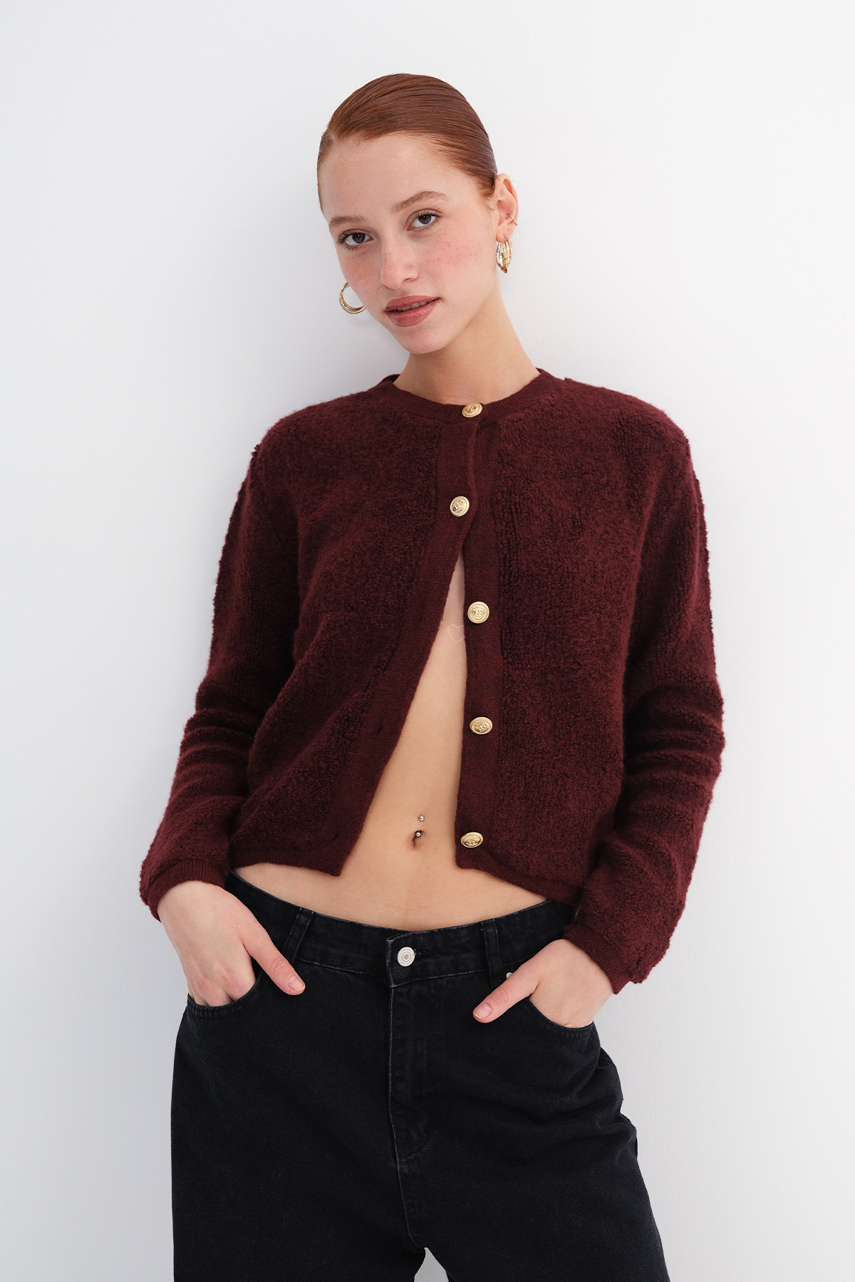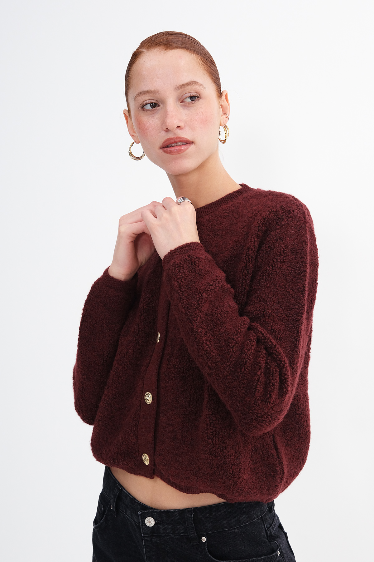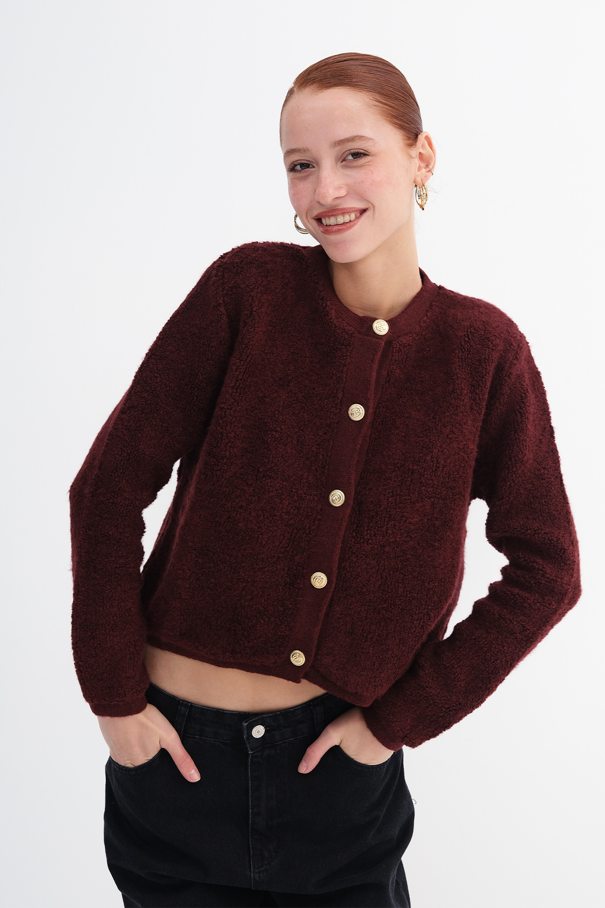 * Düz renk, triko hırka,