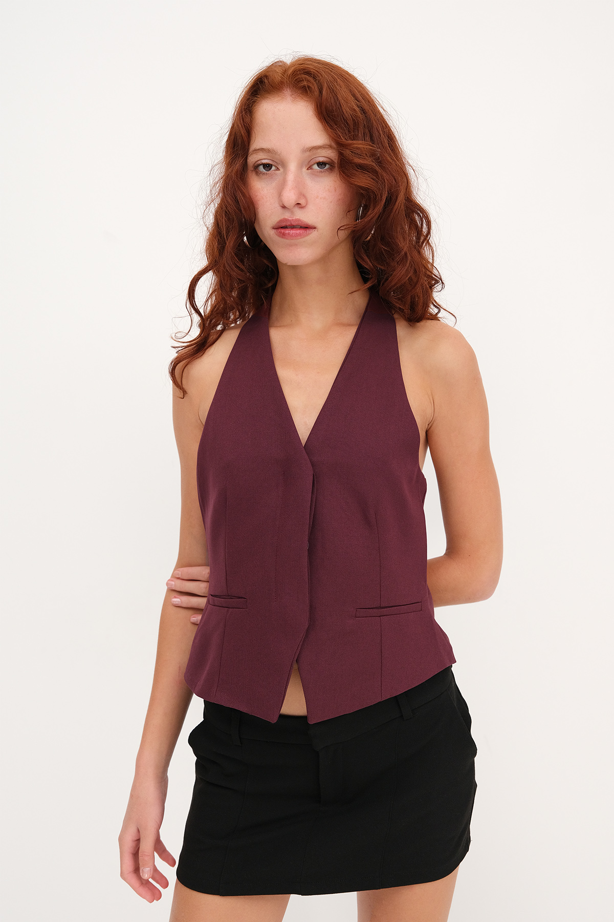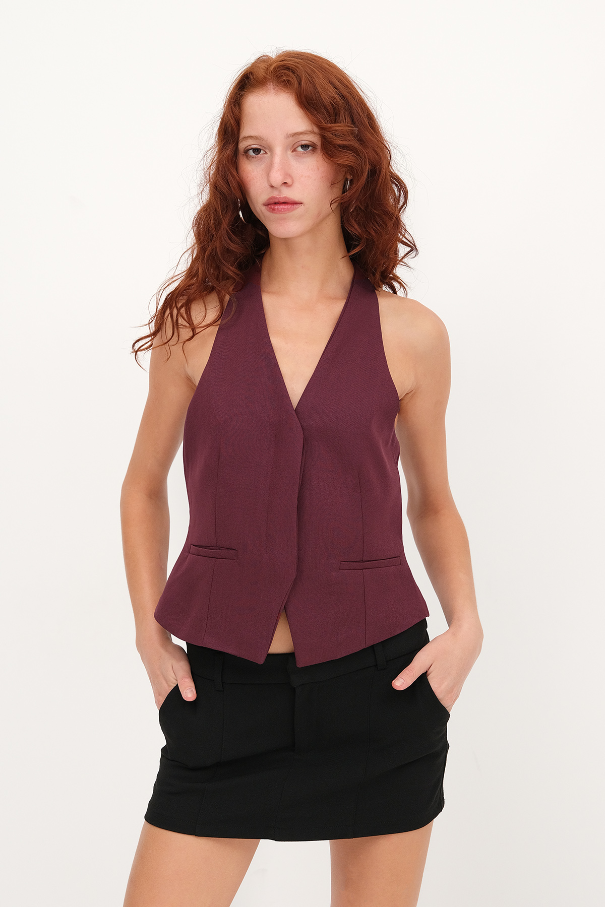 * Cep detaylı, astarlı yelek,