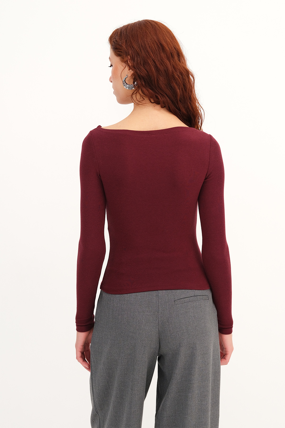 * Kayık yaka, uzun kollu,* Vücuda oturan, basic bluz,* Ürün içeriği: %47 Pamuk %47 Modal %6 Elastan* Modal karışımlı kumaştan üretilmiştir.* Modal kumaş; Yıpranmaya karşı dayanıklı, nem transfer özelliği yüksek, cildinize rahatlık ve yumuşaklık hissi veren kaliteli kumaş türüdür.* Teninize nefes aldıran yapısı sayesinde her mevsim kullanıma uygundur.* Manken üzerindeki ürün 36/S bedendir.* Numune beden ölçüleri: Boy: 47 cm Göğüs: 60 cm Kol boyu: 55 cm (1-3 cm değişiklik gösterebilir)* Ürün çekimlerinde renkler, ışık farklılığından dolayı değişkenlik gösterebilir.