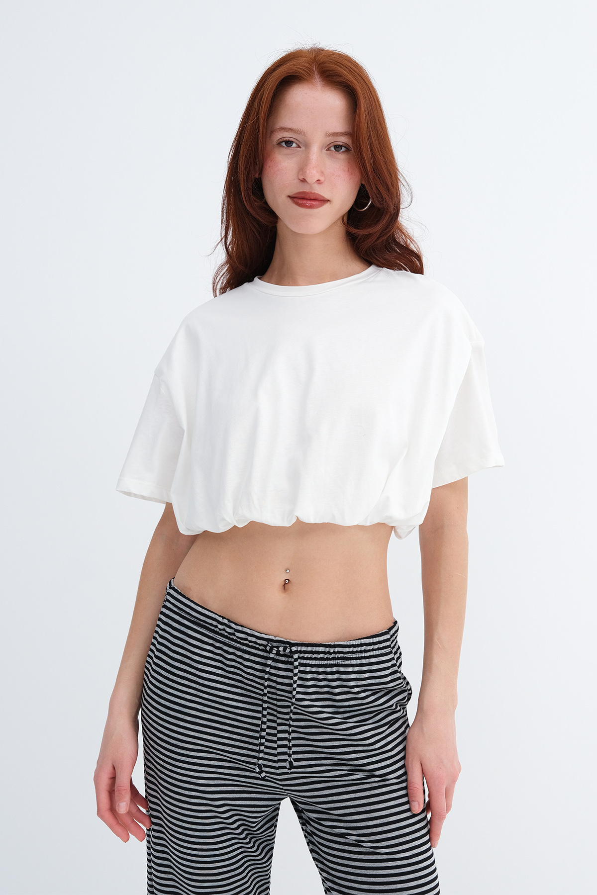 * Etek ucu lastikli, crop, basic t-shirt,