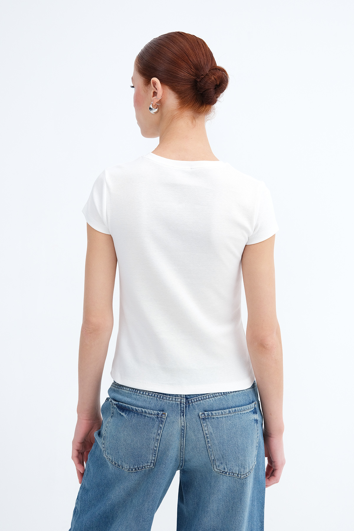 * Baskılı, vücudu saran t-shirt,