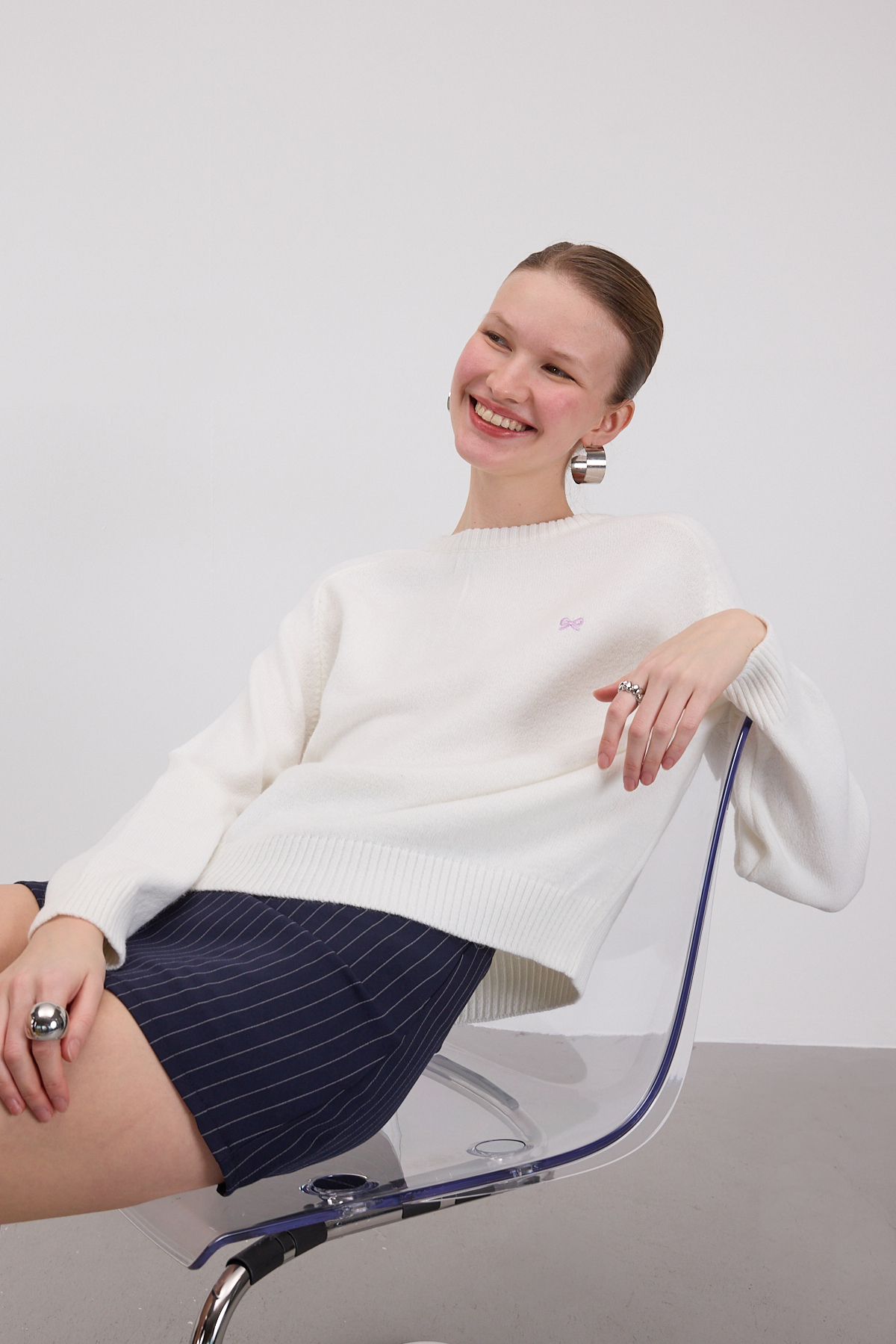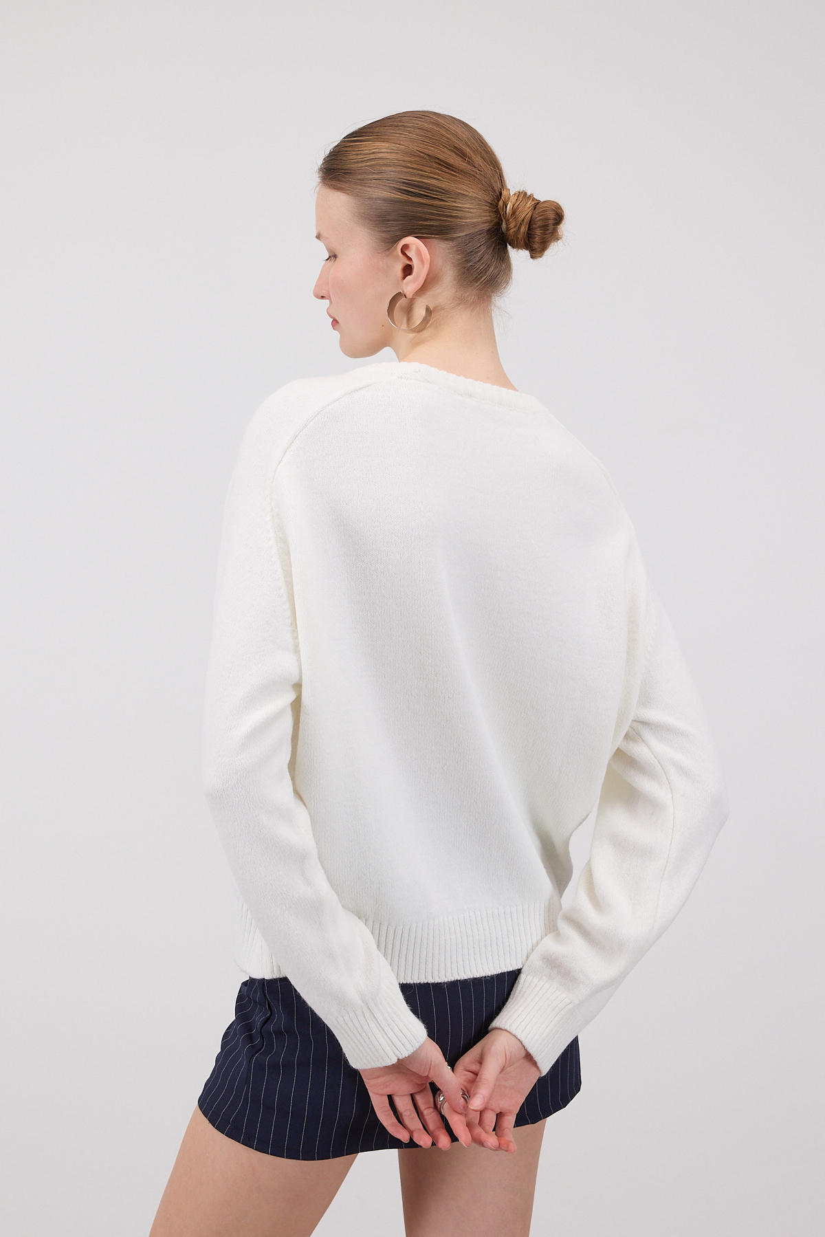 * Bisiklet yaka, uzun kollu,* Kurdele nakışlı, düz renk,* Triko kazak,* Ürün içeriği: %100 Akrilik* Manken üzerindeki ürün standart bedendir.* Numune beden ölçüleri: Boy: 57 cm Göğüs:50 cm Kol boyu:71 cm (1-3 cm değişiklik gösterebilir)* Kol boyu omuzdan ölçülmüştür.* Ürün çekimlerinde renkler, ışık farklılığından dolayı değişkenlik gösterebilir.