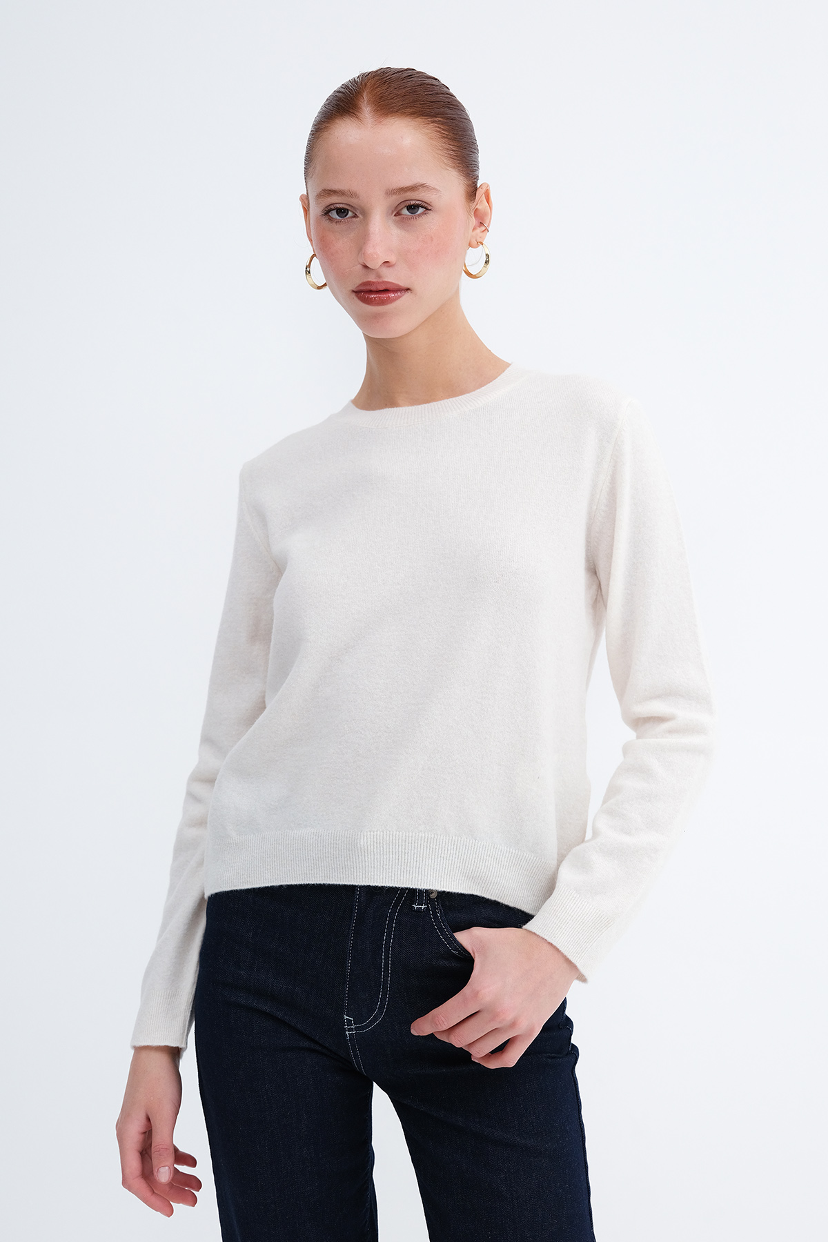 * Düz renk, triko kazak,