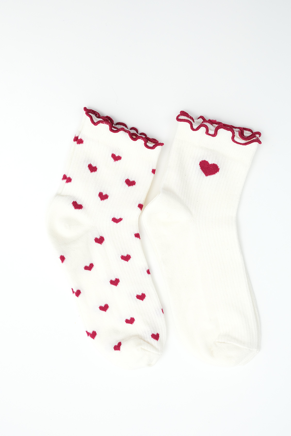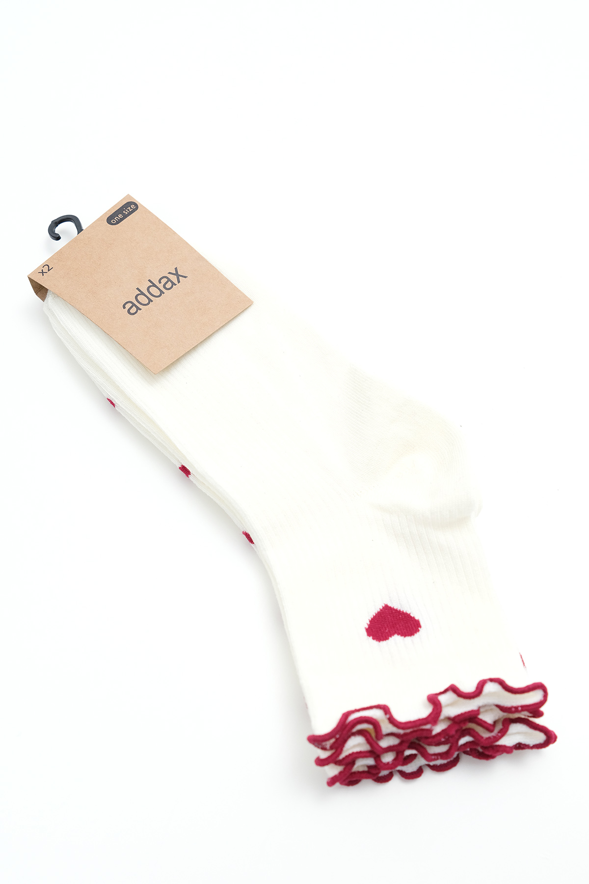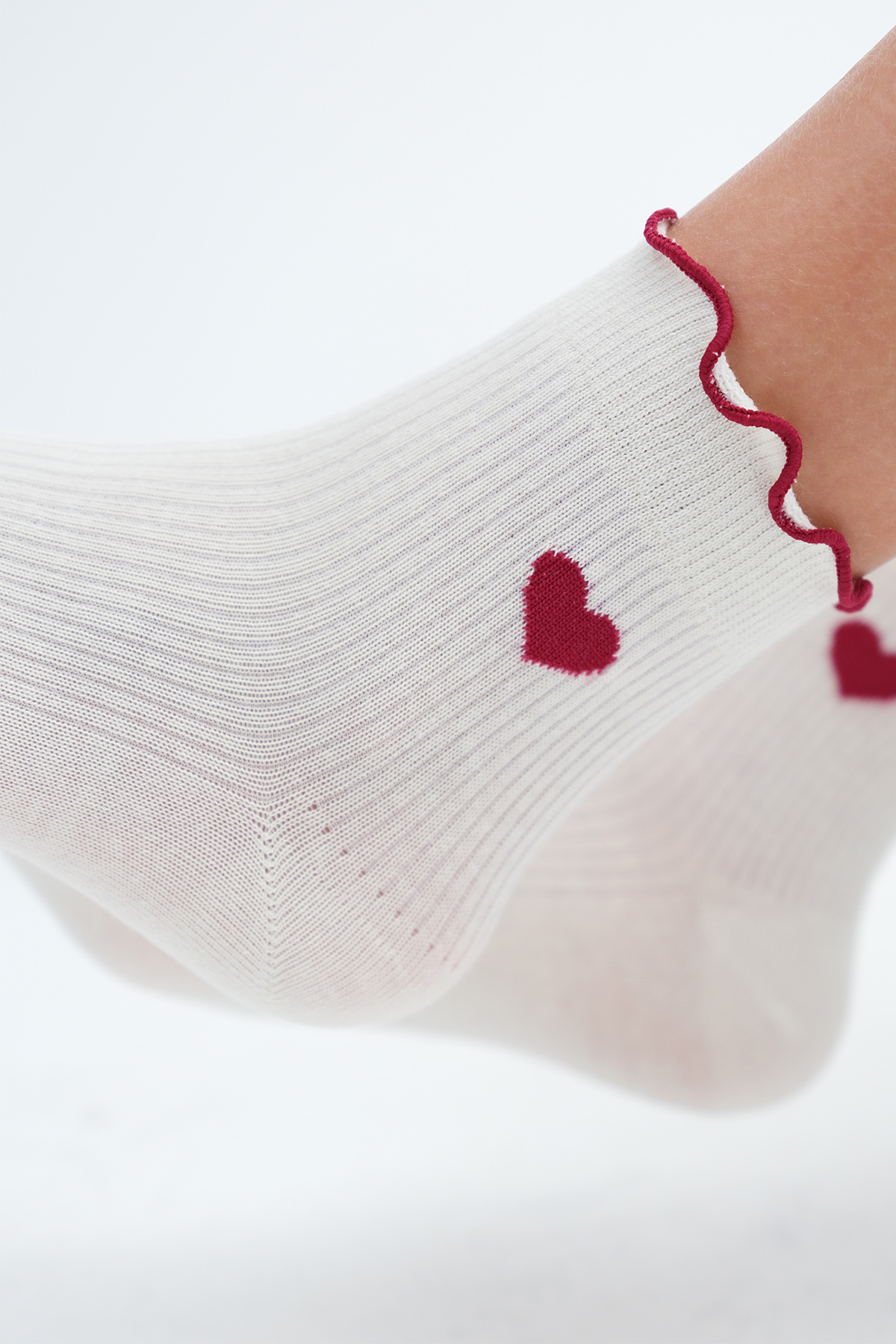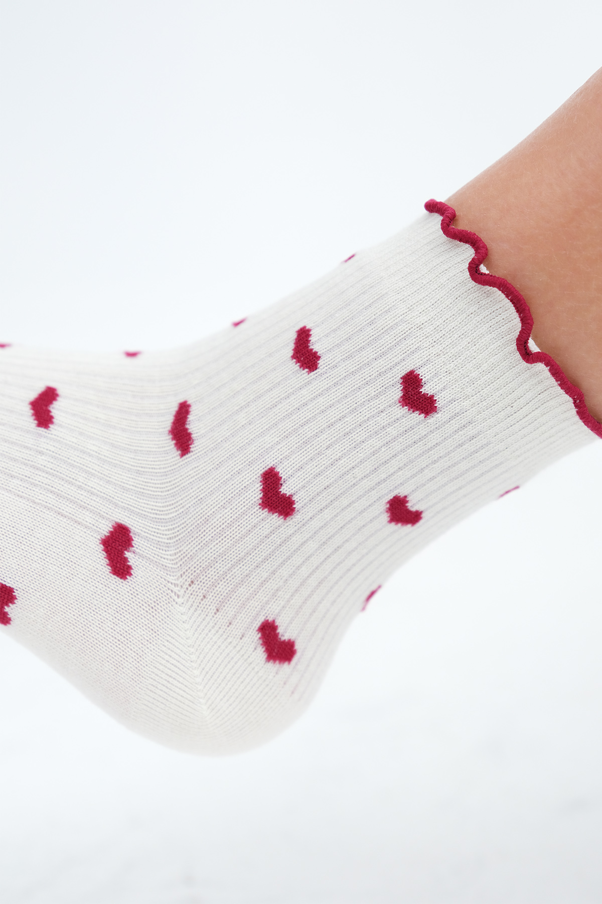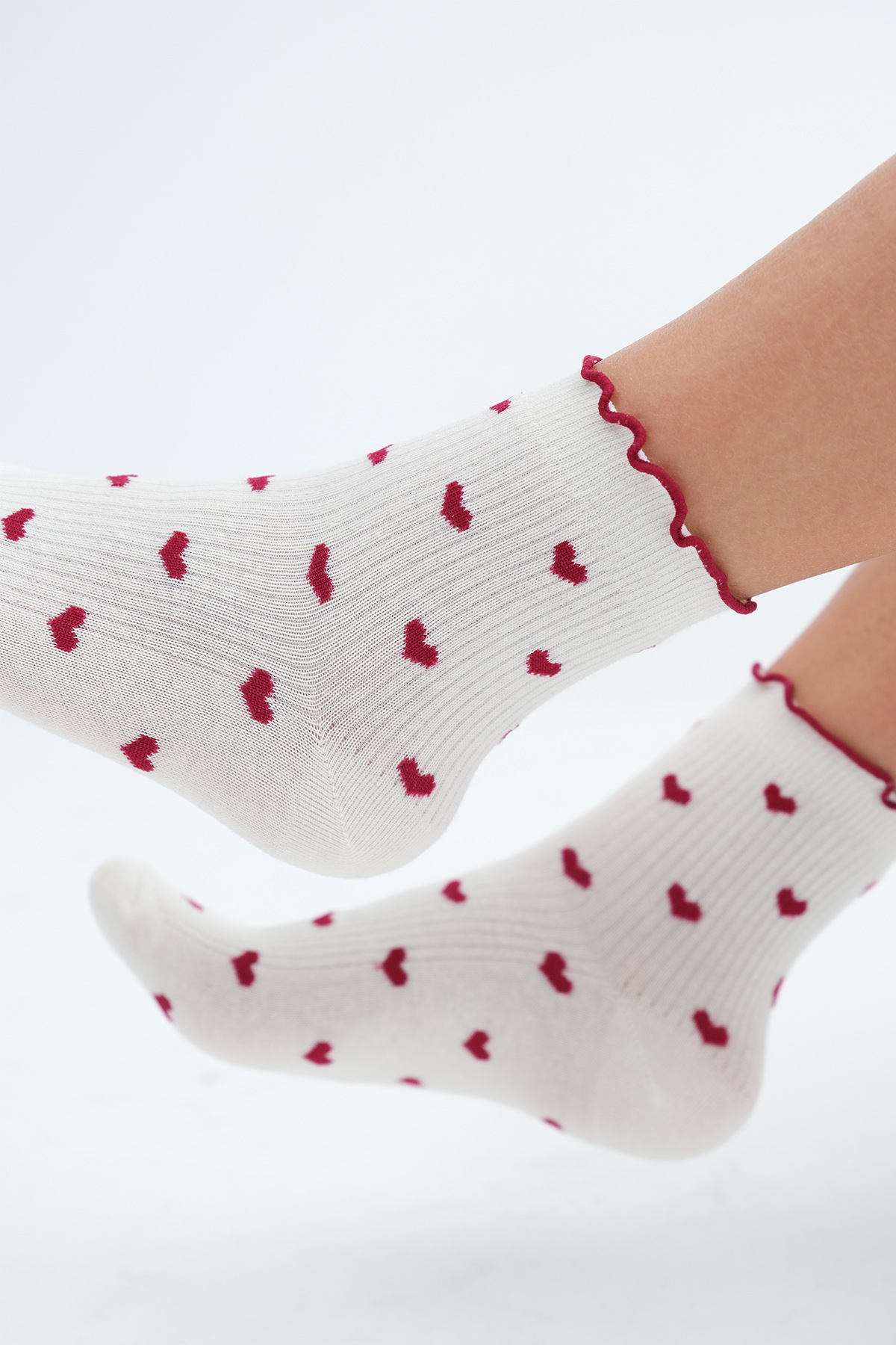 * Kalp desenli, 2`li paket soket çorap,
