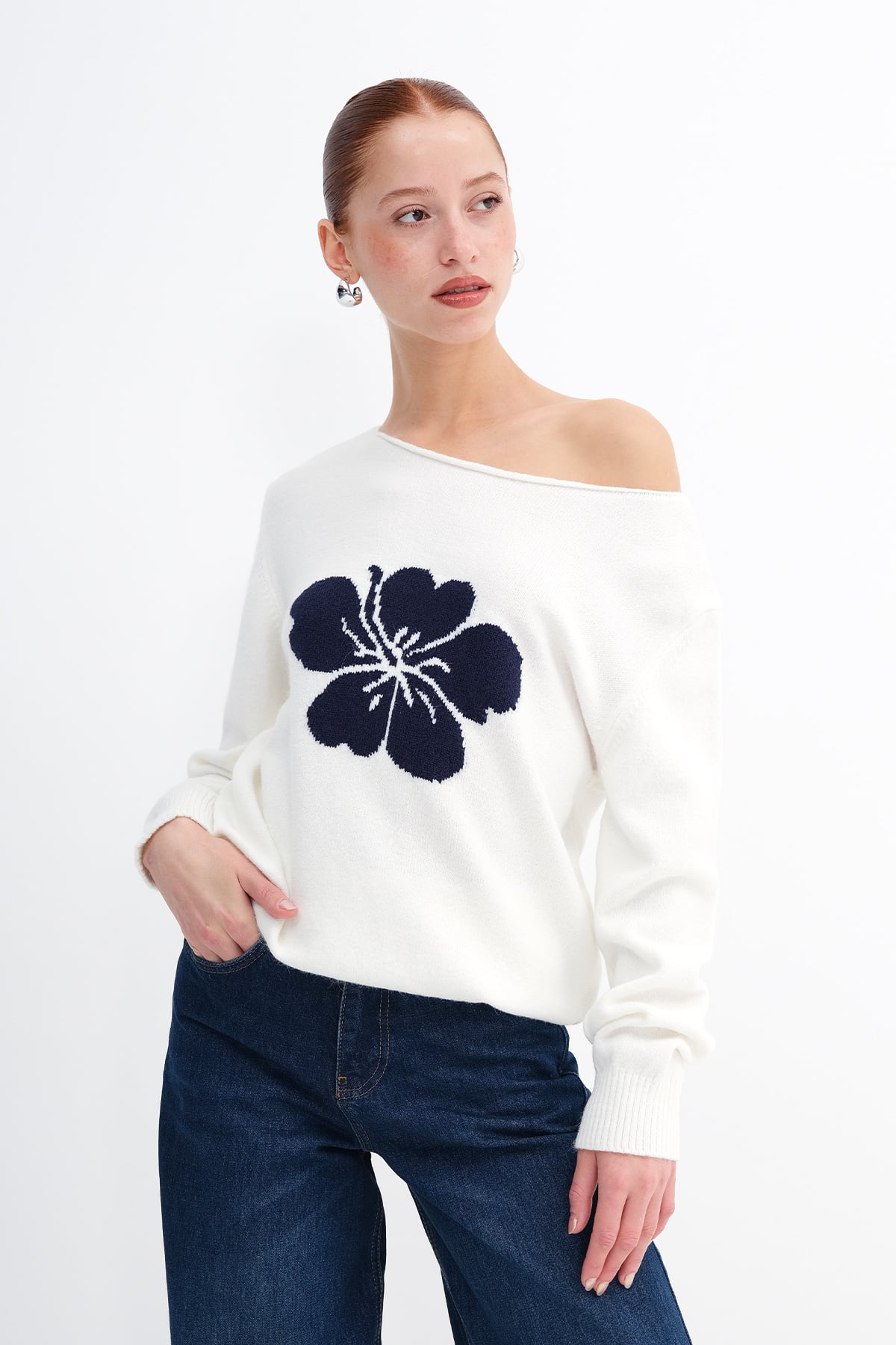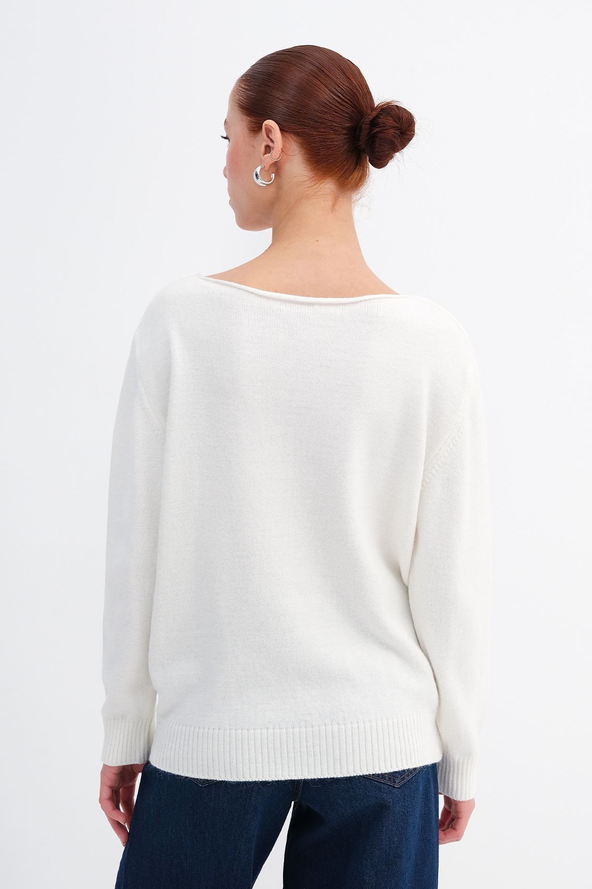 * Kayık yaka, uzun kollu, düşük omuz,