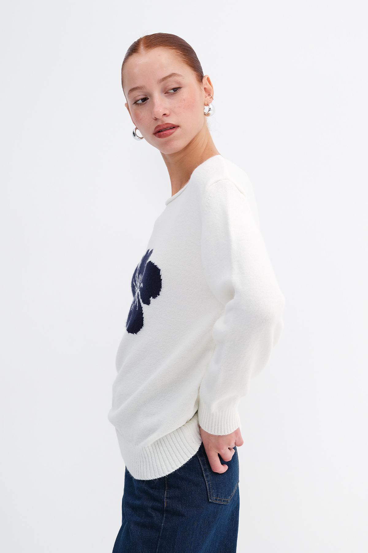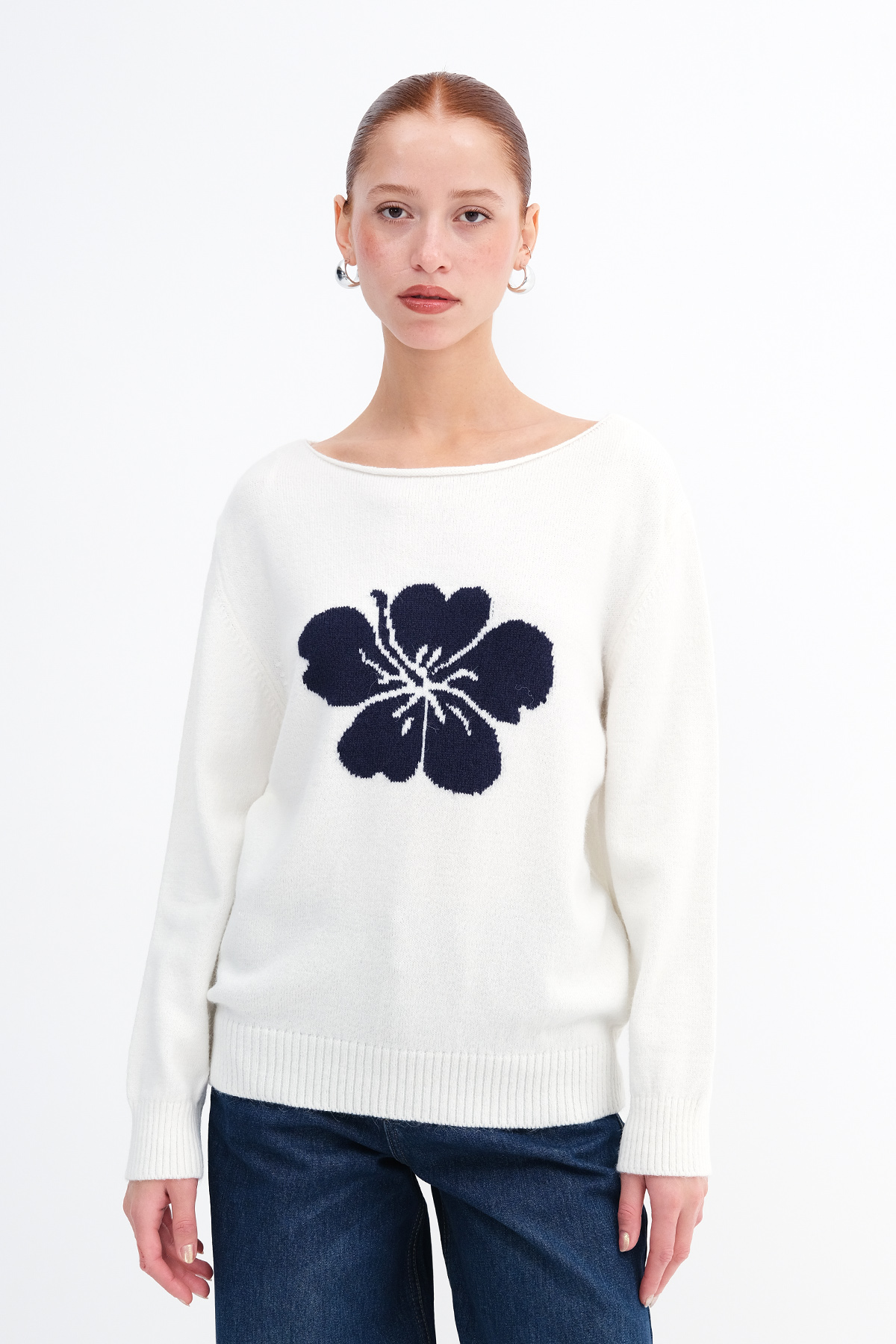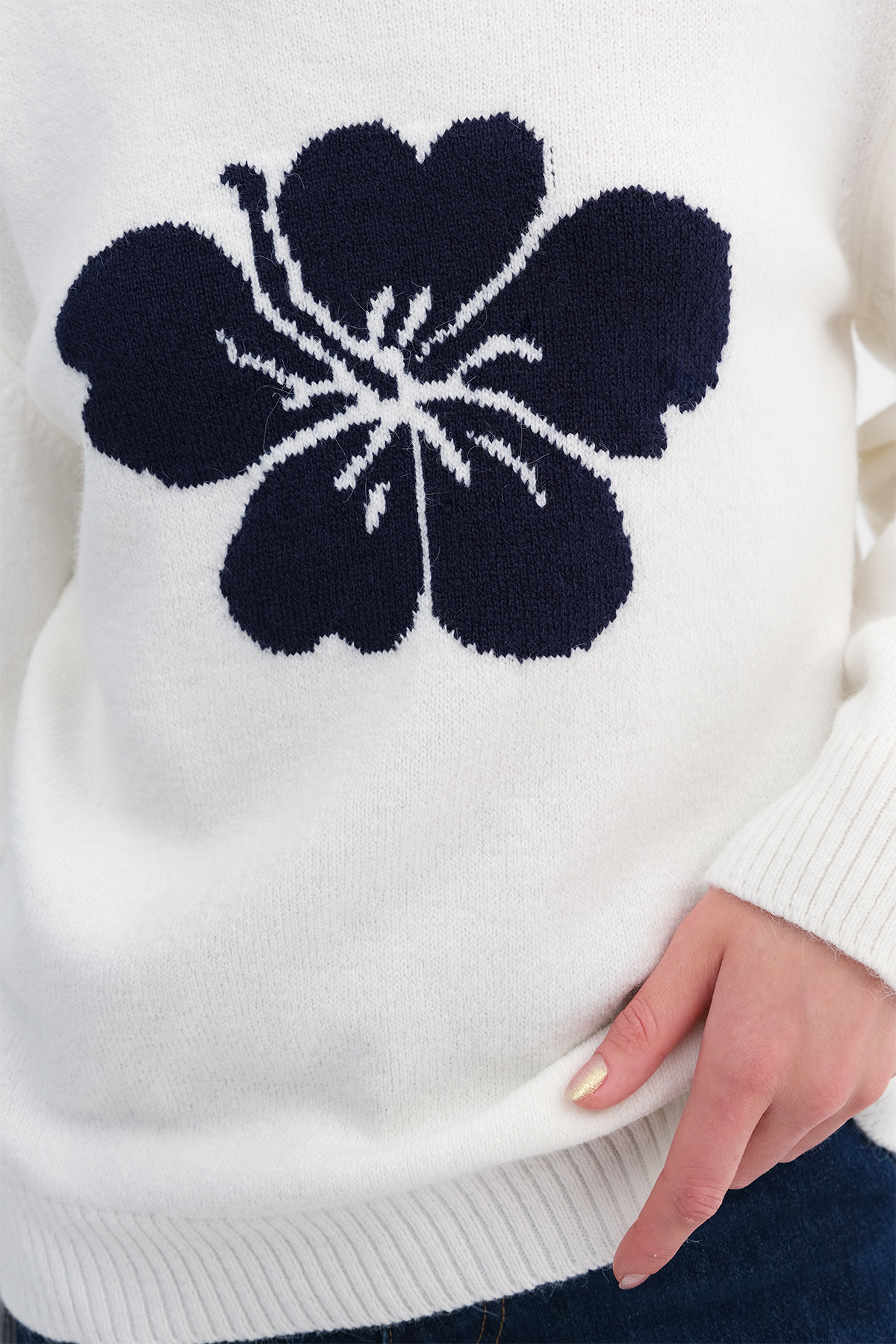 * Çiçekli, triko kazak,