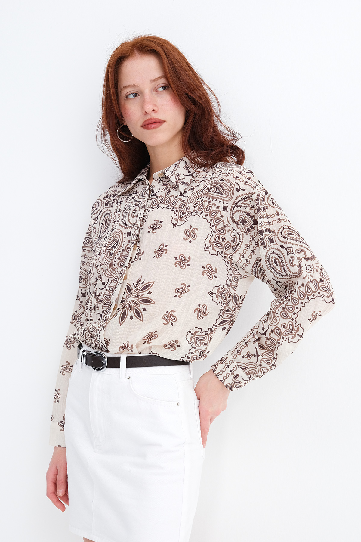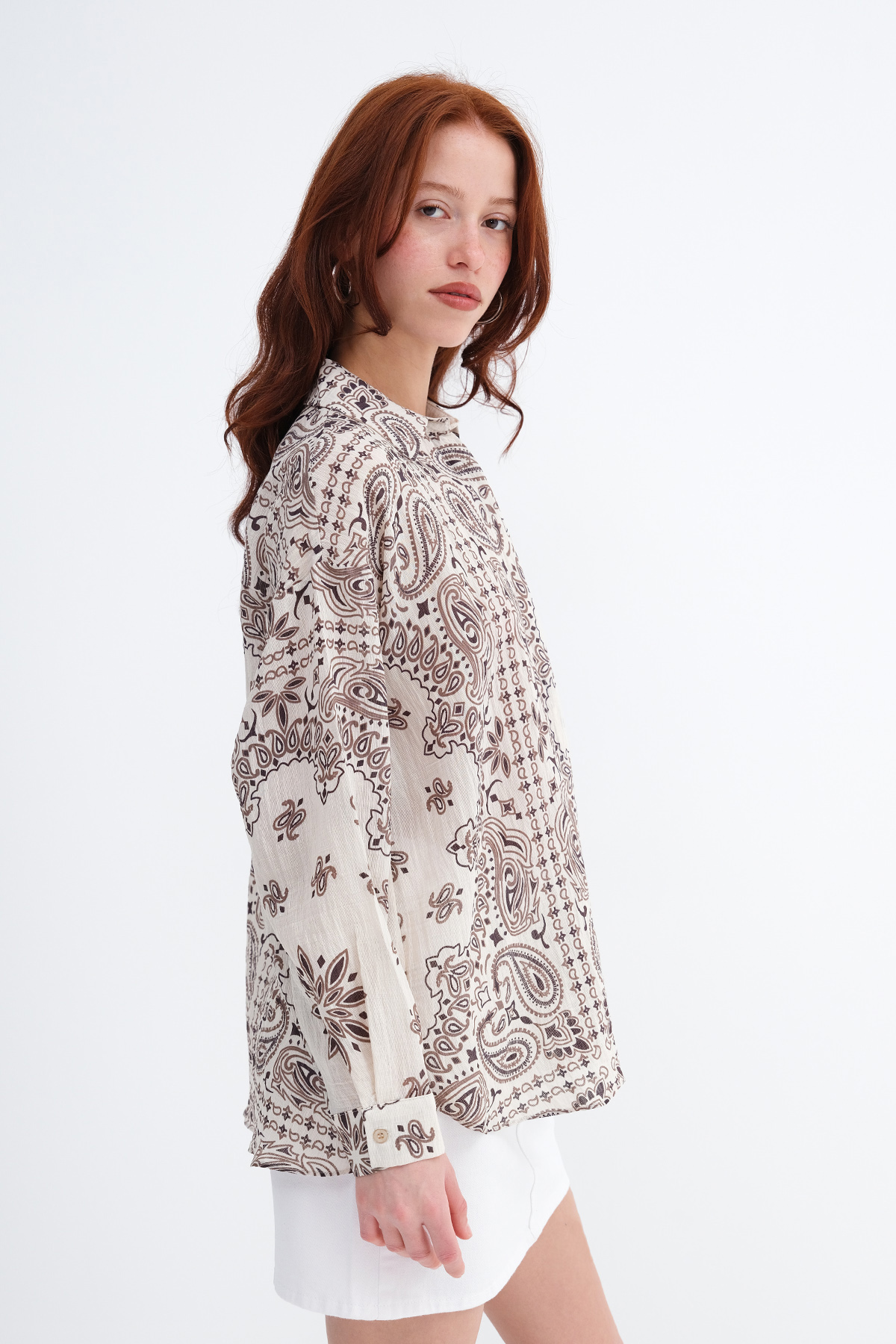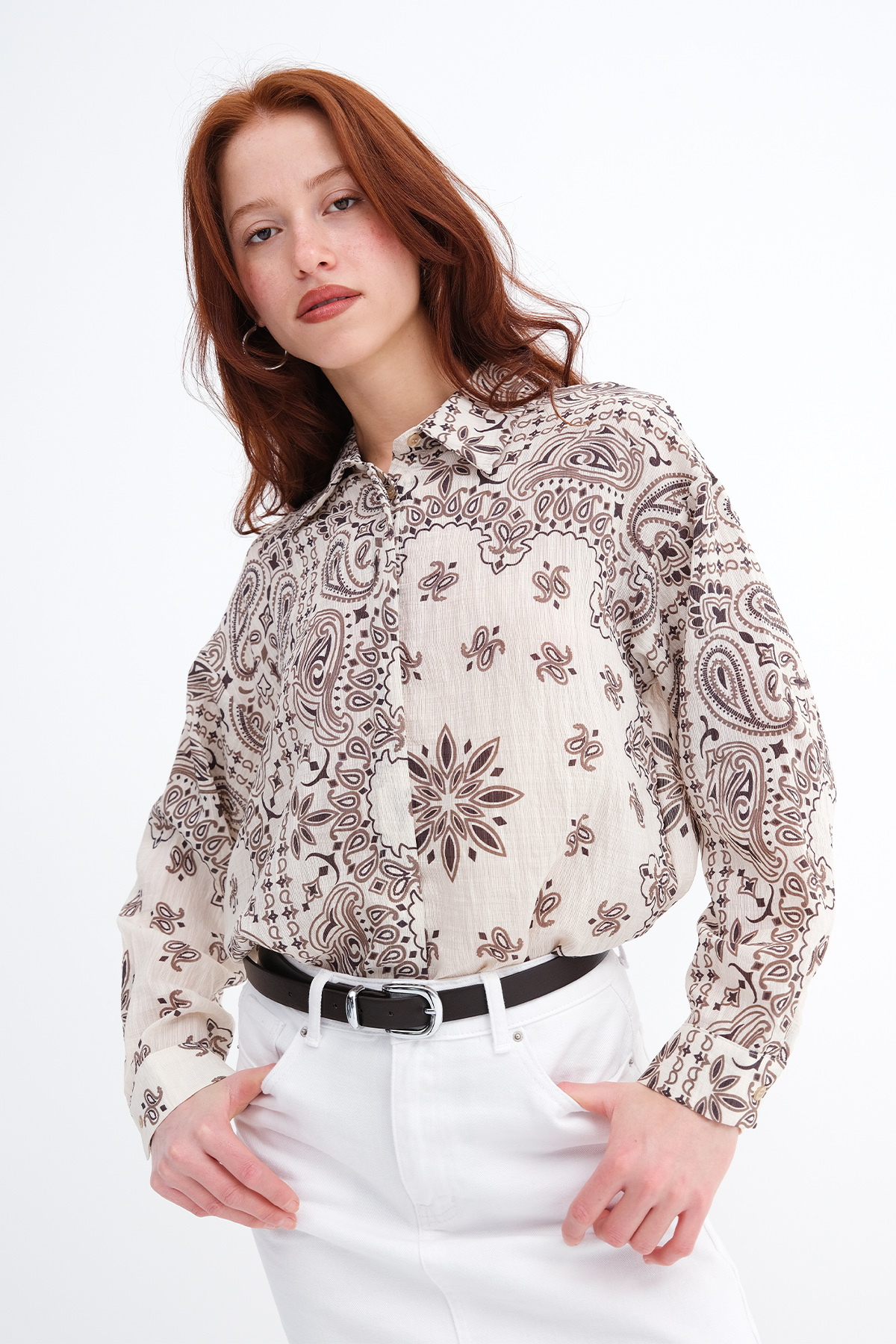 * Desenli, gizli düğmeli, gömlek,
