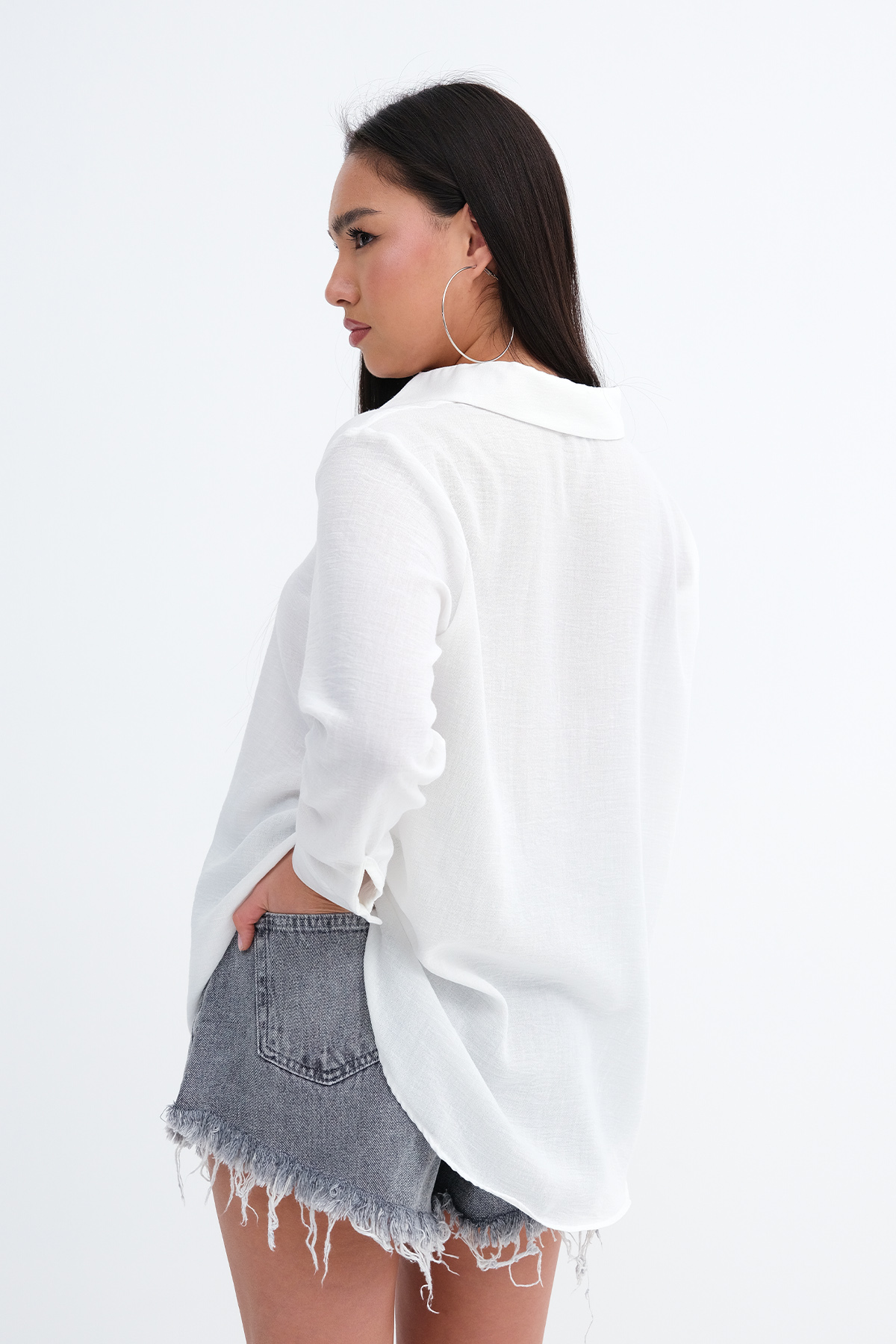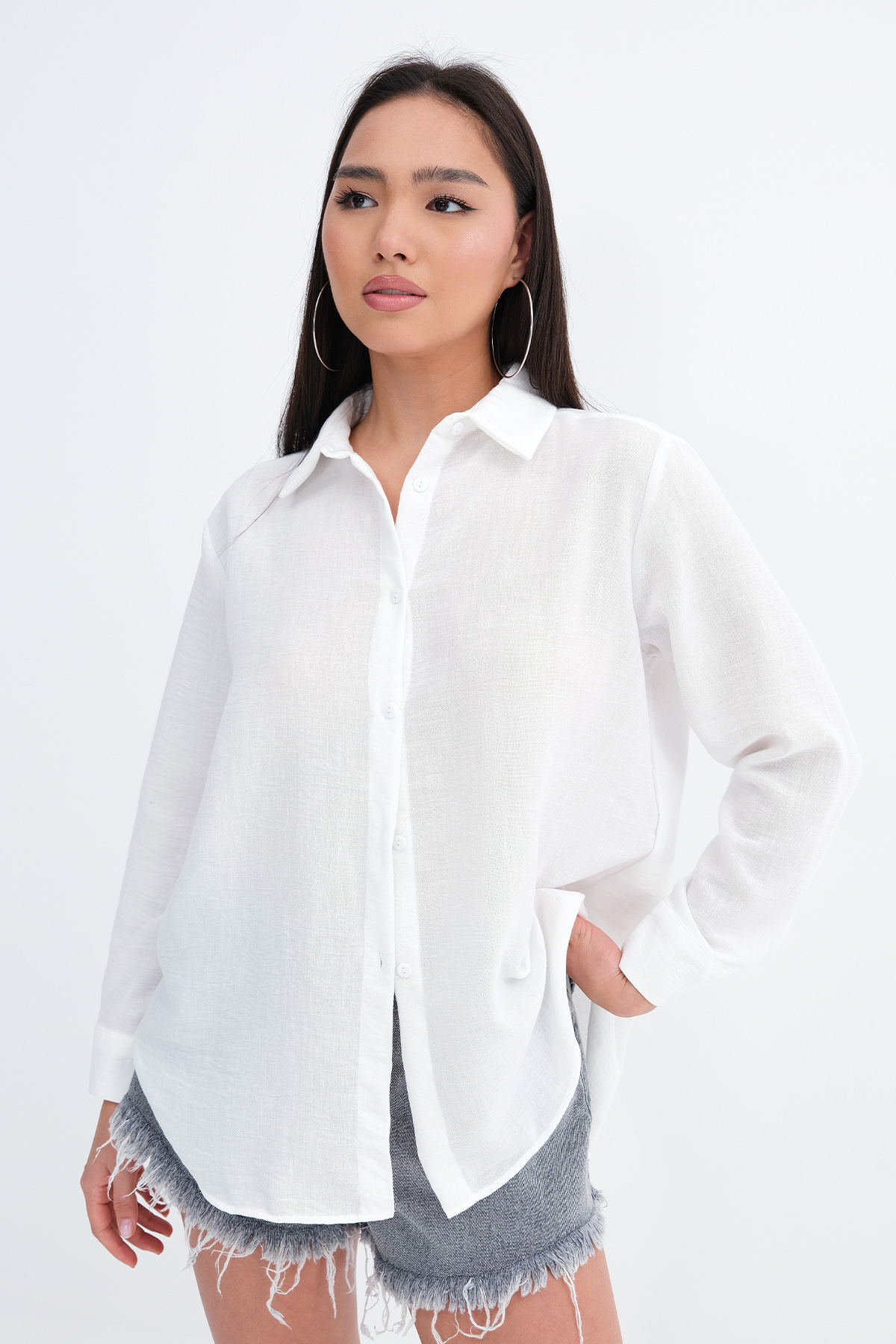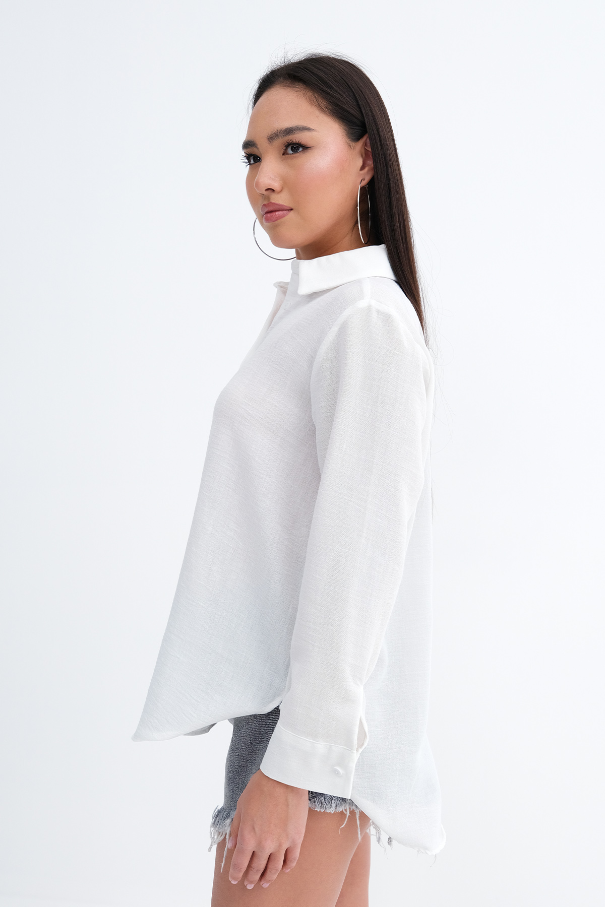 * Gömlek yaka, uzun kollu, düşük omuz,