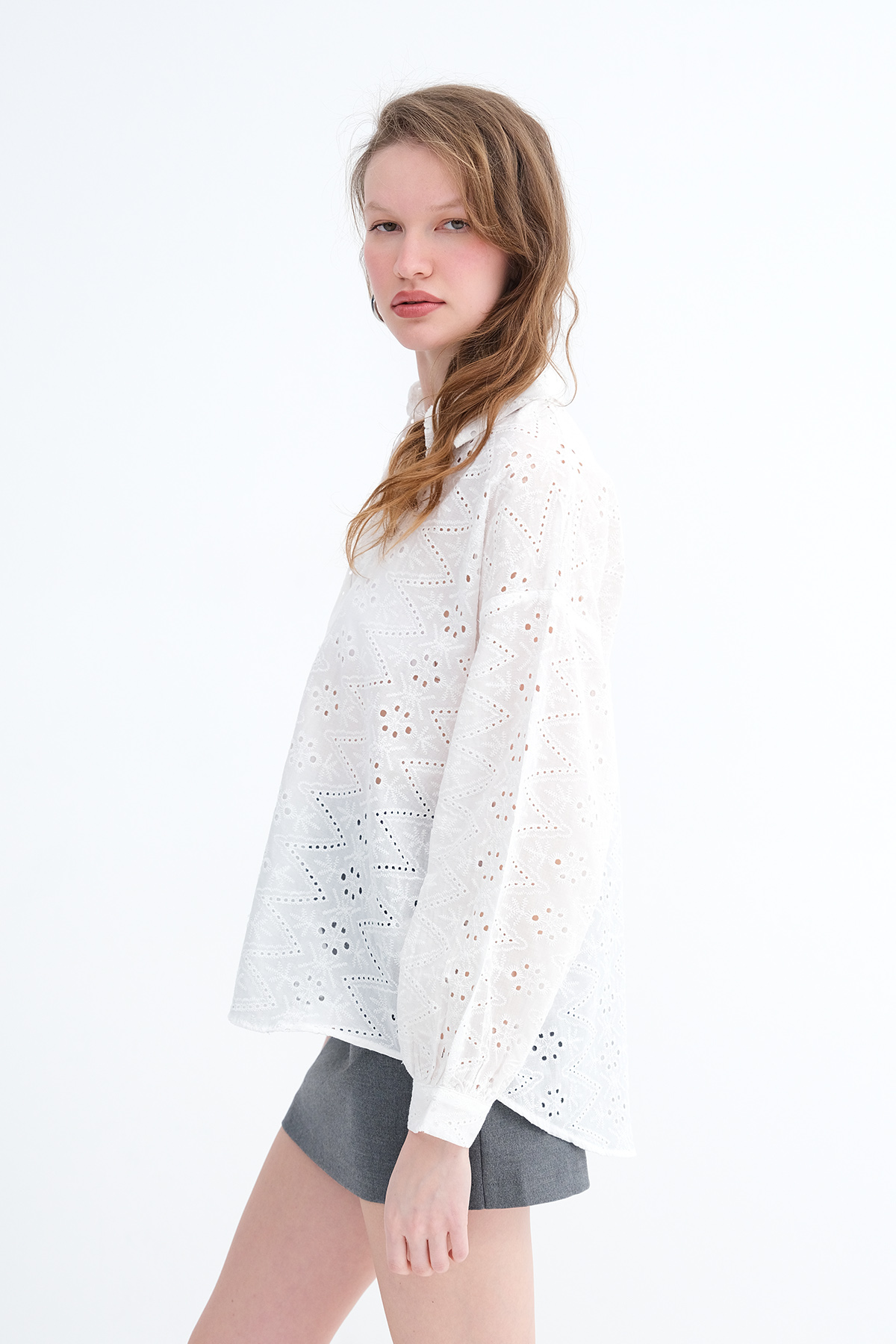 * Gömlek yaka, uzun kollu,