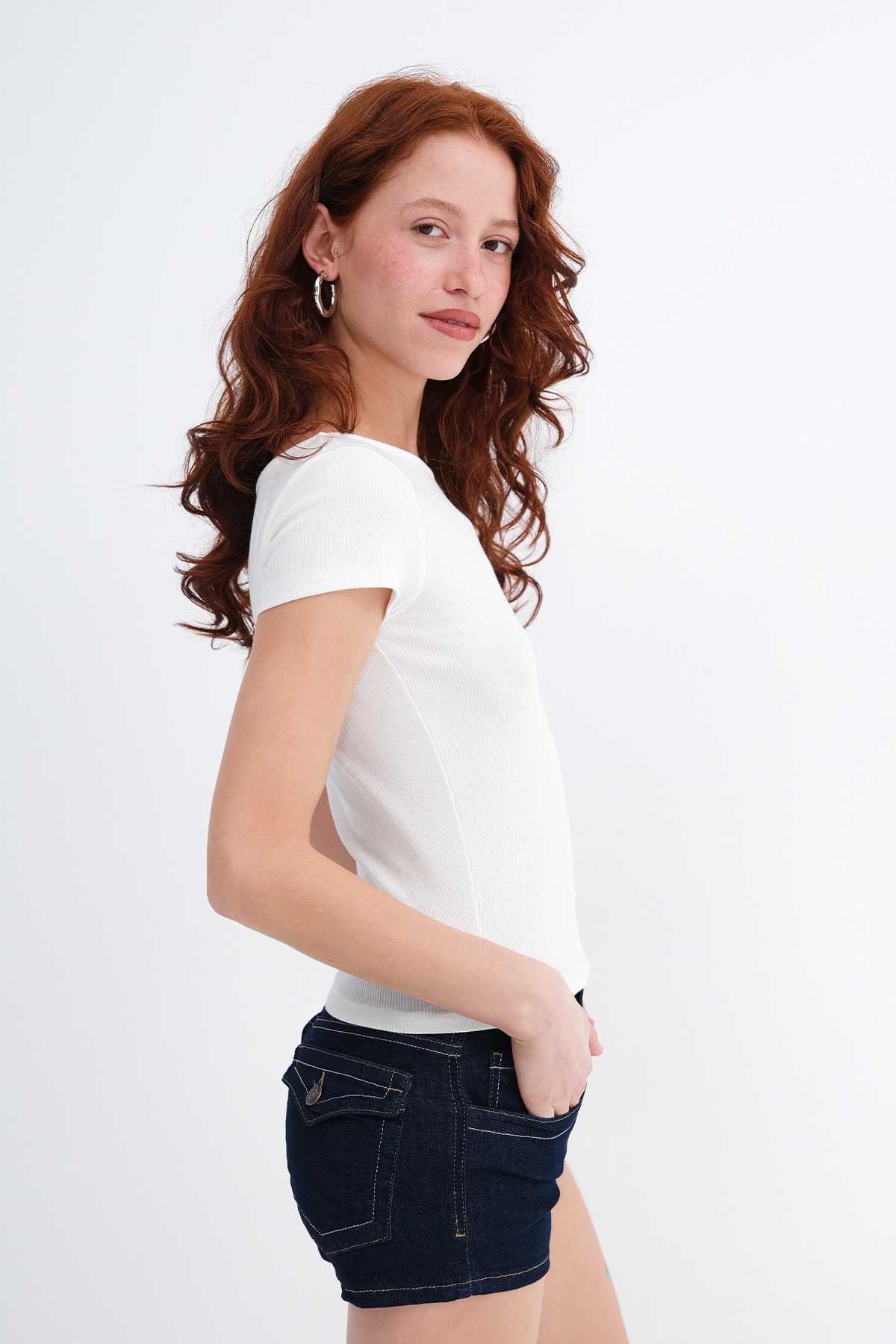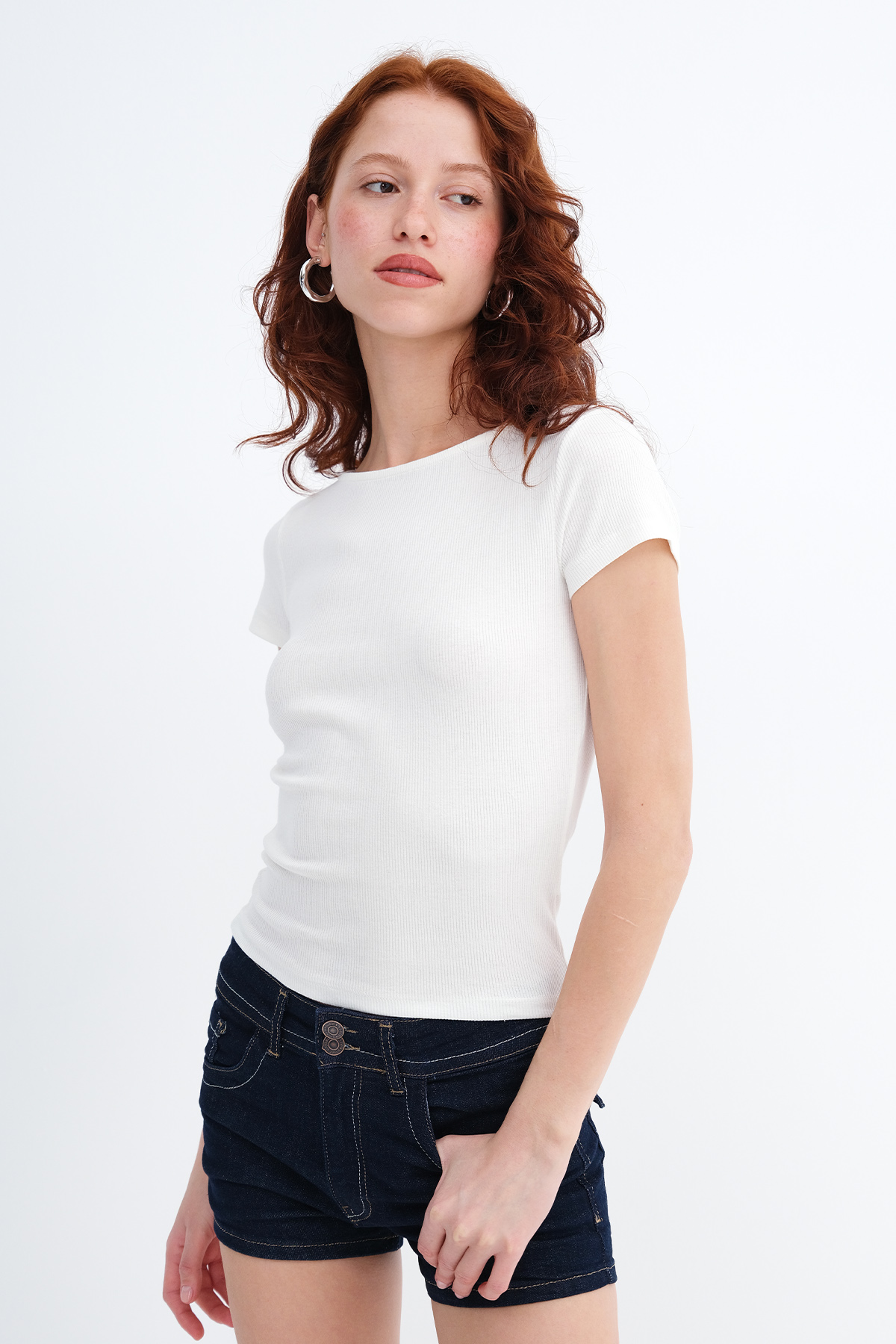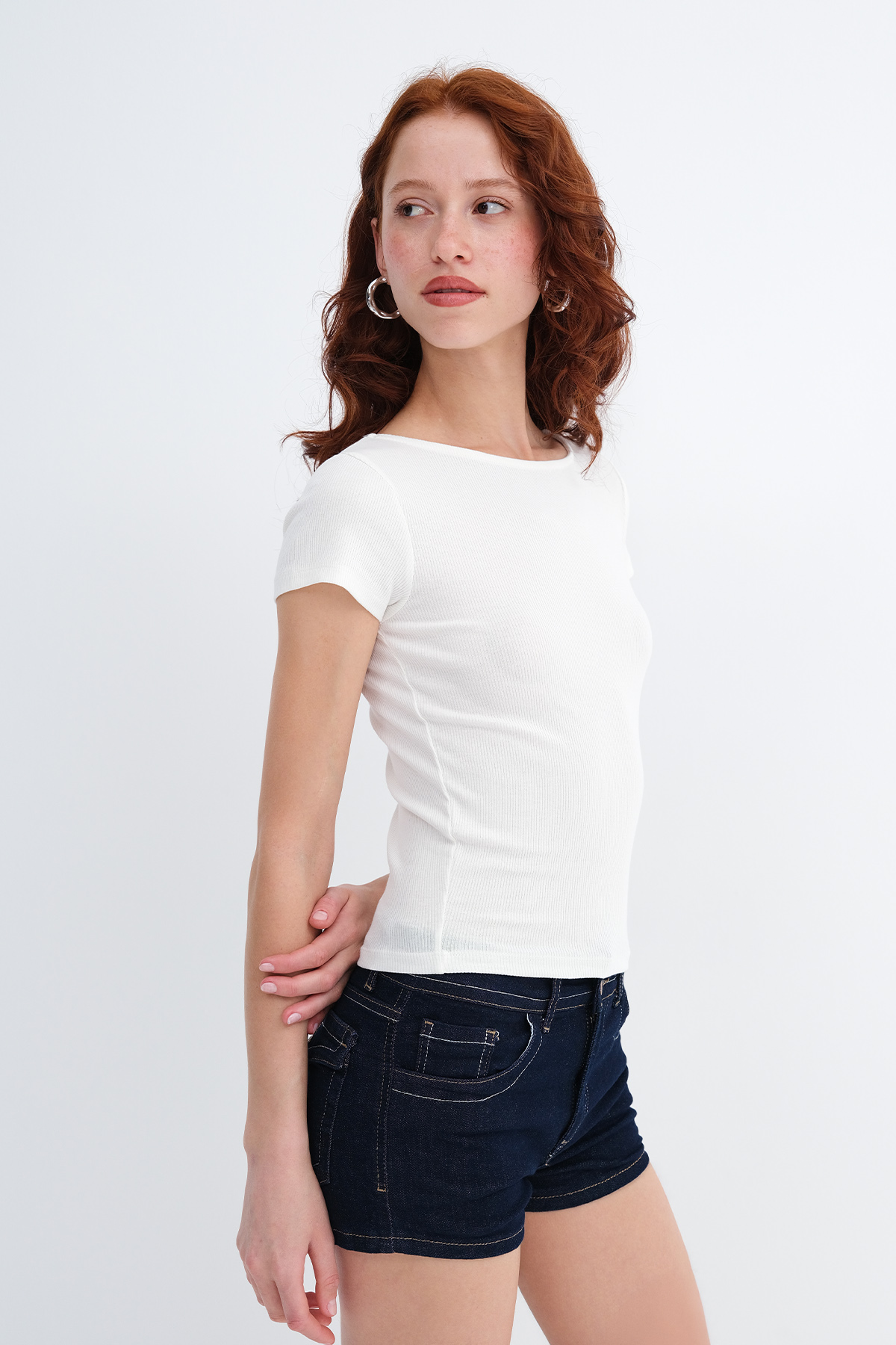* Fitilli, vücudu saran, basic t-shirt,
