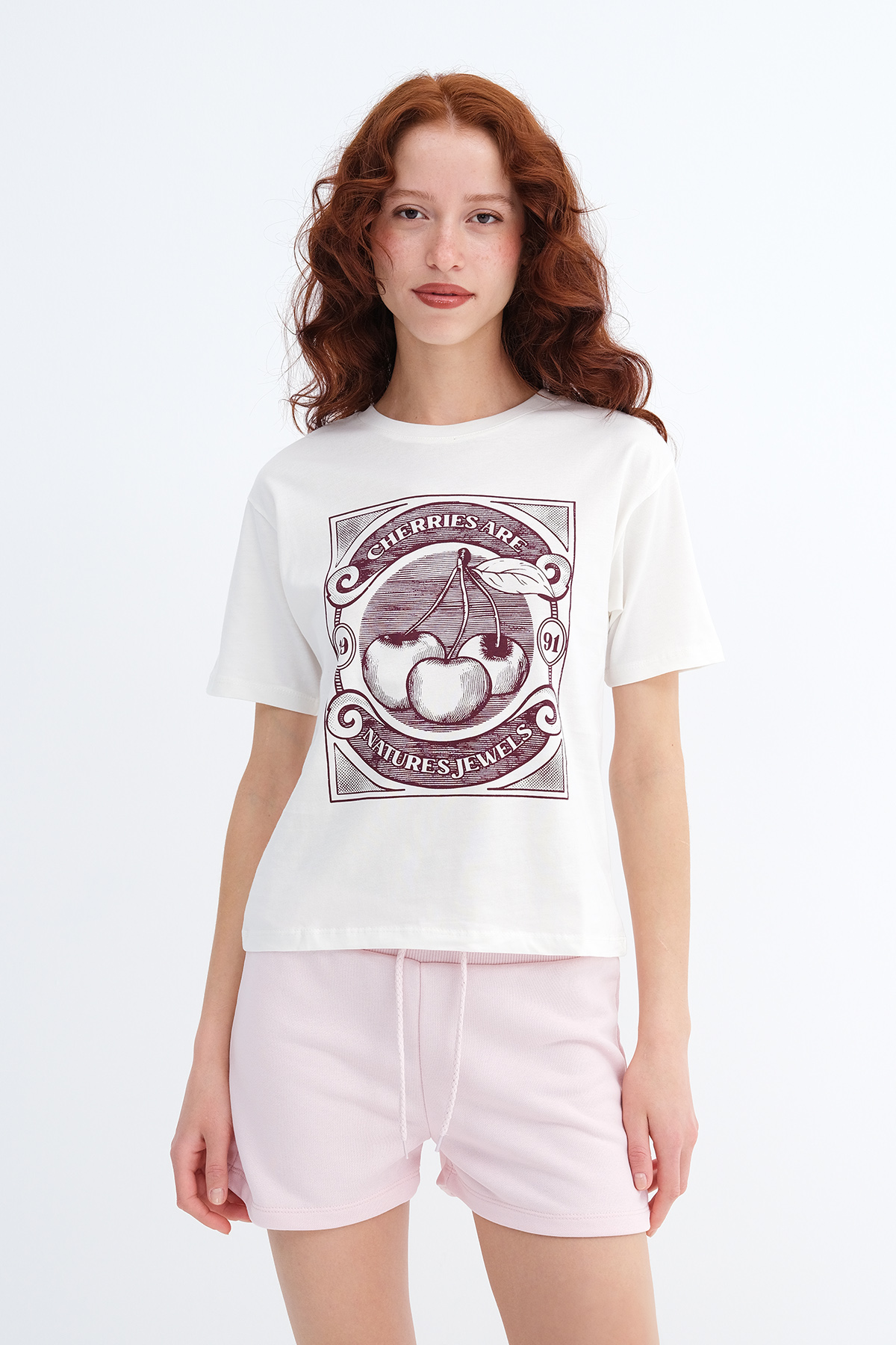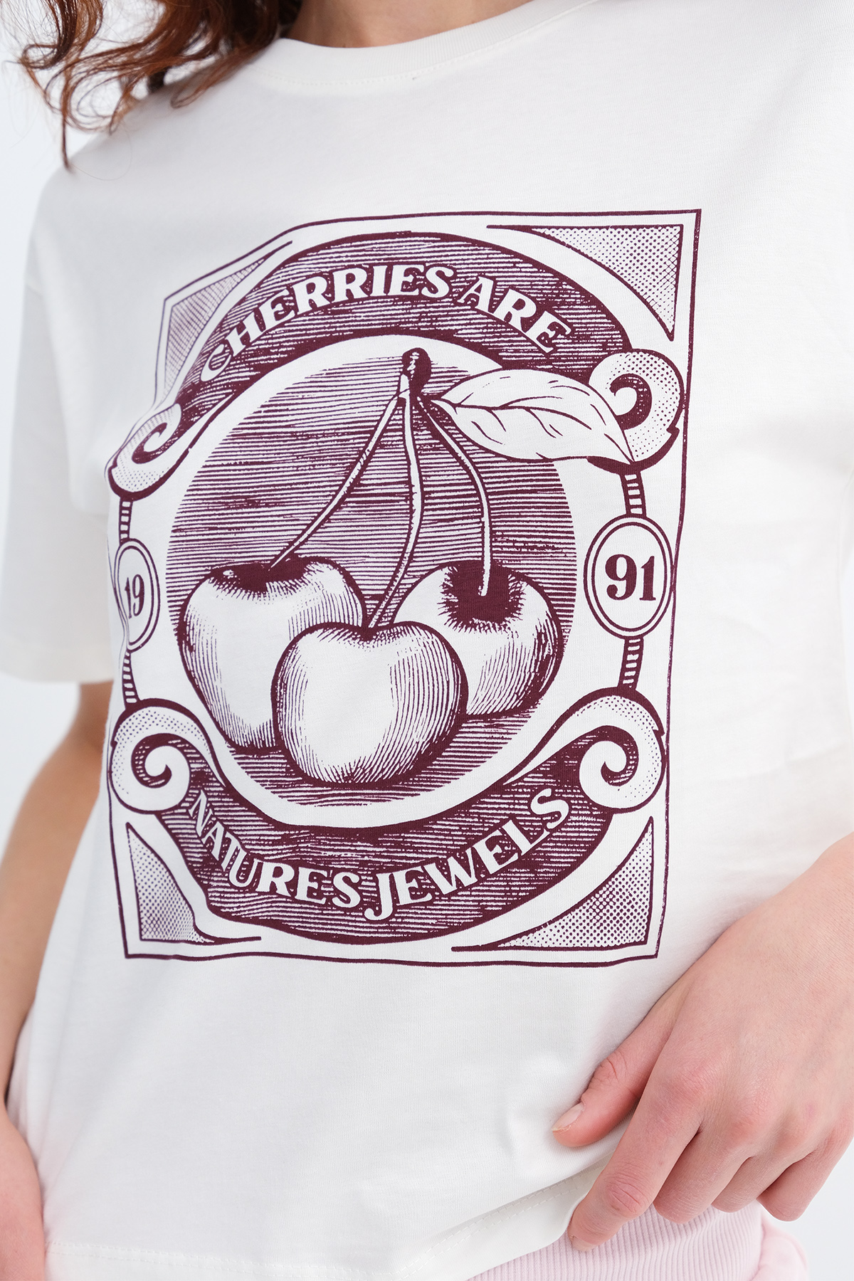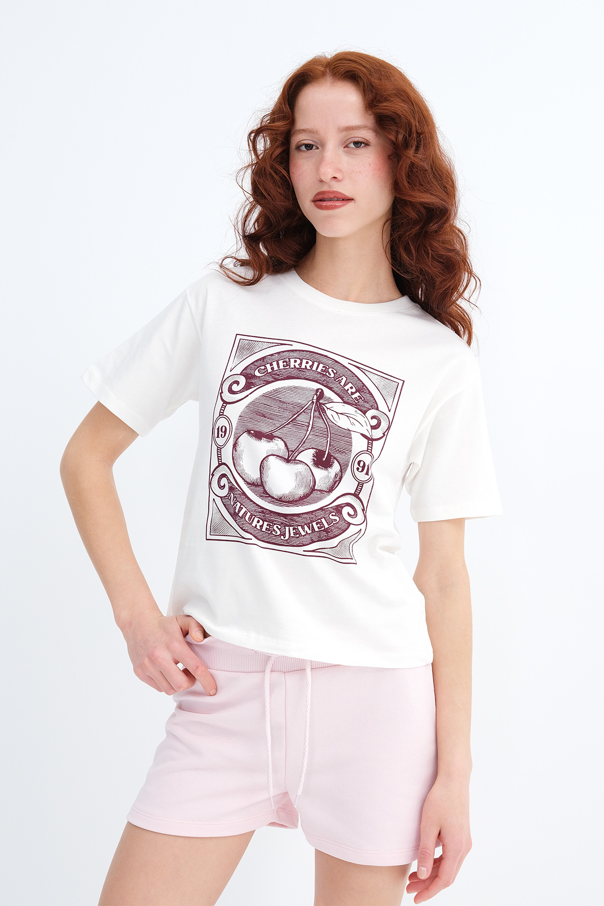 * Kiraz baskılı, rahat kalıp t-shirt,