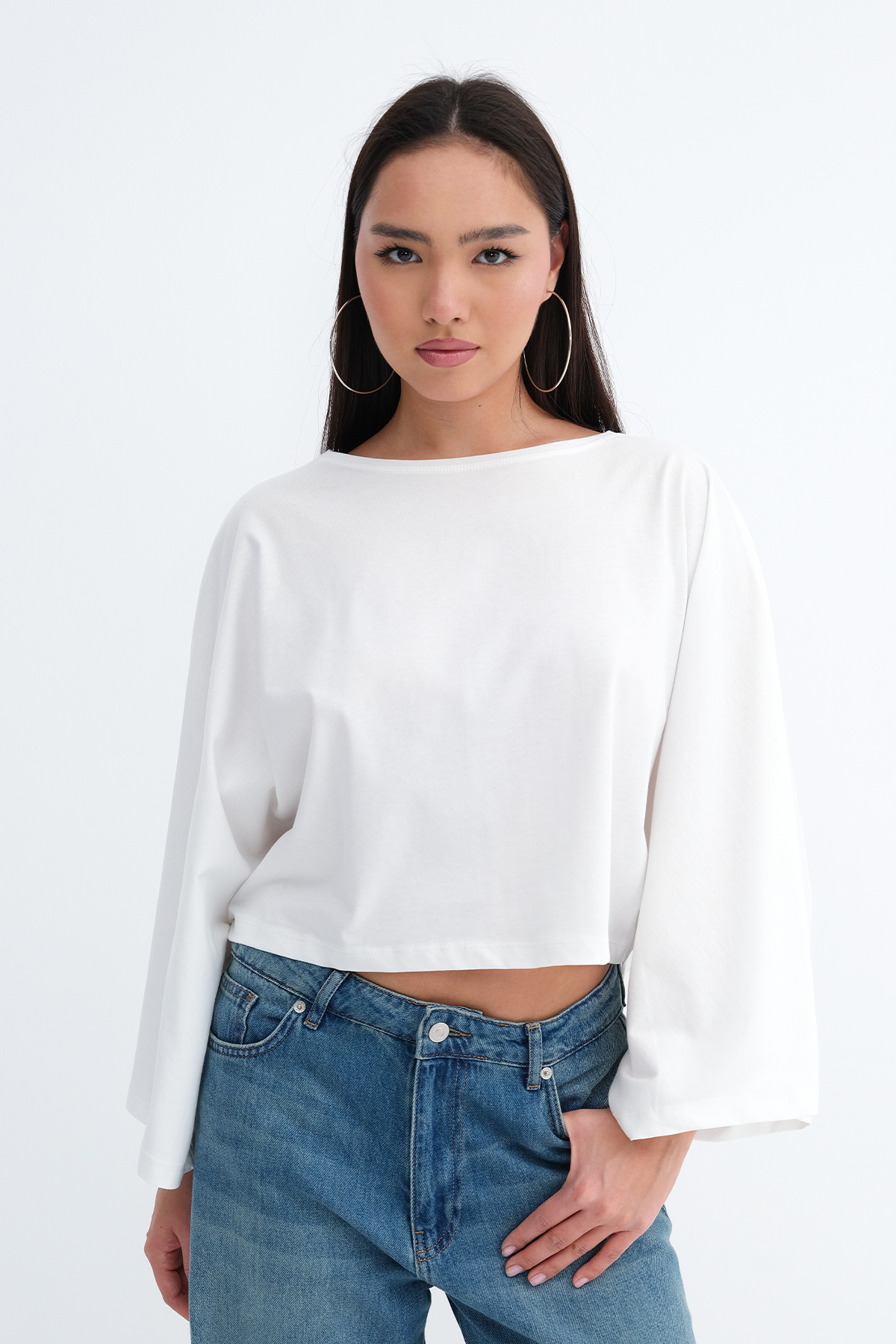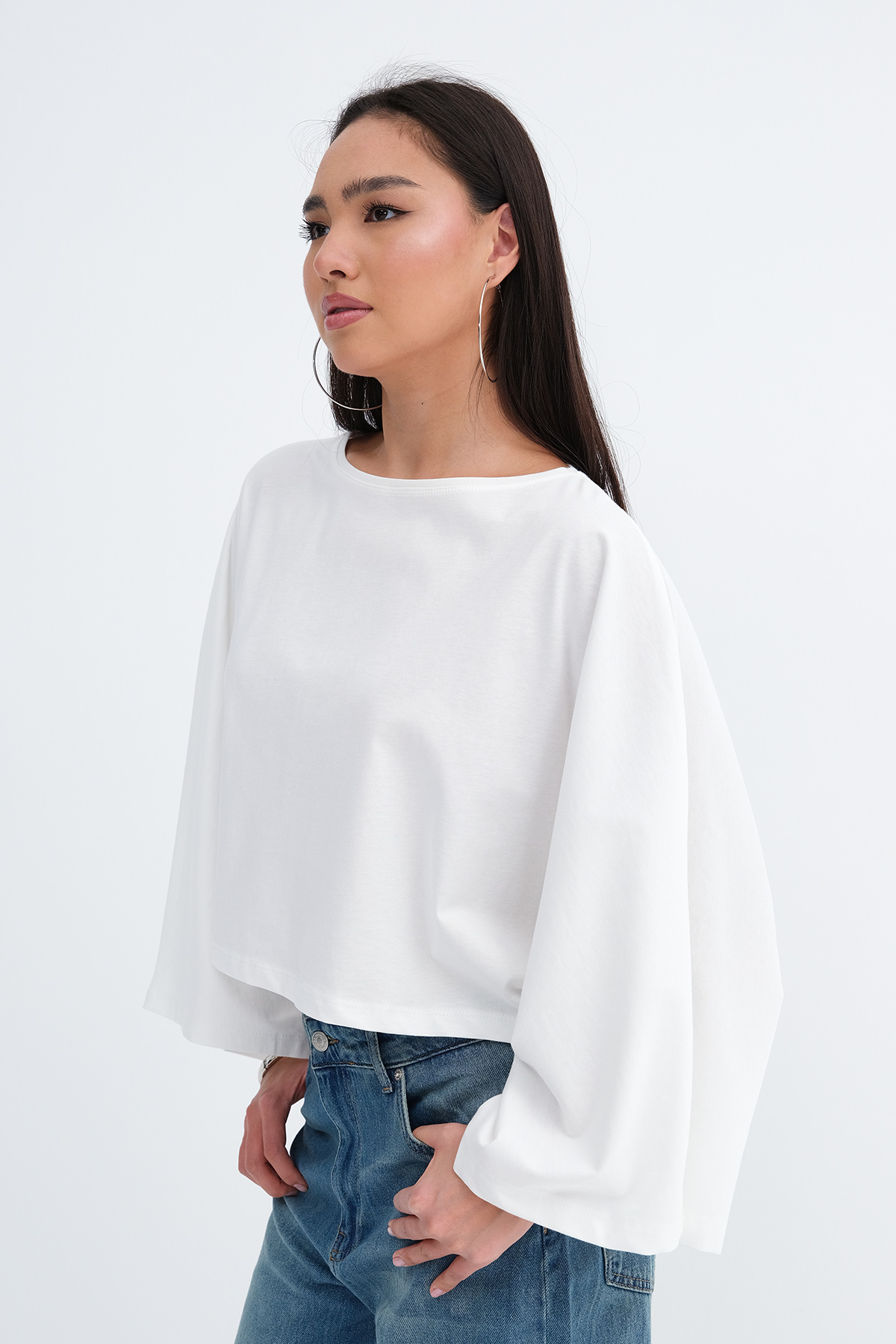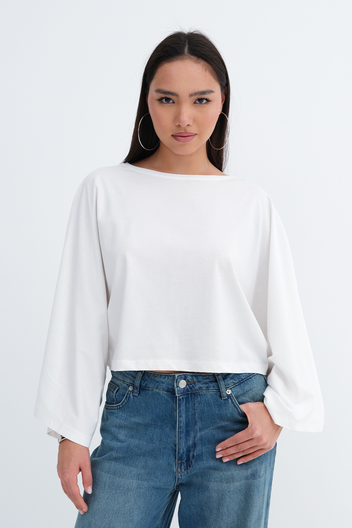 * Bisiklet yaka, uzun kollu, düşük omuz,