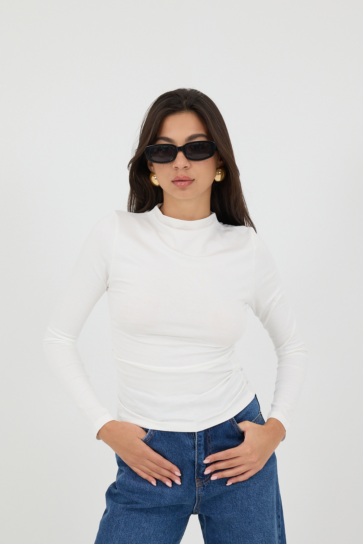 * Dik yaka, uzun kollu,* Düz renk, yanları büzgülü,* Vücudu saran bluz,* Ürün içeriği:%95 Viskon %5 Elastan* Manken üzerindeki ürün 36/S bedendir.* Numune Beden Ölçüleri: Boy:50 cm Göğüs:66 cm Kol Boyu:60 cm (1-3 cm arasında değişkenlik gösterebilir)* Ürün çekimlerinde renkler, ışık farklılığından dolayı değişkenlik gösterebilir.