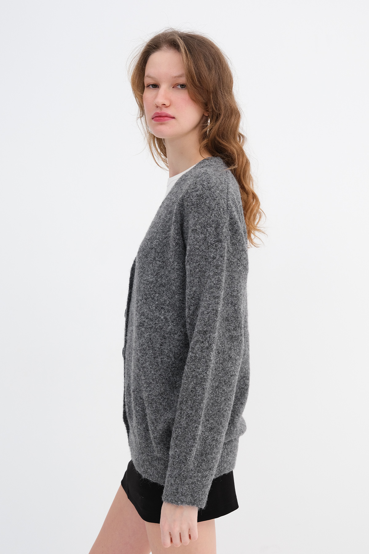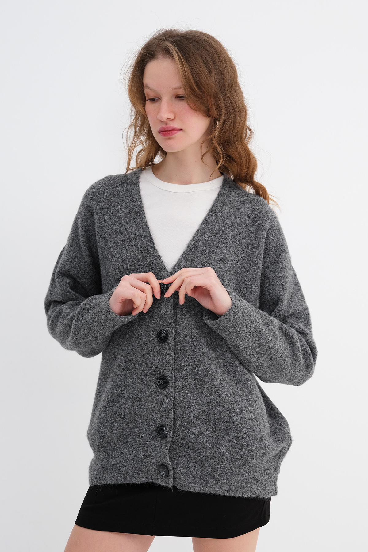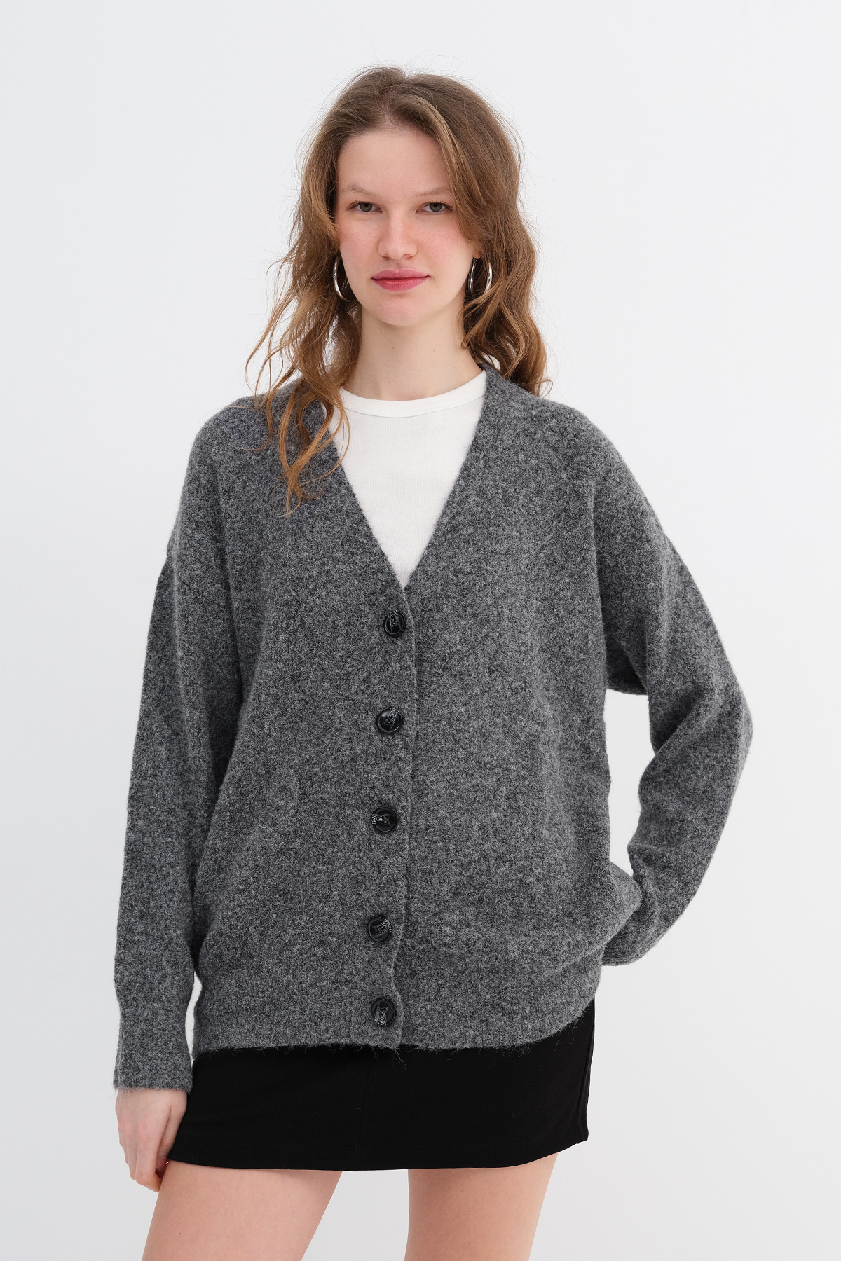 * Düz renk, rahat kalıp, düğmeli hırka,