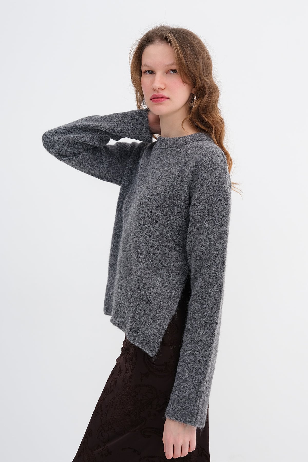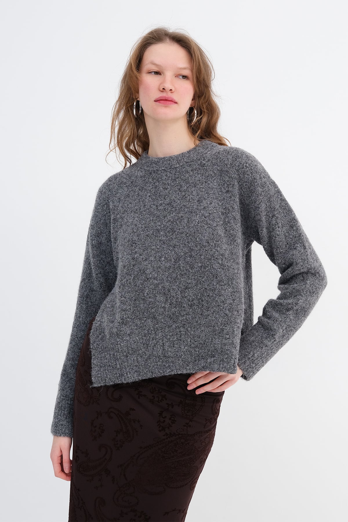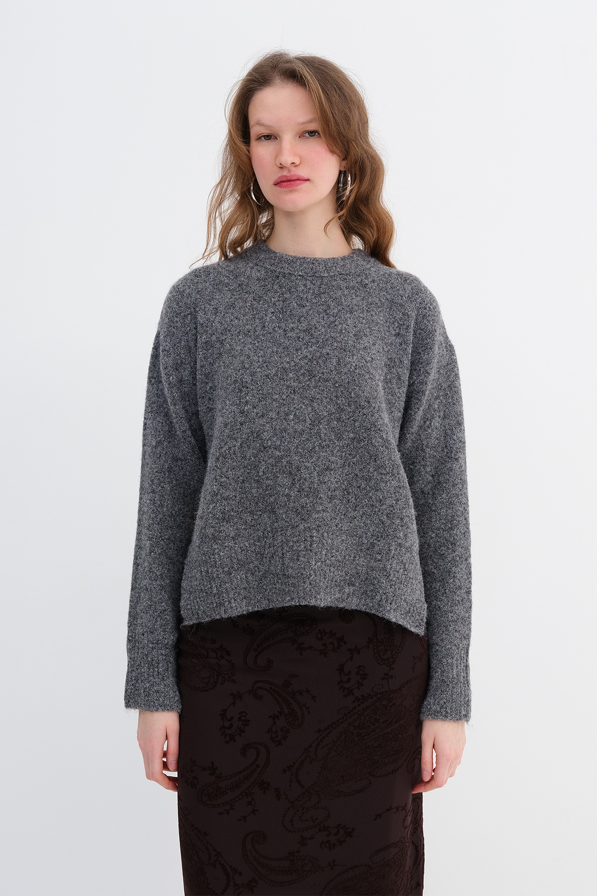 * Bisiklet yaka, uzun kollu, düşük omuz,