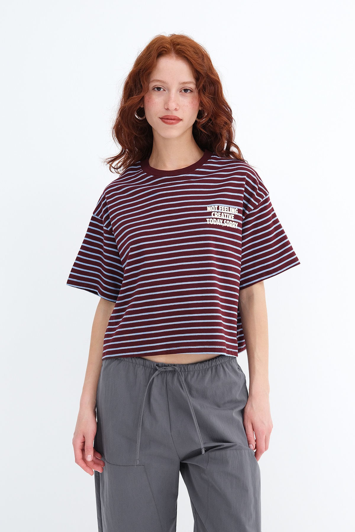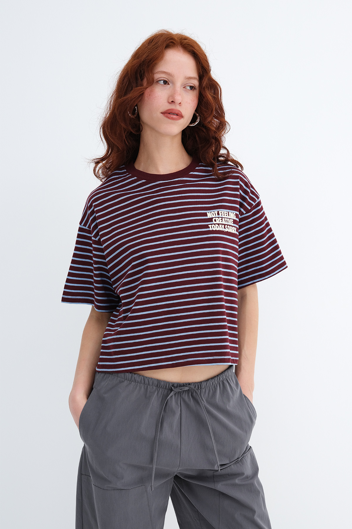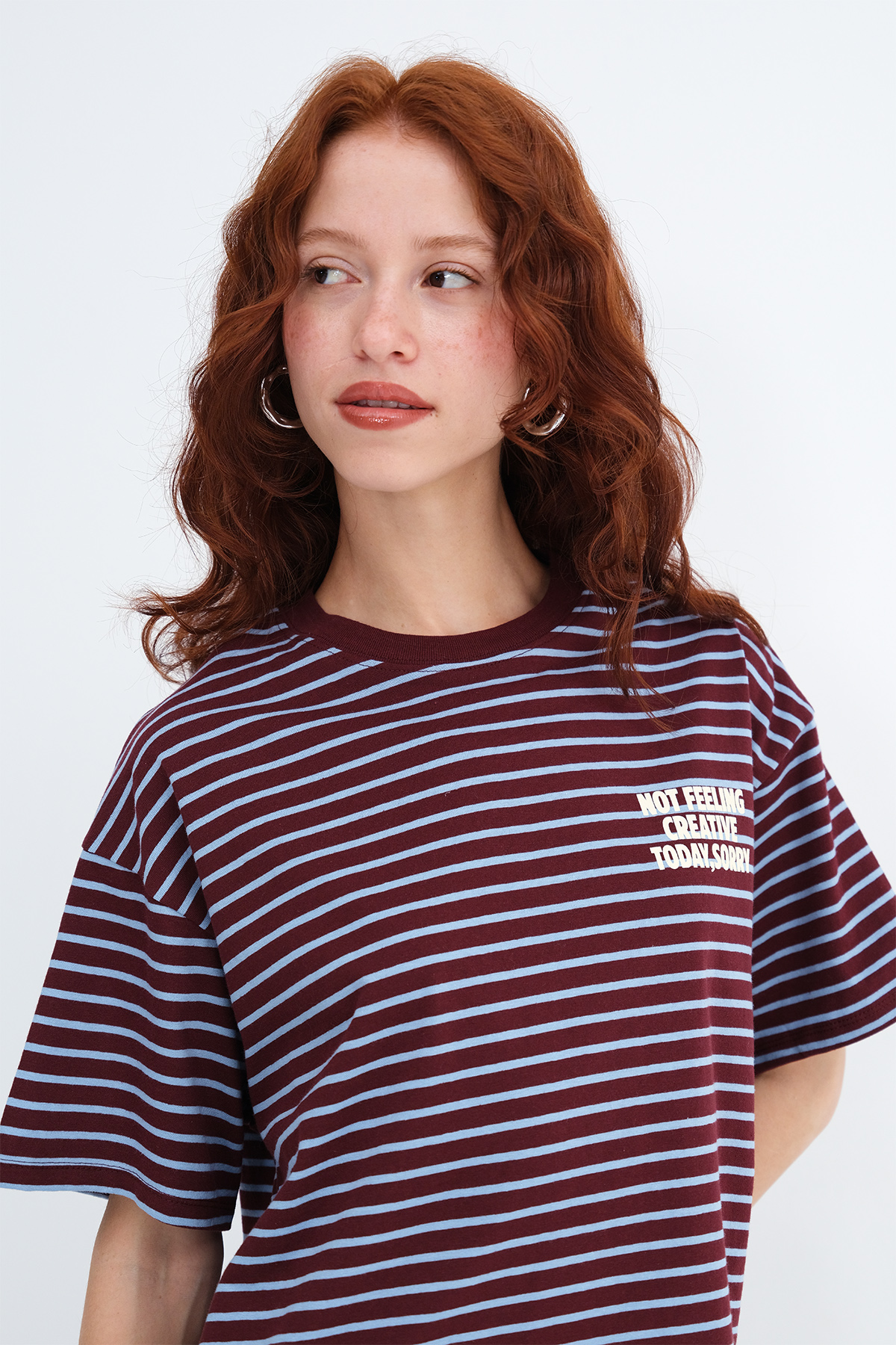 * Çizgili, baskılı, rahat kalıp t-shirt,