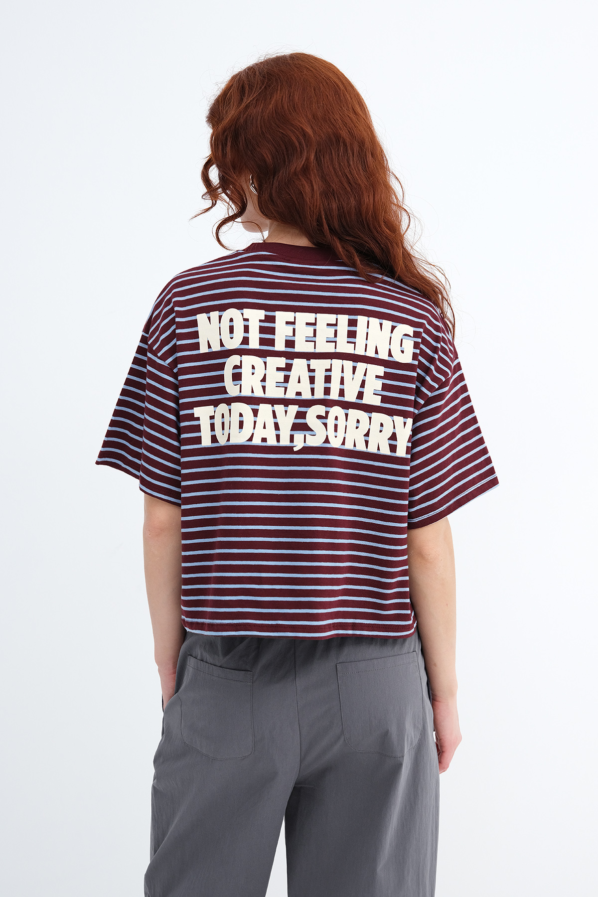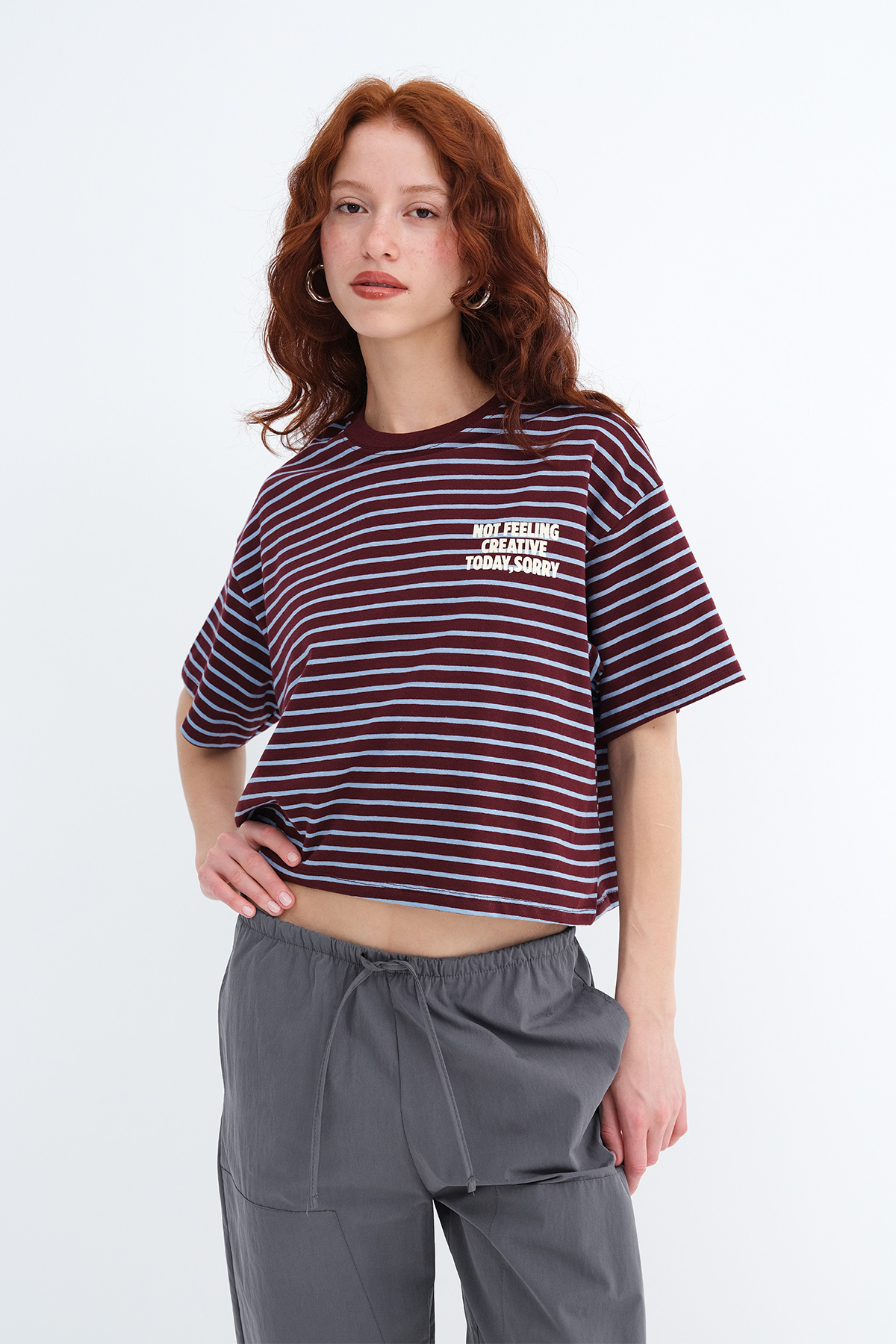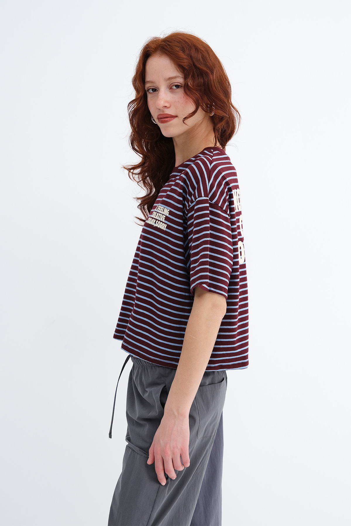 * Çizgili, baskılı, rahat kalıp t-shirt,