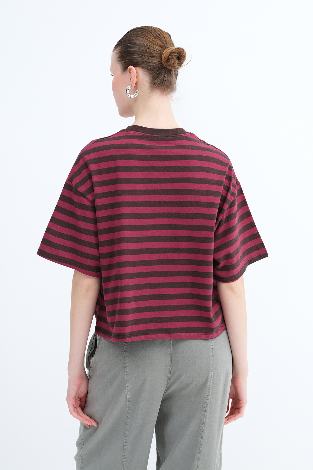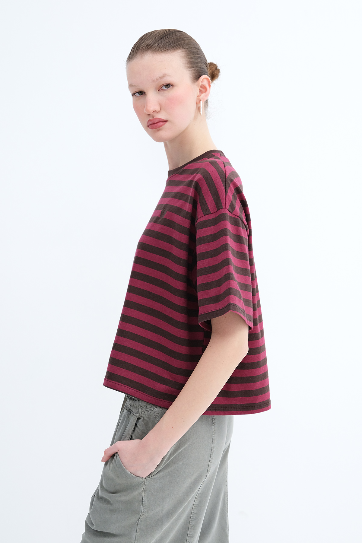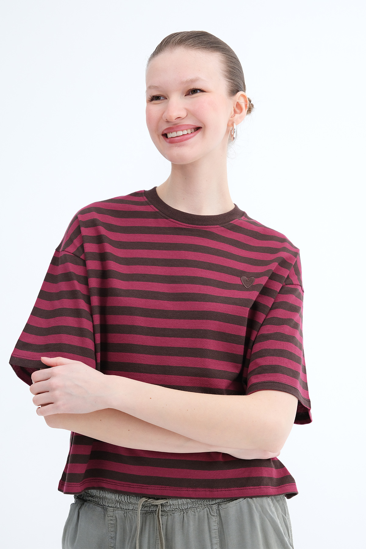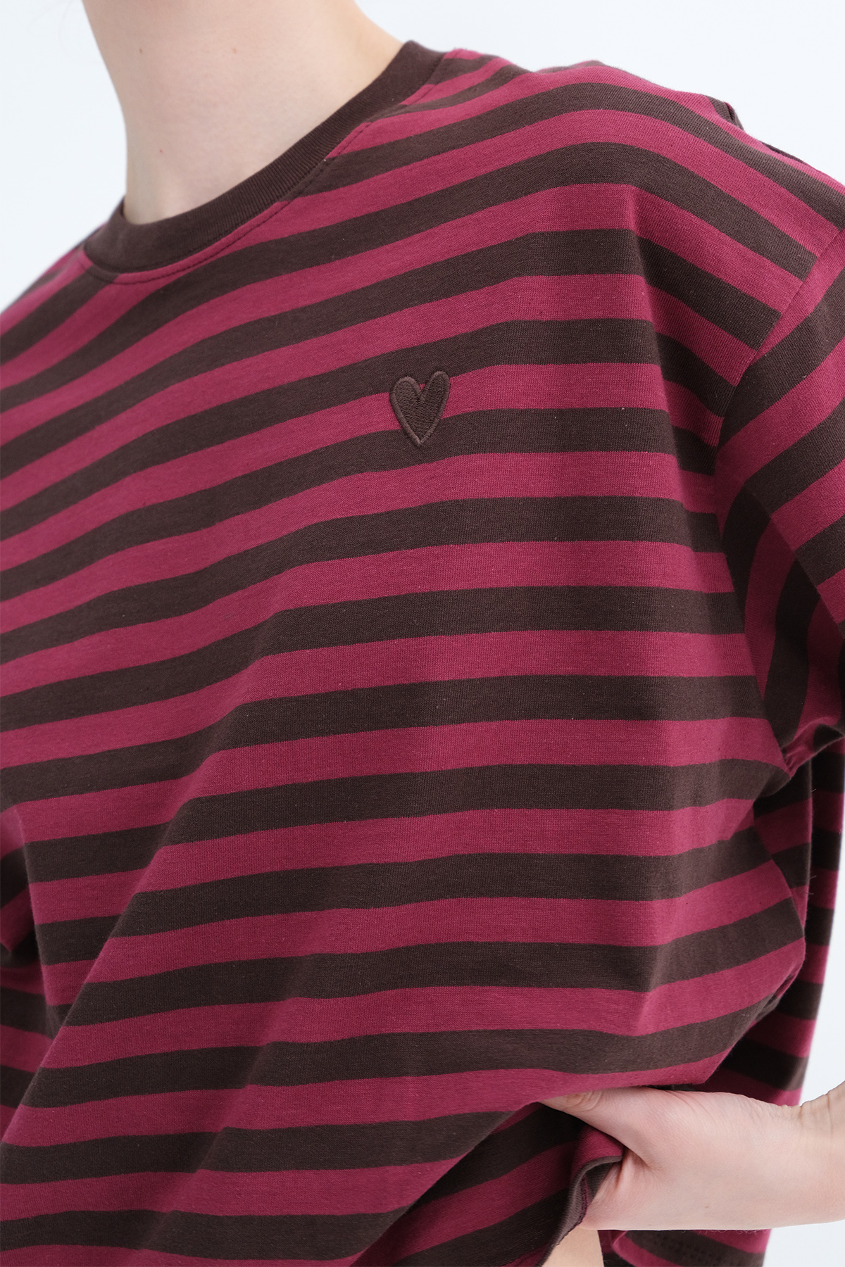 * Çizgili, kalp işlemeli t-shirt,