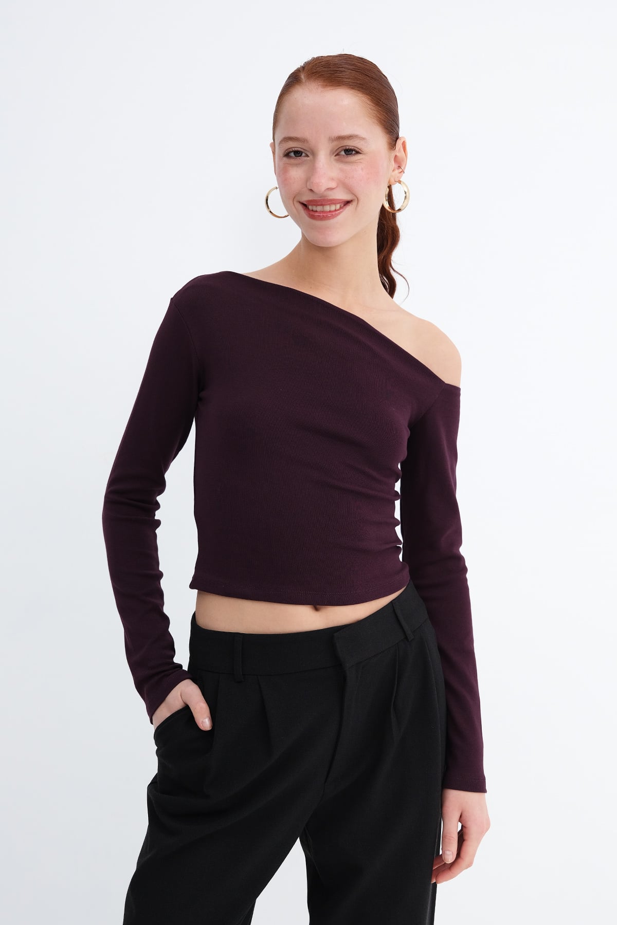 * Kayık yaka, uzun kollu,