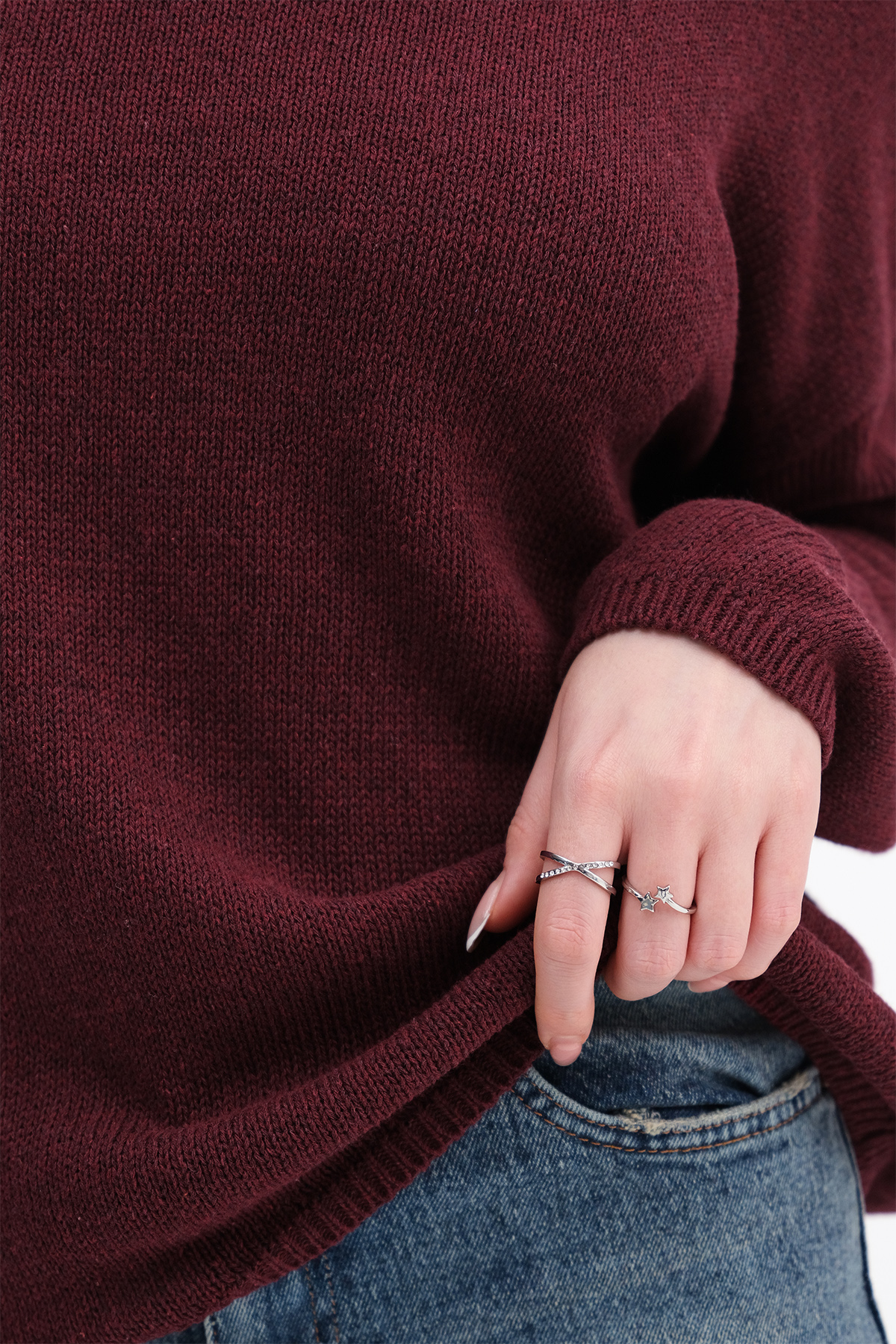 * Bisiklet yaka, uzun kollu, düz renk, rahat kalıp,