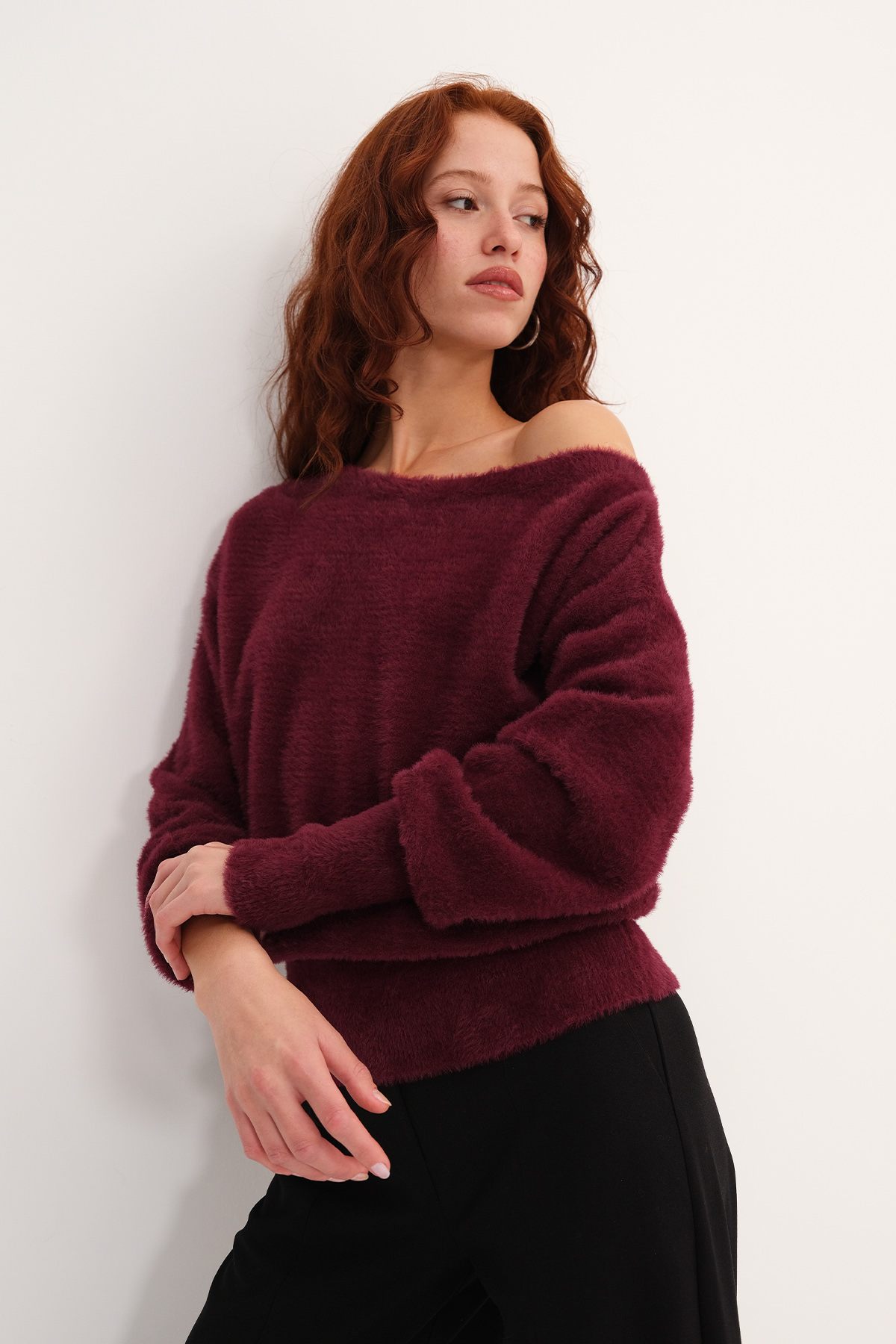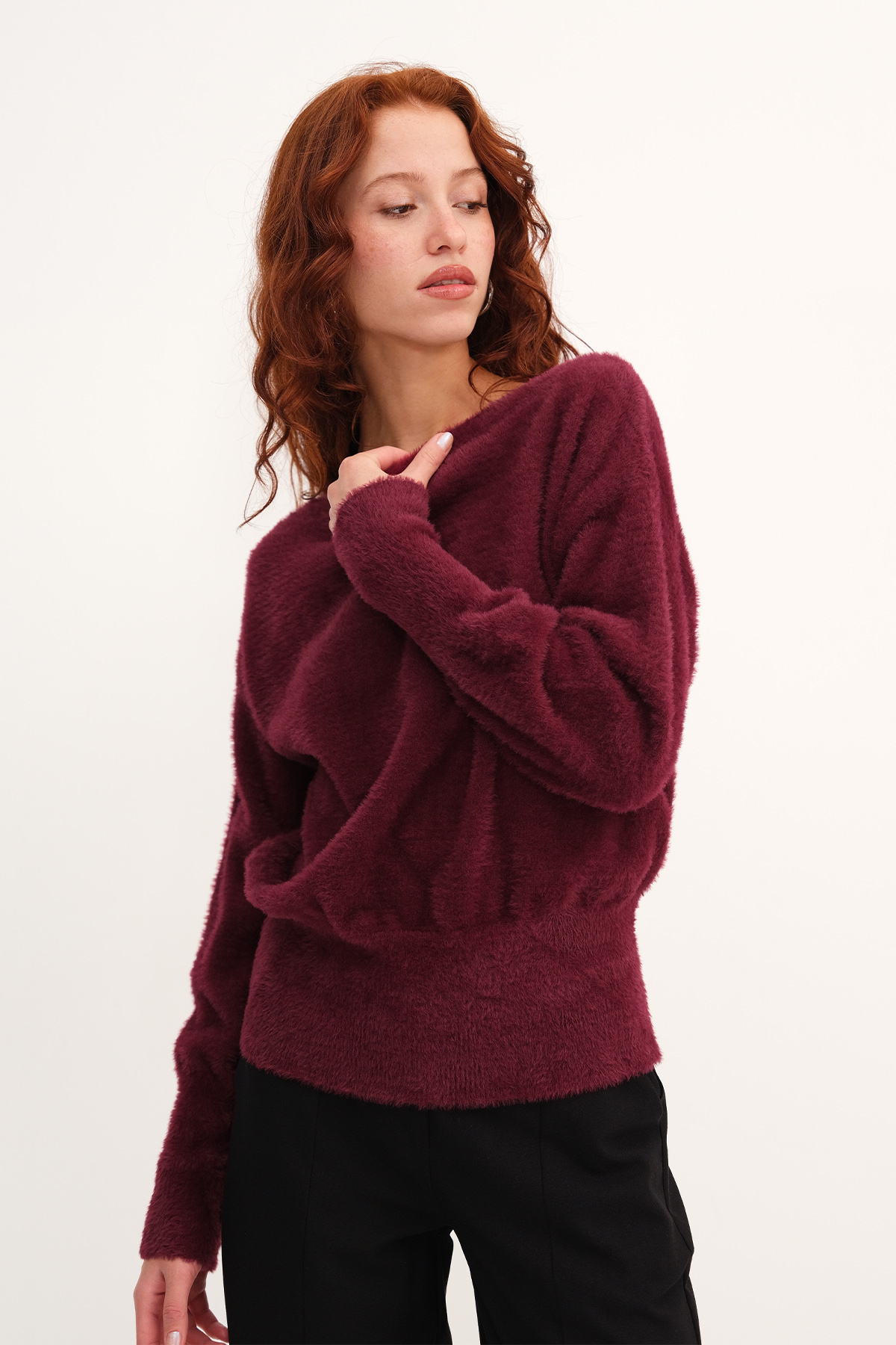 * Kayık yaka, uzun kollu,* Yumuşak dokulu, düz renk,* Manşetleri ve etek ucu lastik örgülü,* Basic kazak,* Ürün içeriği: %100 Naylon,* Manken üzerindeki ürün standart bedendir.* Numune Beden Ölçüleri: Boy: 60 cm Göğüs: 120 cm Kol Boyu: 52 cm (1-3 cm arasında değişiklik gösterebilir)* Ürün çekimlerinde renkler, ışık farklılığından dolayı değişkenlik gösterebilir.