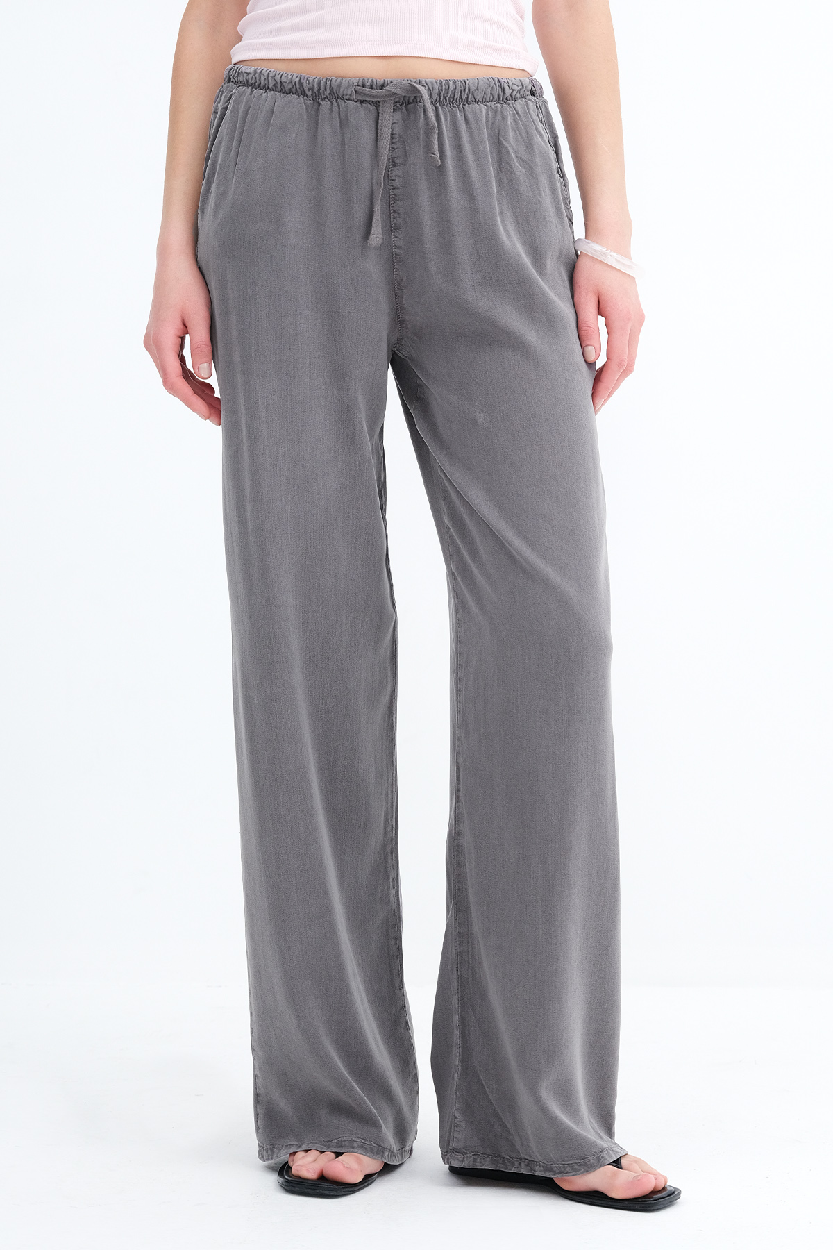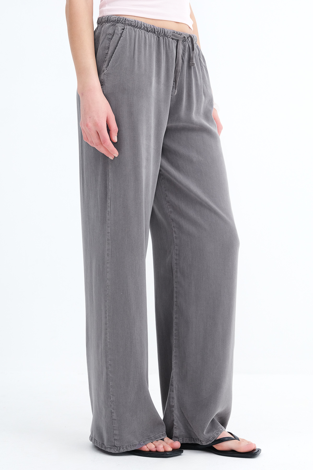 * İki cepli, rahat kalıp, wide leg pantolon,