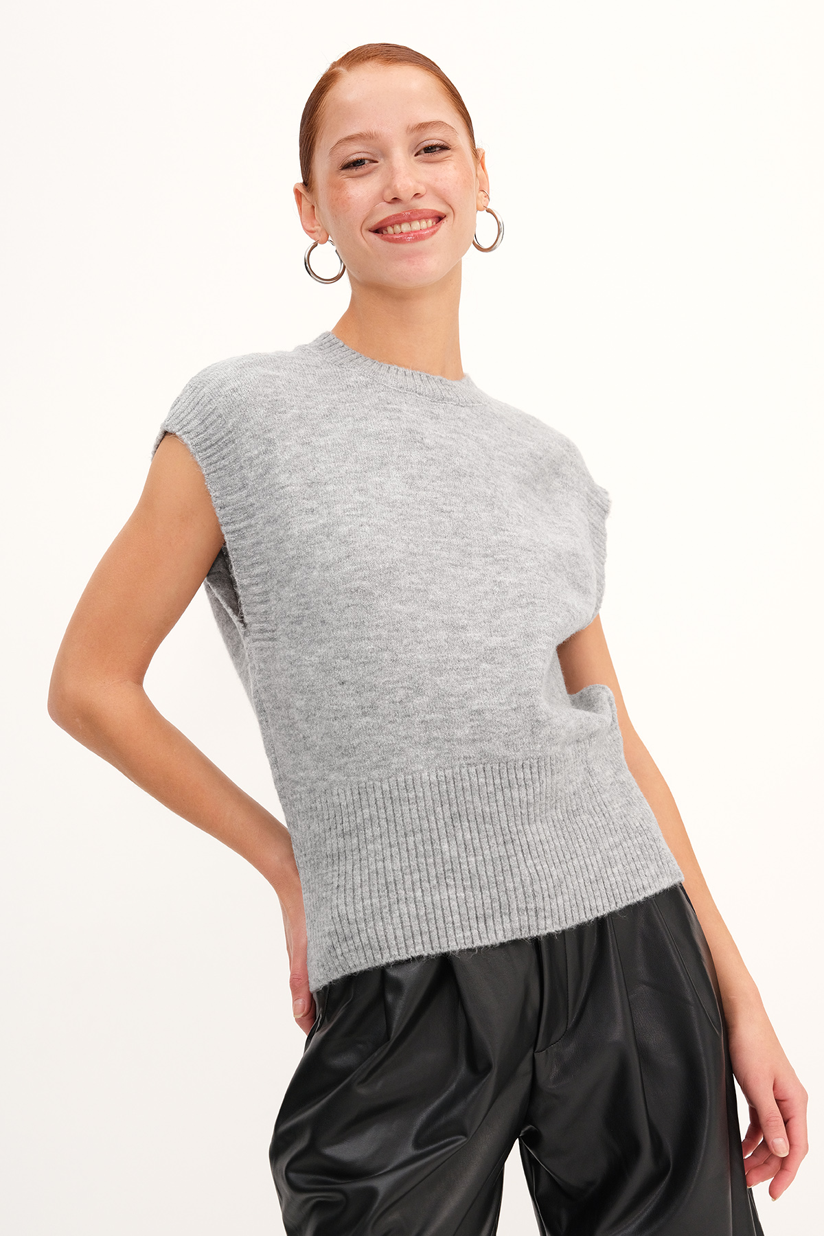 * Bisiklet yaka, kolsuz,* Düz renk, süveter,* Ürün içeriği: %49 Akrilik %32 Polyester %16 Naylon %3 Elastan* Manken üzerindeki ürün standart bedendir.* Numune beden ölçüleri: Boy: 54 cm Göğüs: 88 cm (1-3 cm değişiklik gösterebilir)* Ürün çekimlerinde renkler, ışık farklılığından dolayı değişkenlik gösterebilir.