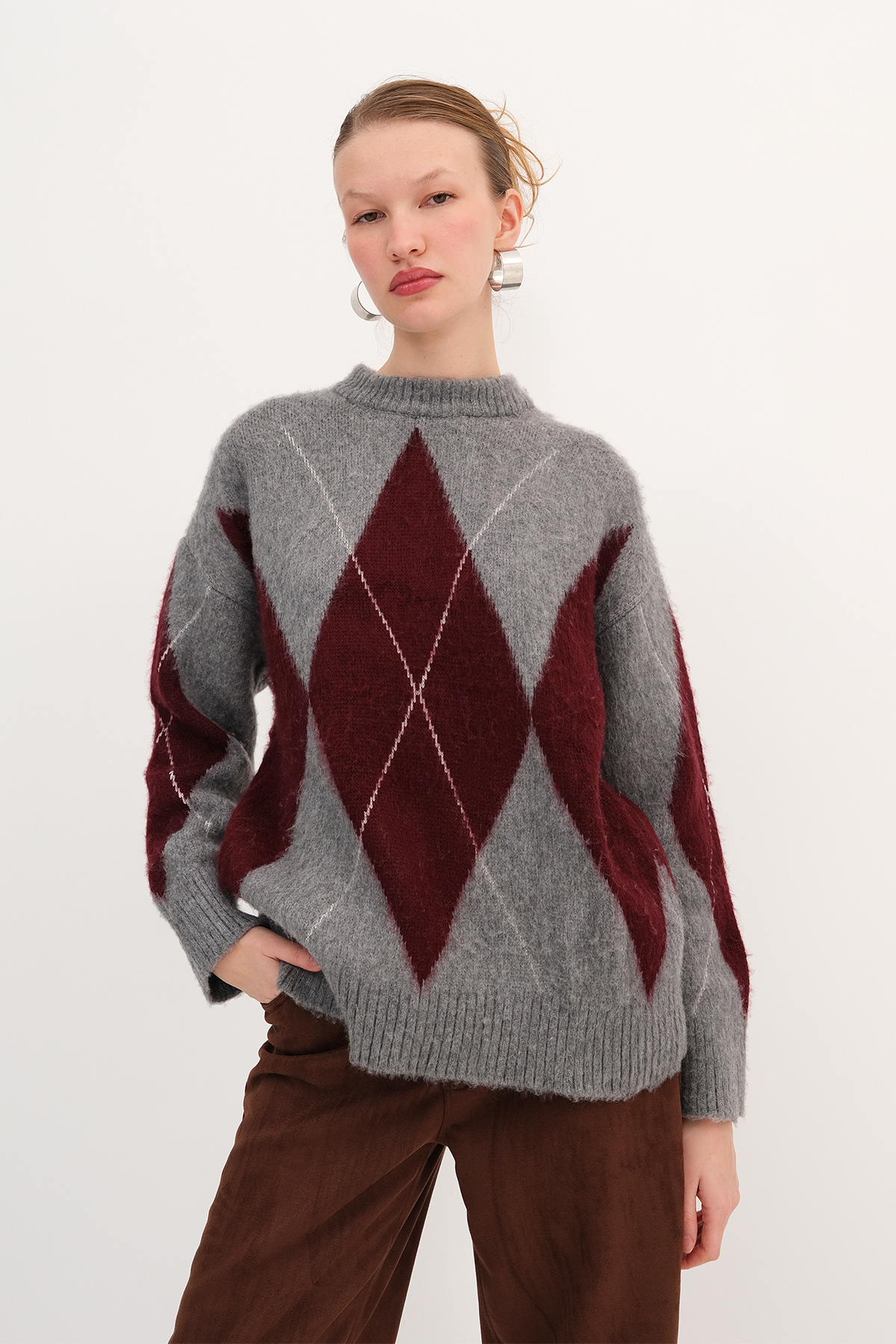 * Bisiklet yaka, uzun kollu,* Baklava desenli,* Triko kazak,* Ürün içeriği:%80 Akrilik %13 Polyester %7 Pbt,* Manken üzerindeki ürün standart bedendir.* Numune Beden Ölçüleri: Boy: 66 cm Göğüs: 110 cm Kol Boyu: 48 cm (1-3 cm arasında değişiklik gösterebilir)* Ürün çekimlerinde renkler, ışık farklılığından dolayı değişkenlik gösterebilir.