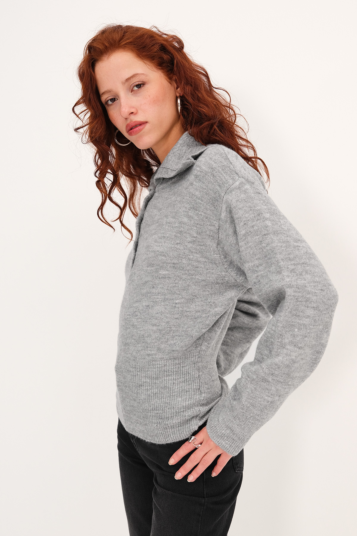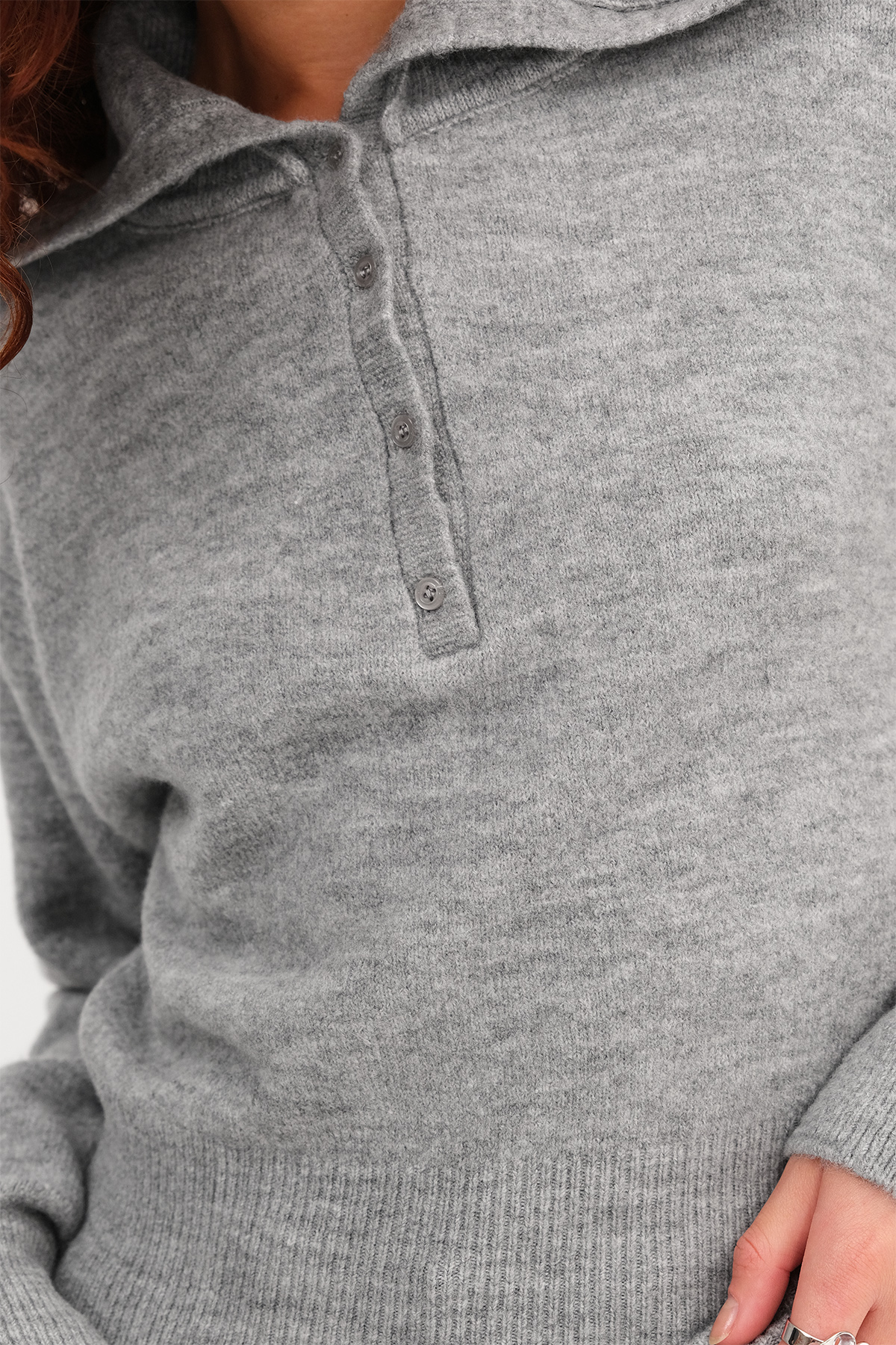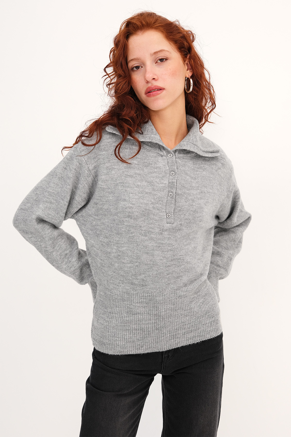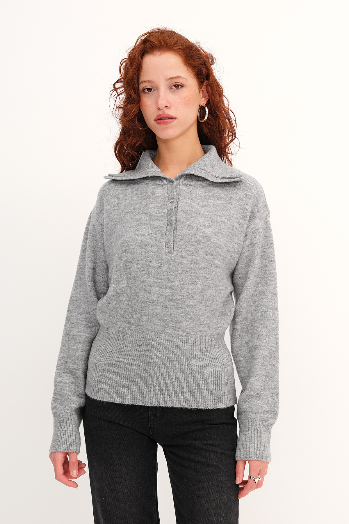 * Polo yaka, yakası düğmeli,* Manşetleri ve etek ucu lastik örgülü,* Düz renk, triko kazak,* Ürün içeriği:%49 Akrilik %32 Polyester %16 Naylon %3 Elastan,* Manken üzerindeki ürün standart bedendir.* Numune Beden Ölçüleri: Boy: 57 cm Göğüs: 90 cm Kol Boyu: 55 cm (1-3 cm arasında değişiklik gösterebilir)* Ürün çekimlerinde renkler, ışık farklılığından dolayı değişkenlik gösterebilir.