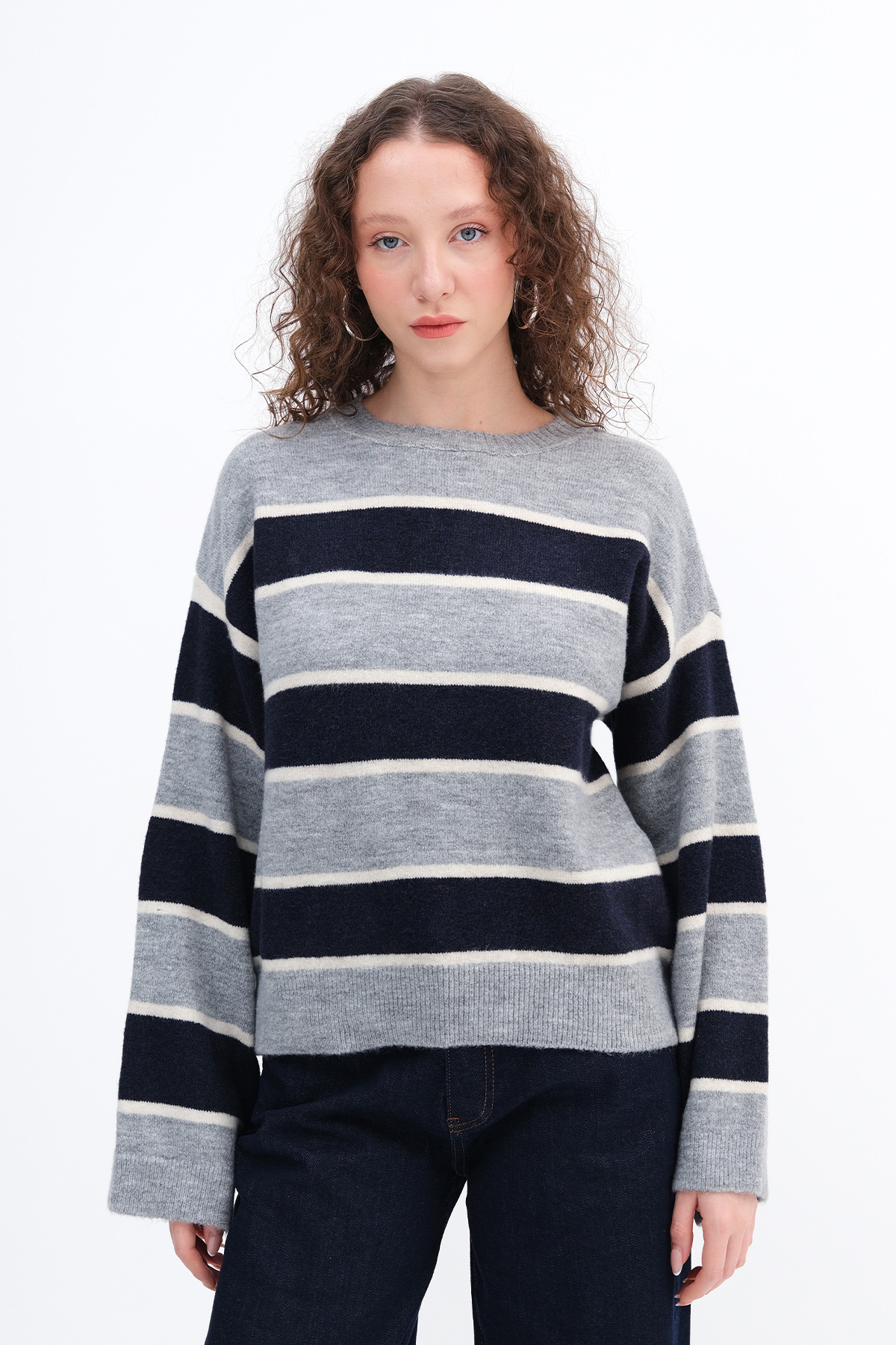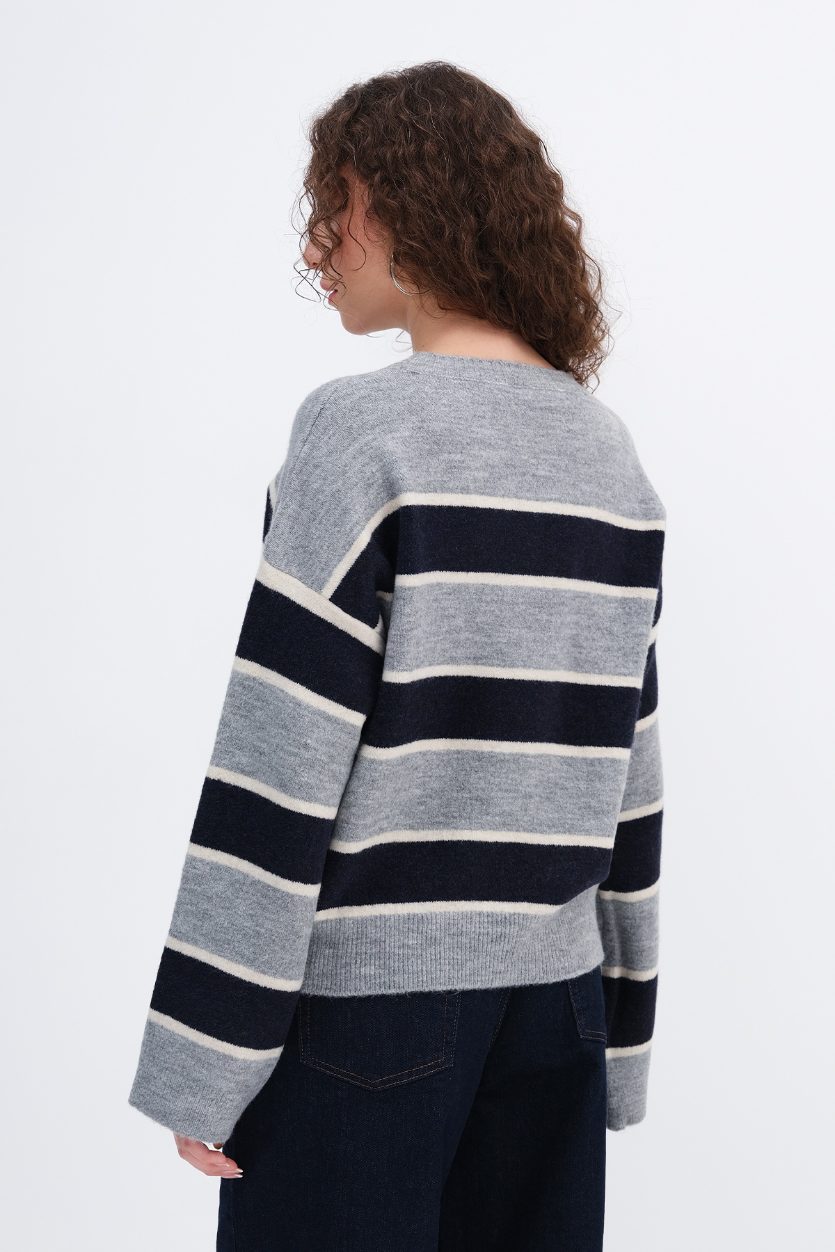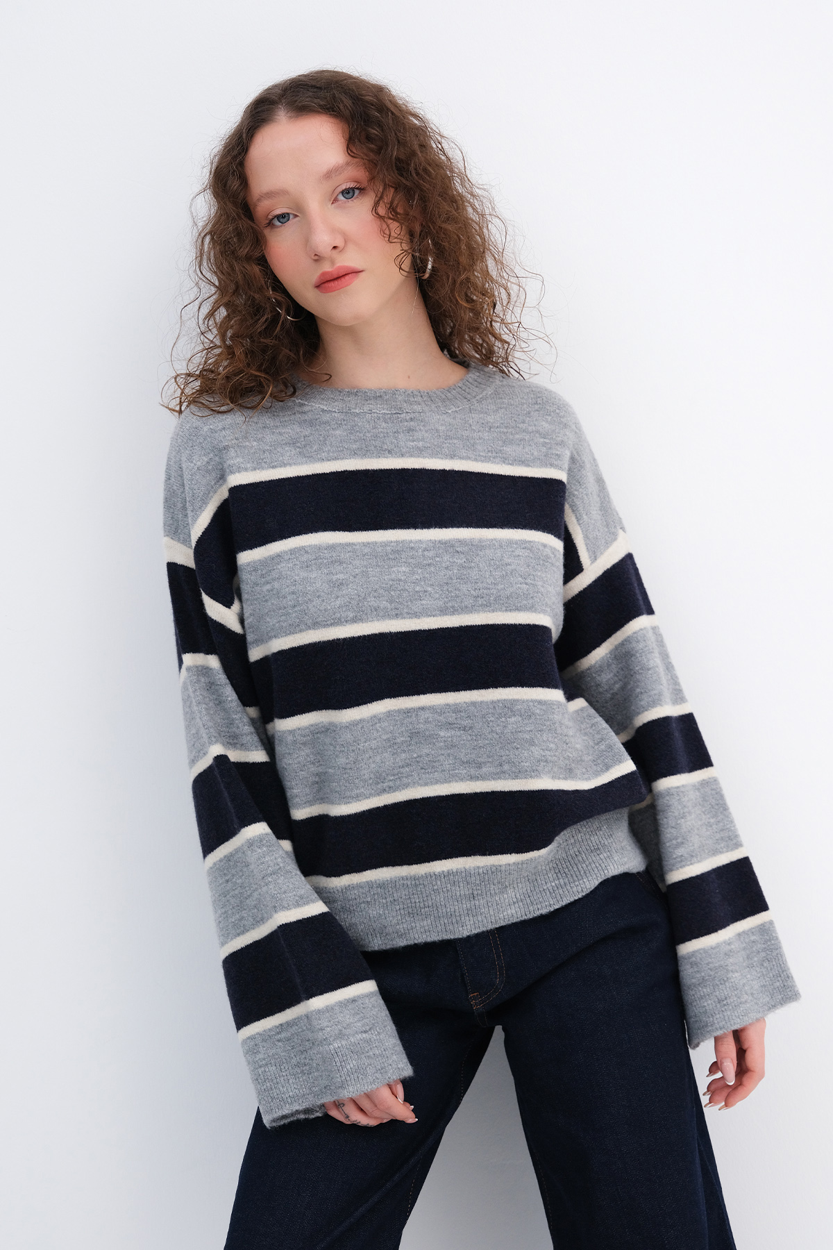 * Çizgili, rahat kalıp triko,
