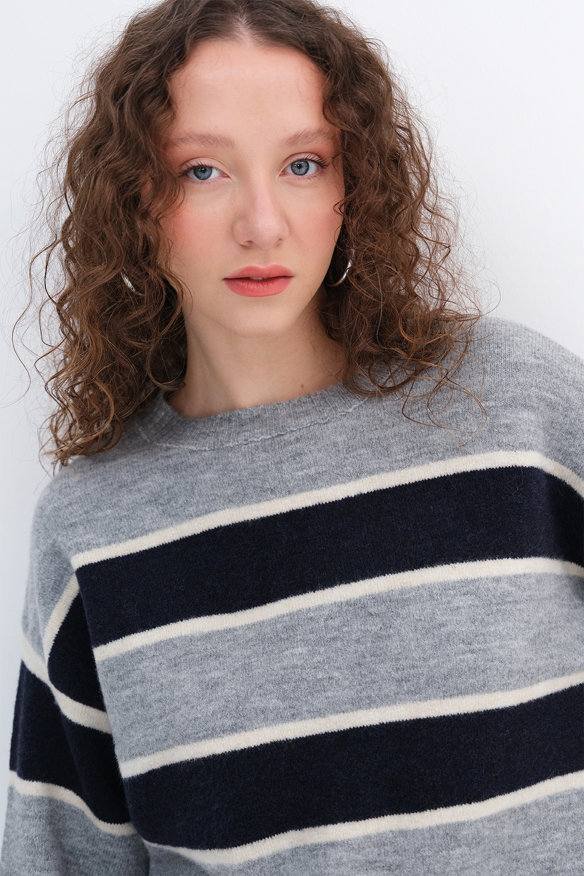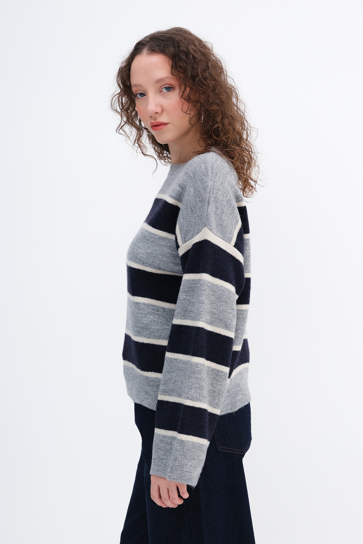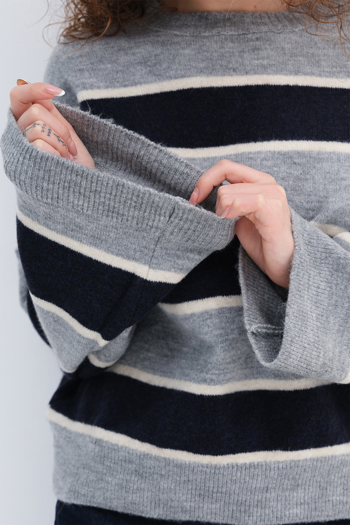 * Çizgili, rahat kalıp triko,