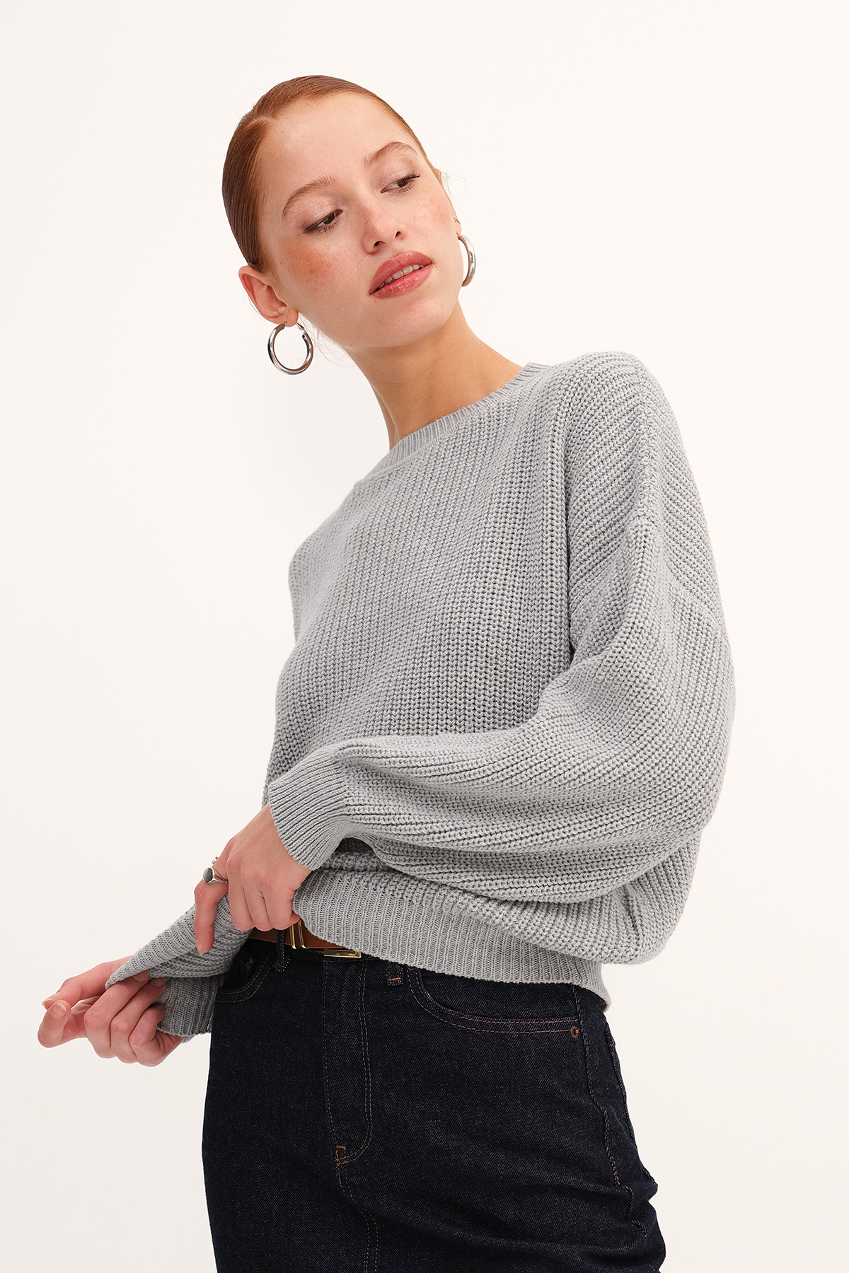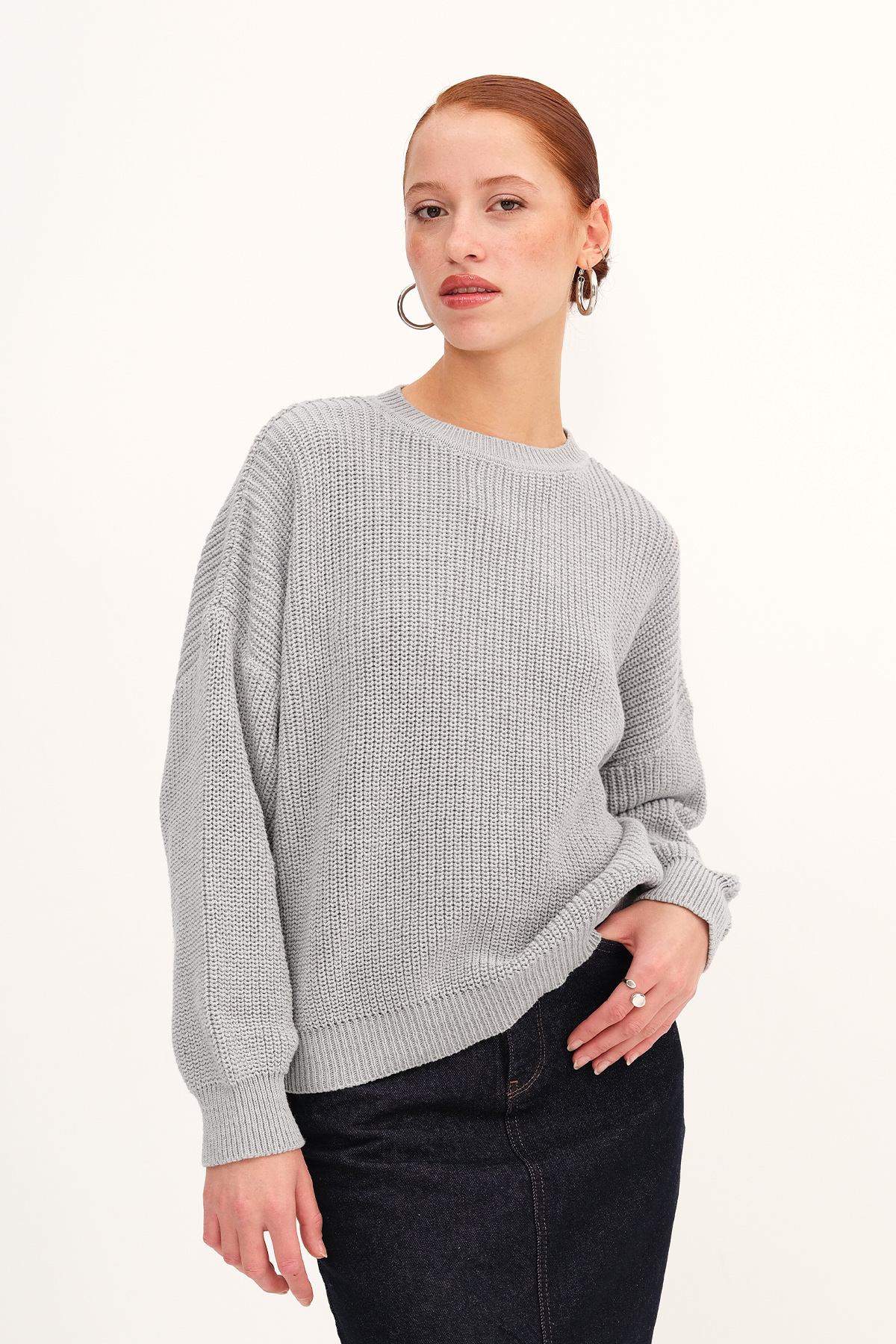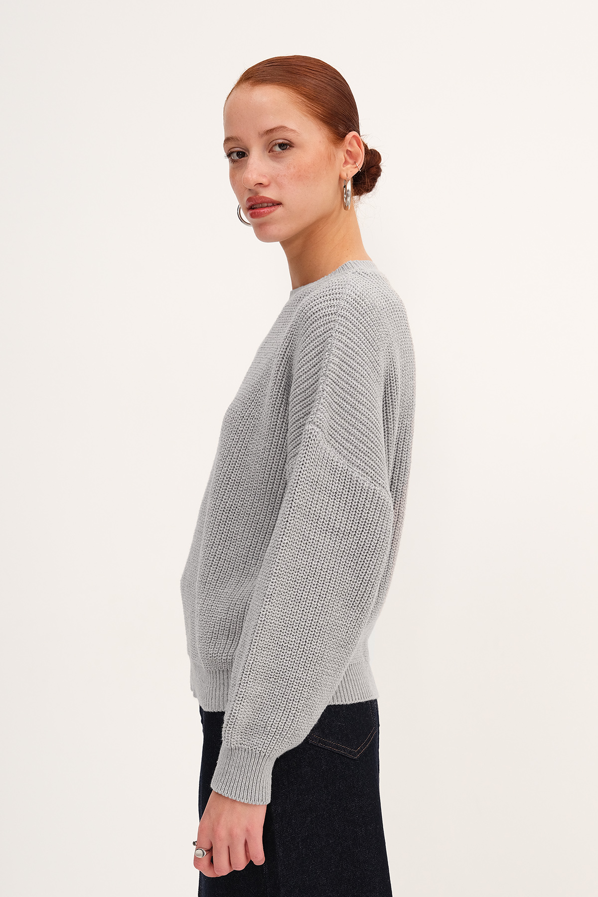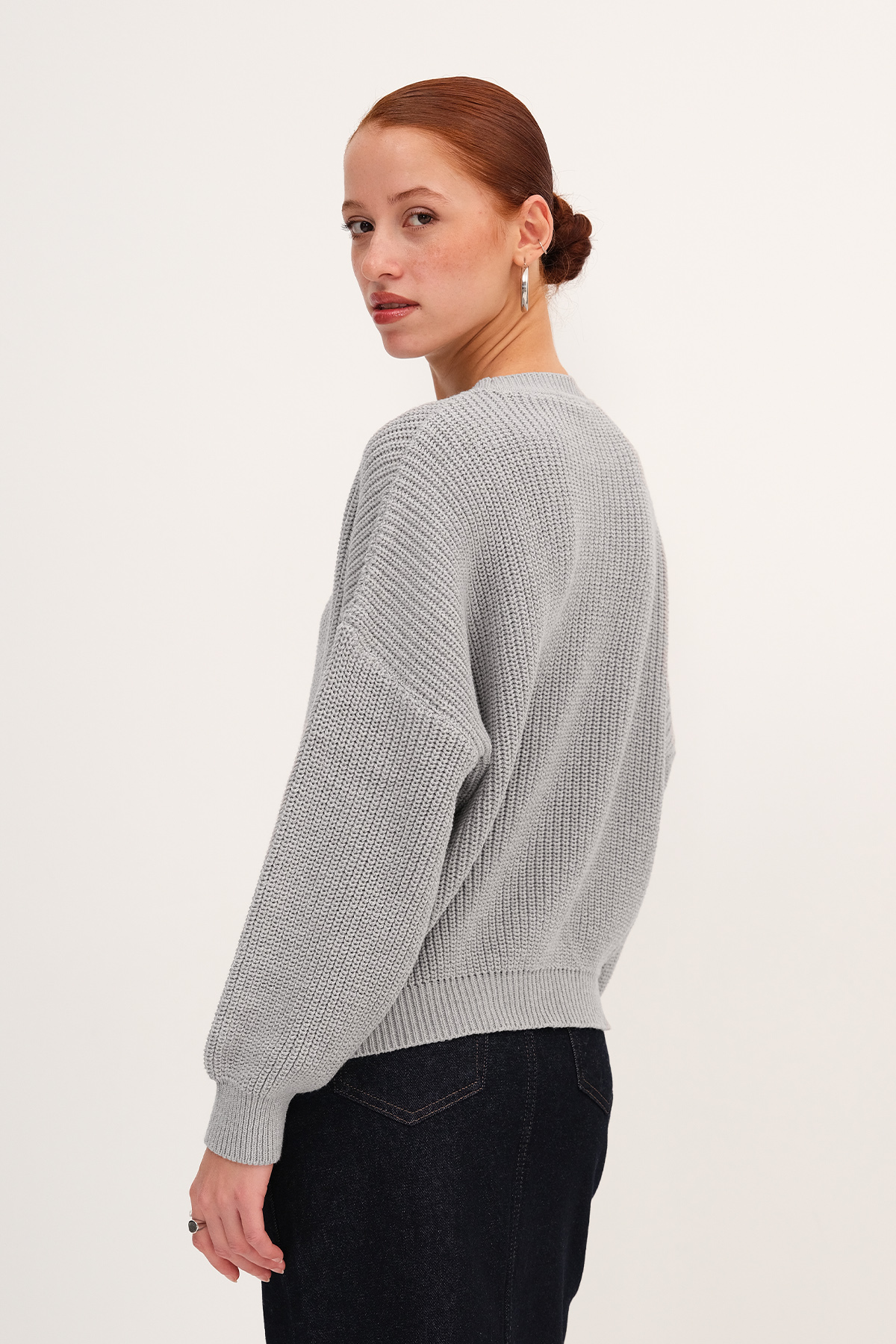 * Bisiklet yaka, uzun kollu,* Düşük omuz, düz renk,* Lastik örgülü, triko kazak,* Ürün içeriği: %60 Pamuk %40 Polyester* Manken üzerindeki ürün standart bedendir.* Numune beden ölçüleri: Boy: 55 cm Göğüs: 120 cm Kol boyu: