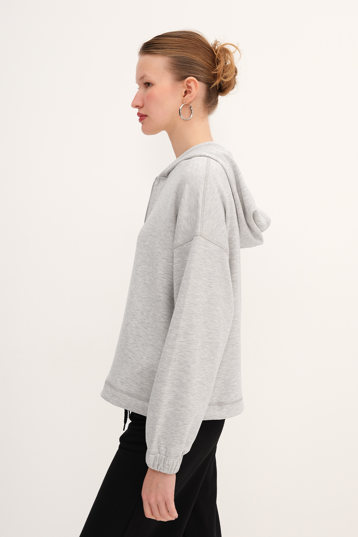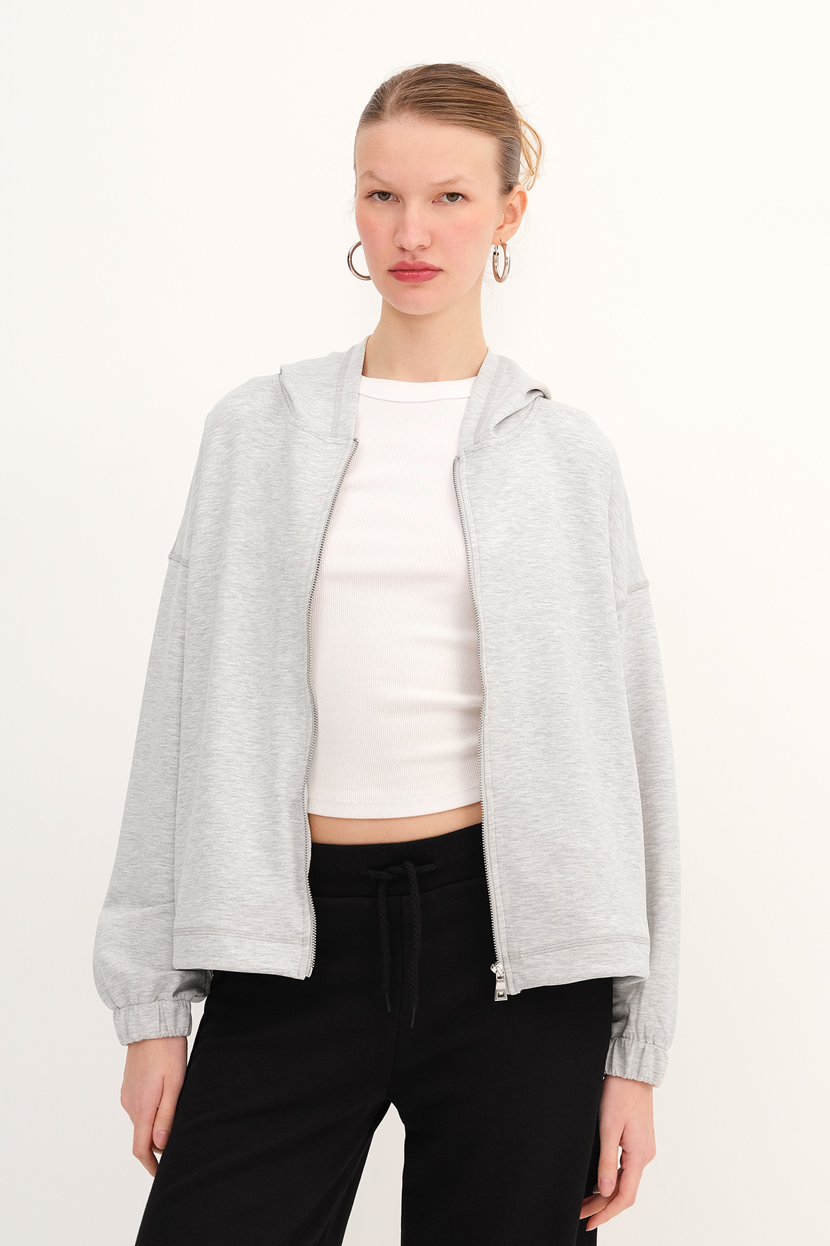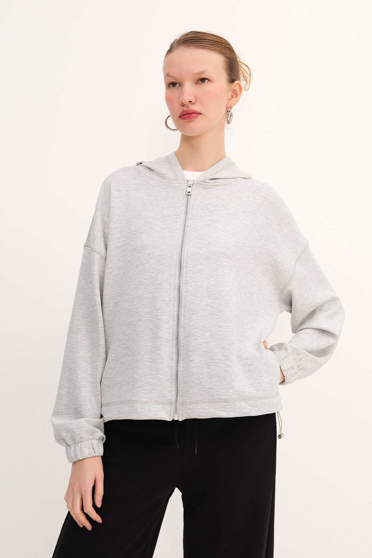 * Kapüşonlu, uzun kollu,* Düşük omuz, fermuarlı,* Etek ucu ayarlanabilir lastikli,* Manşetleri lastikli,* Düz renk, cepli, hırka,* Ürün içeriği: %95 Pamuk %5 Elastan* Manken üzerindeki ürün XS/S bedendir.* Numune beden ölçüleri: Boy: 58 cm Göğüs: 120 cm Kol boyu: 47 cm (1-3 cm değişiklik gösterebilir)* Ürün çekimlerinde renkler, ışık farklılığından dolayı değişkenlik gösterebilir.