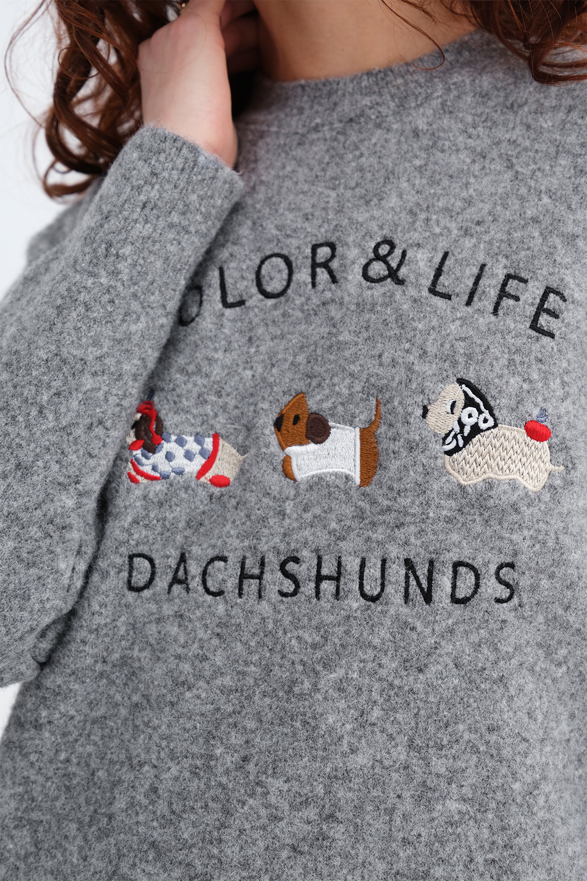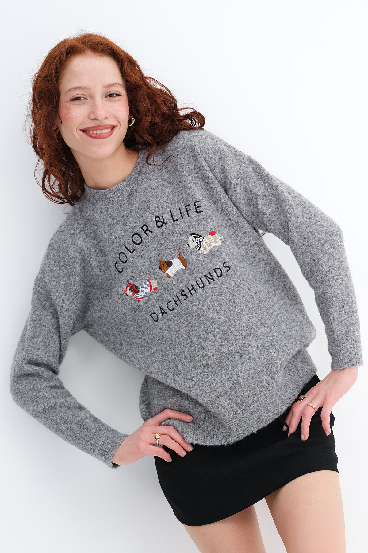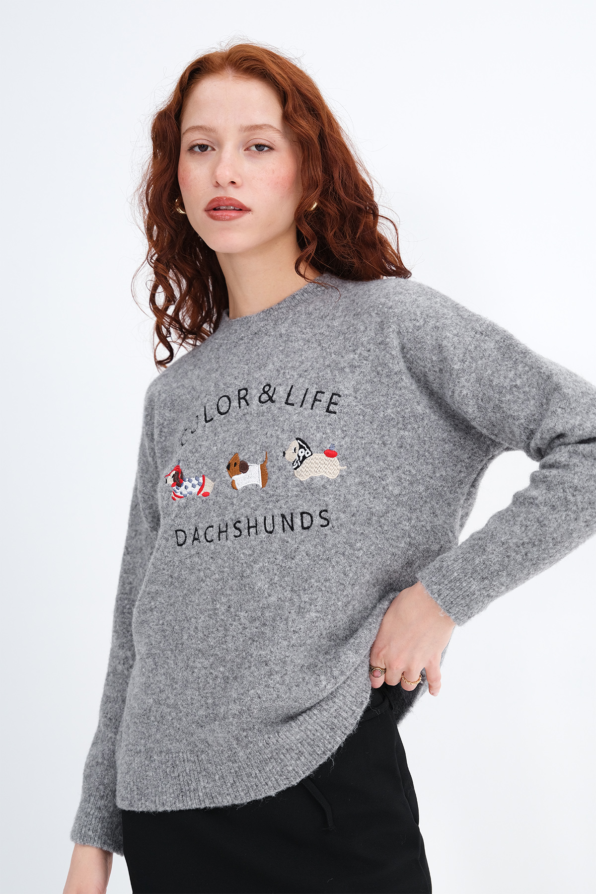 * Köpek işlemeli, yumuşak dokulu, triko kazak,