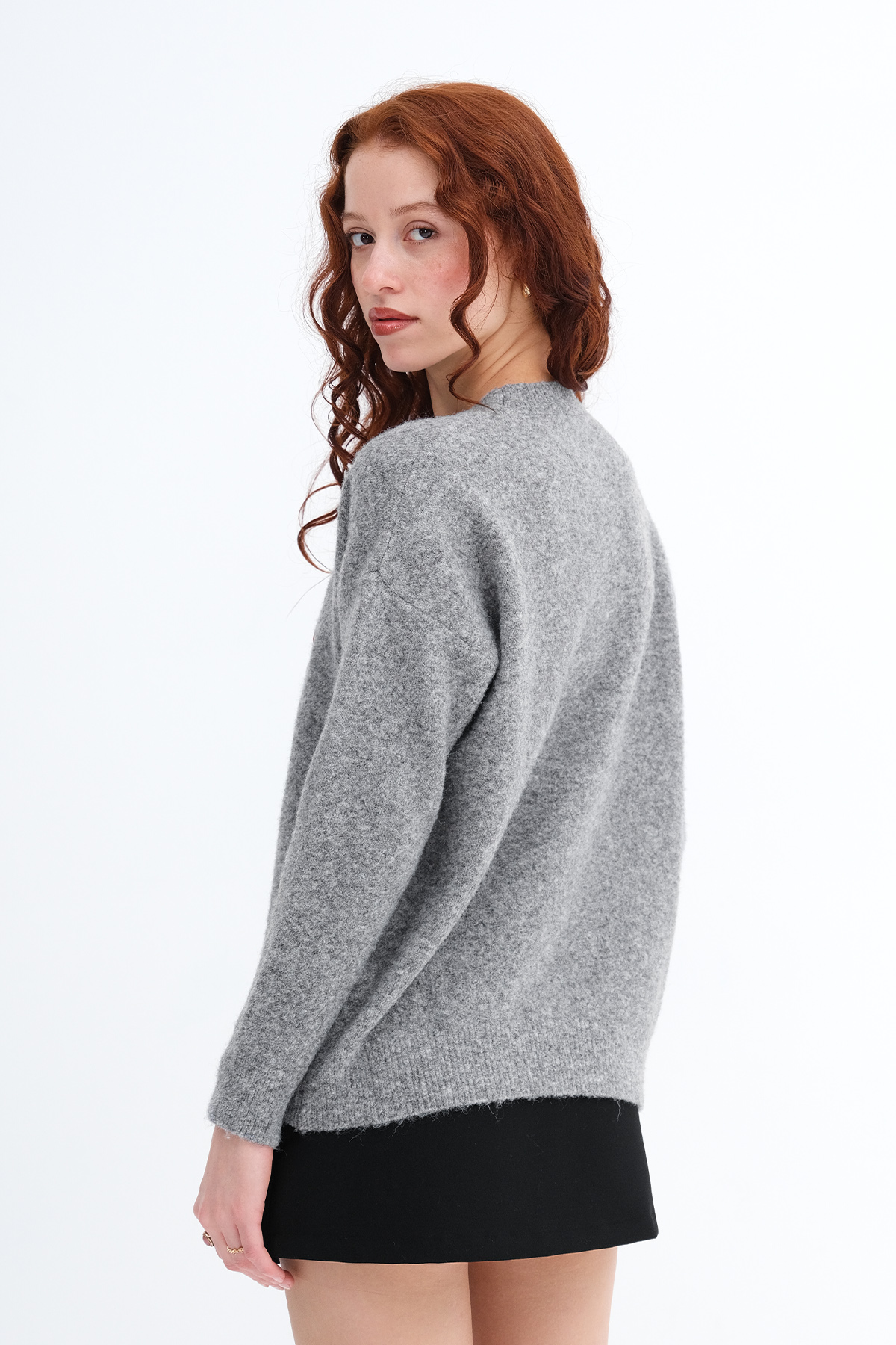 * Bisiklet yaka, uzun kollu, düşük omuz,