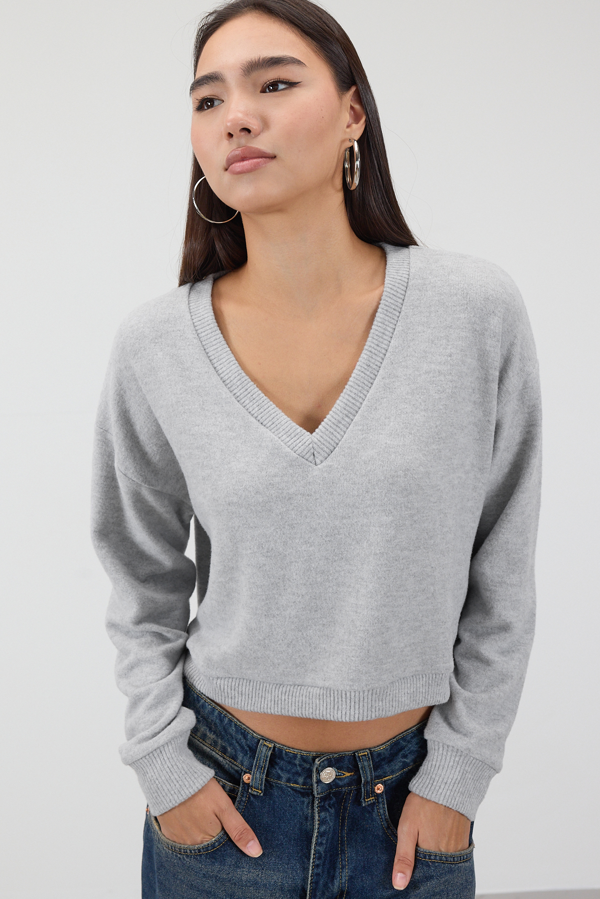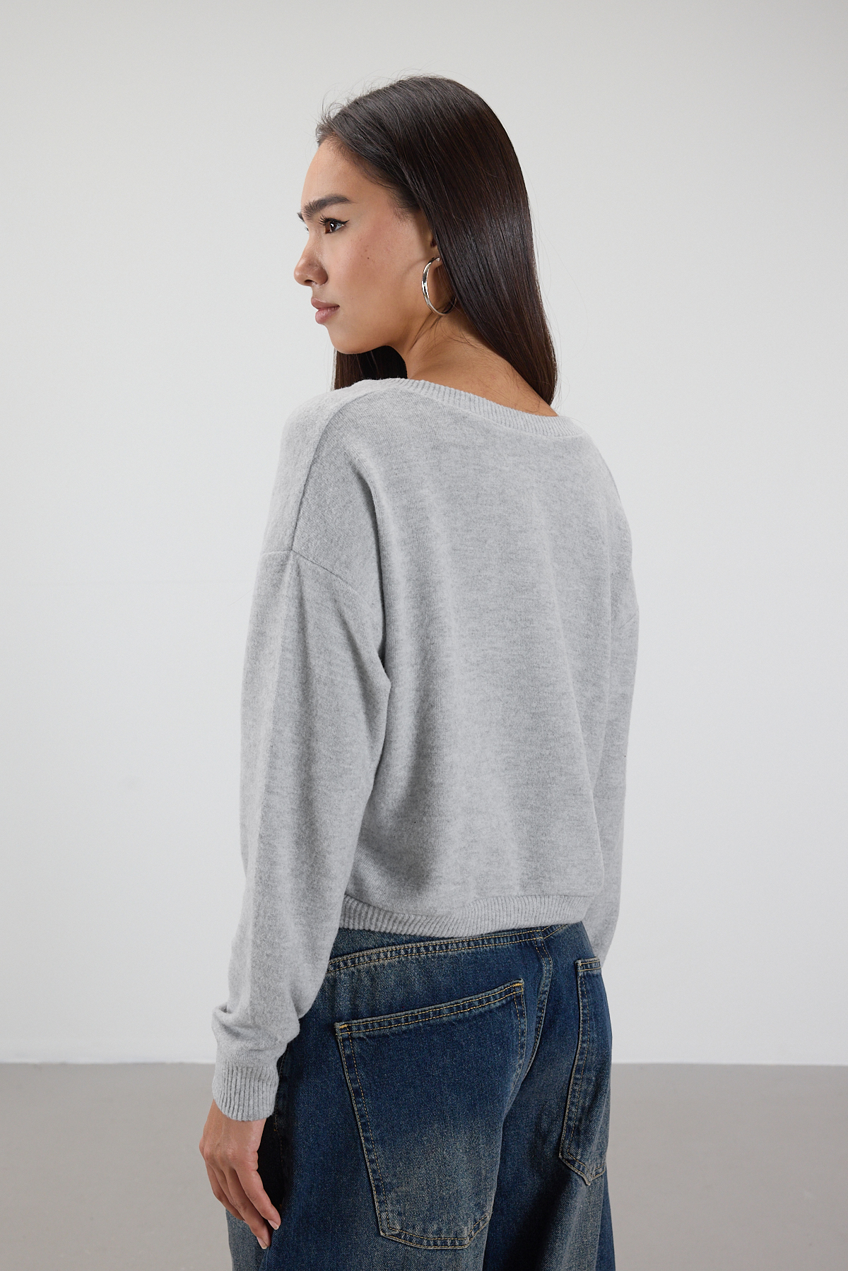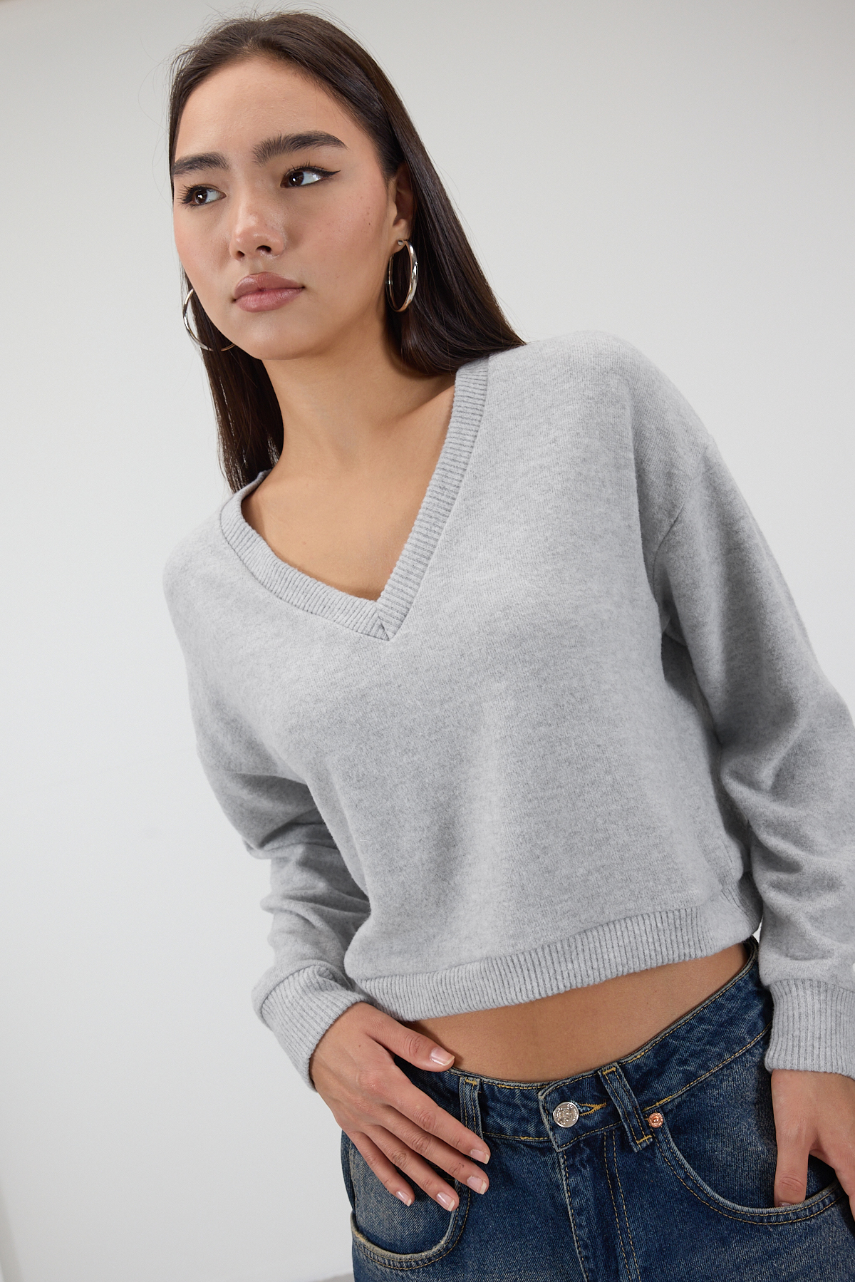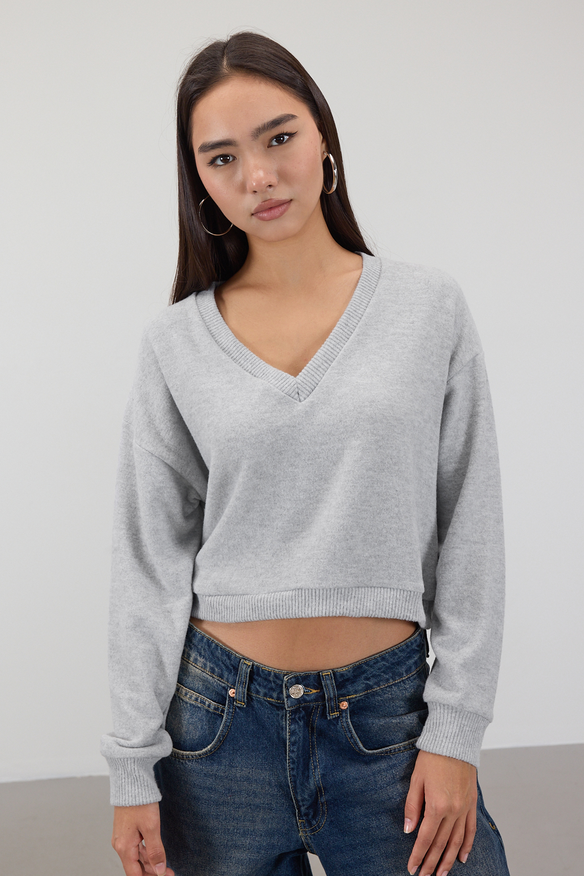 * V yaka, uzun kollu,* Düşük omuz, yumuşak tüylü,* Manşetleri ve etek ucu lastikli,* Rahat kalıp, düz renk bluz,* Ürün içeriği:%65 Polyester %30 Viskon %5 Elastan,* Manken üzerindeki ürün 36/S bedendir.* Numune Beden Ölçüleri: Boy:49 cm Göğüs:110 cm Kol Boyu:47 cm (1-3 cm arasında değişiklik gösterebilir)* Ürün çekimlerinde renkler, ışık farklılığından dolayı değişkenlik gösterebilir.