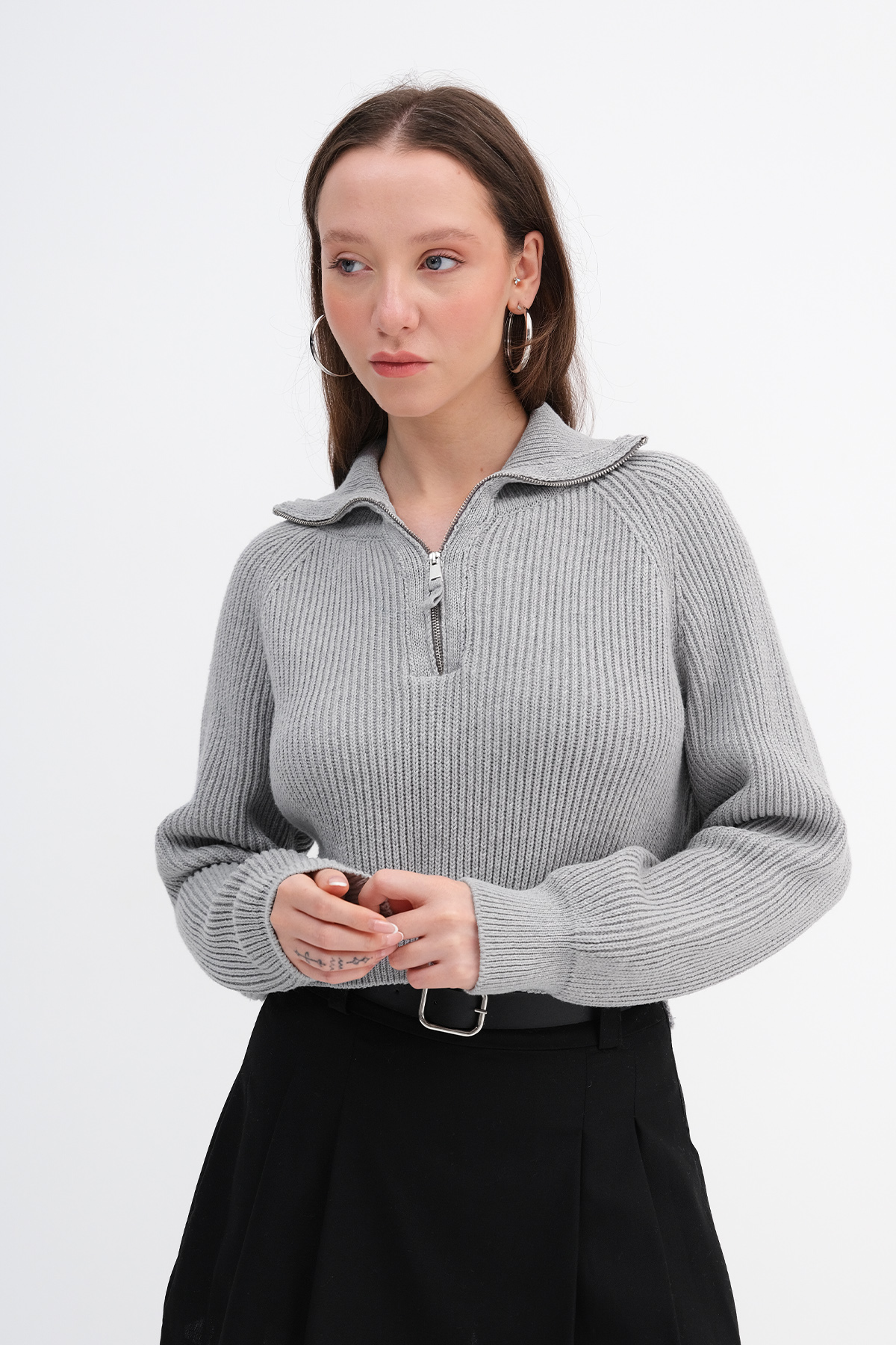 * Yakası fermuarlı, uzun kollu,
