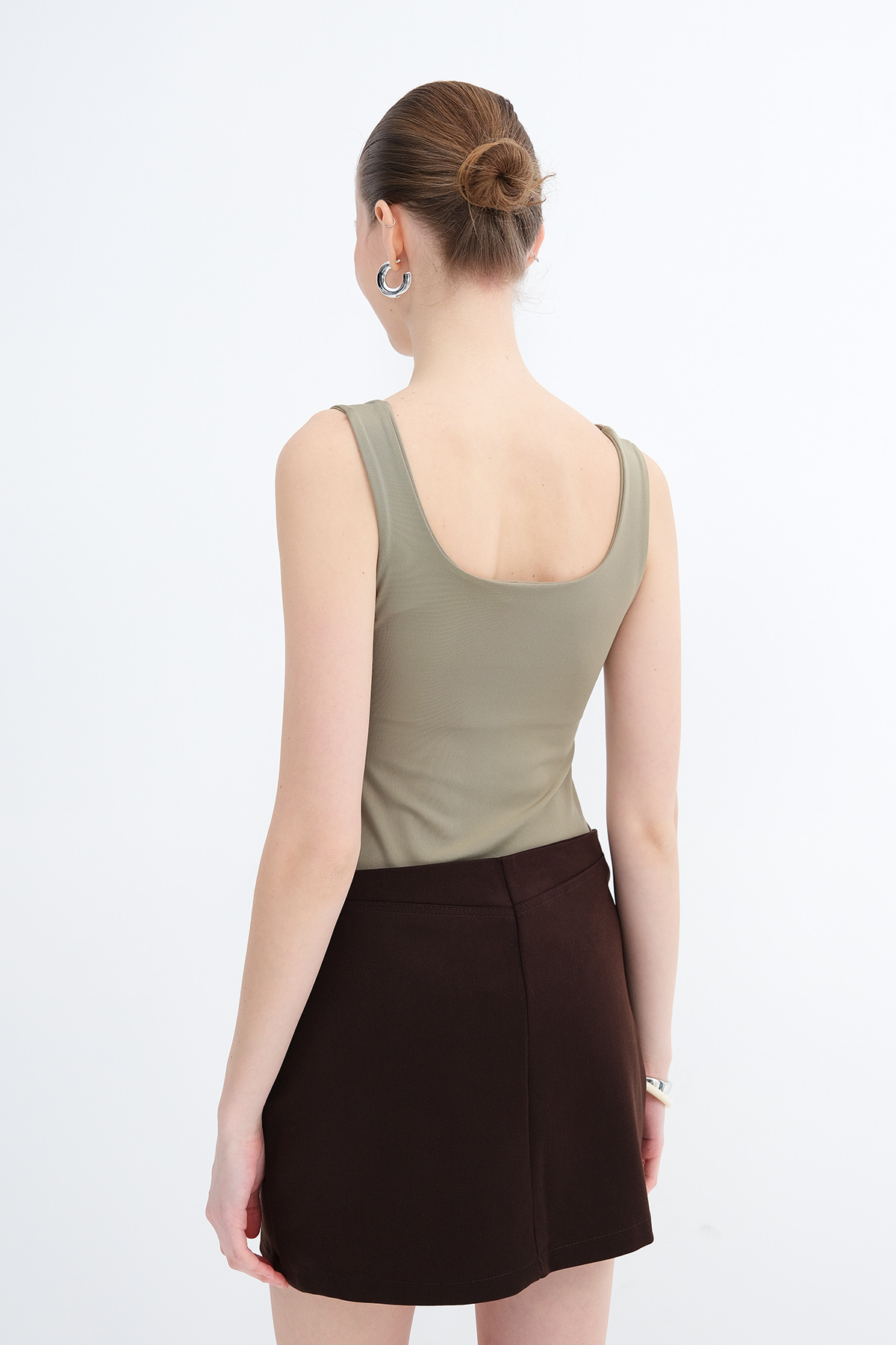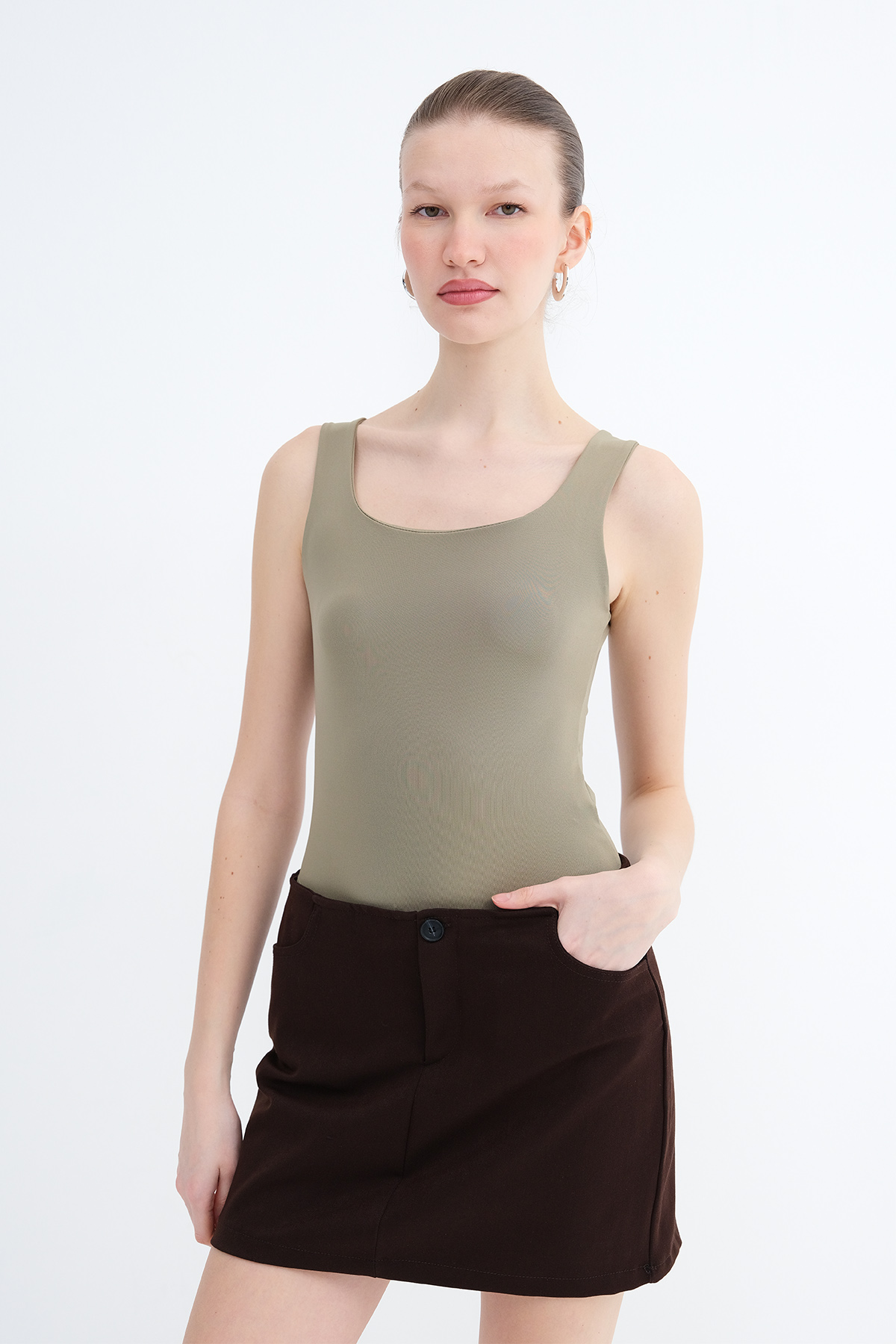 * U yaka, kalın askılı,