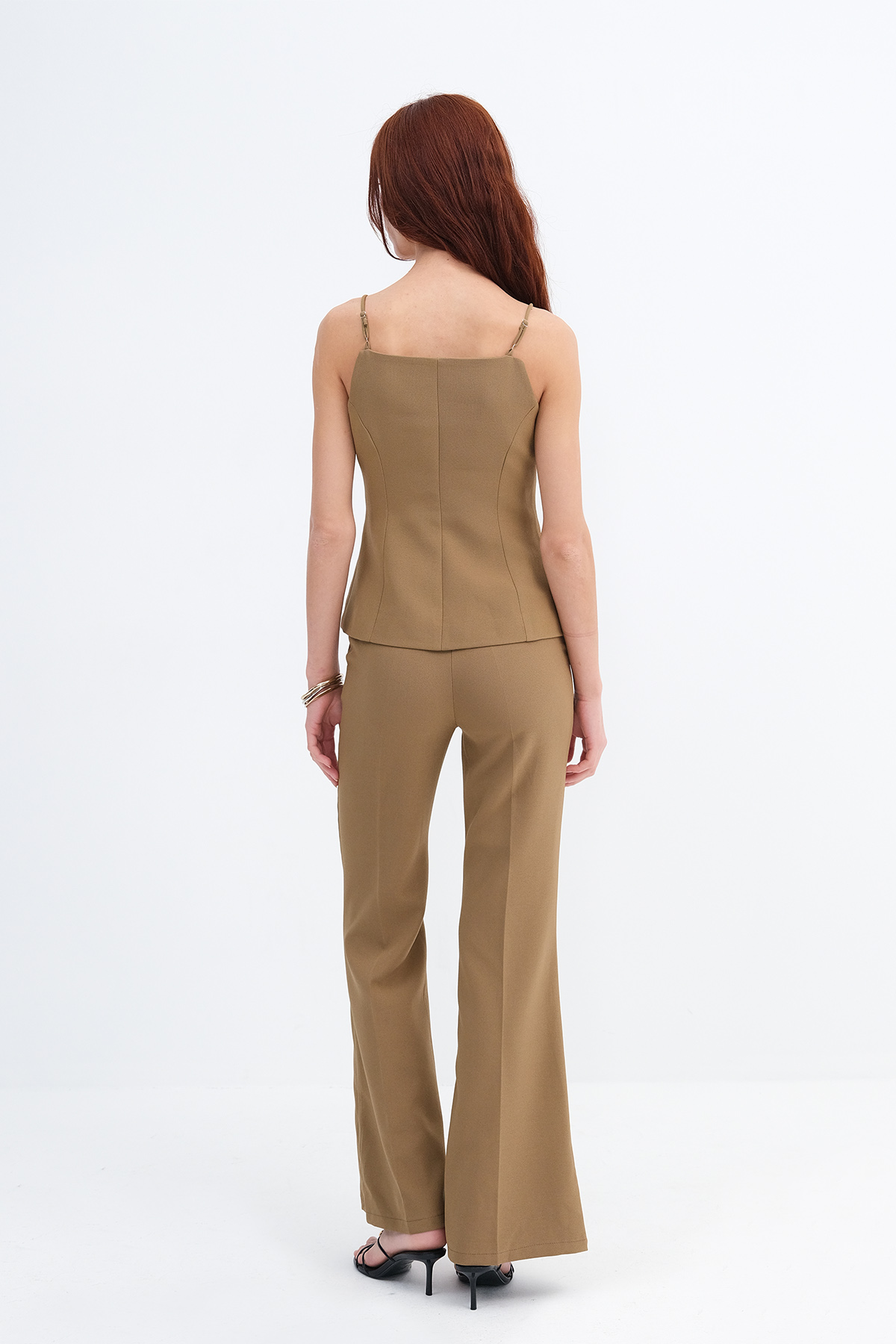 * Kare yaka, ayarlanabilir ince askılı, düğmeli,
